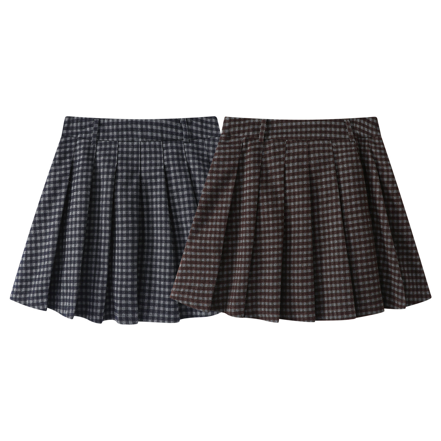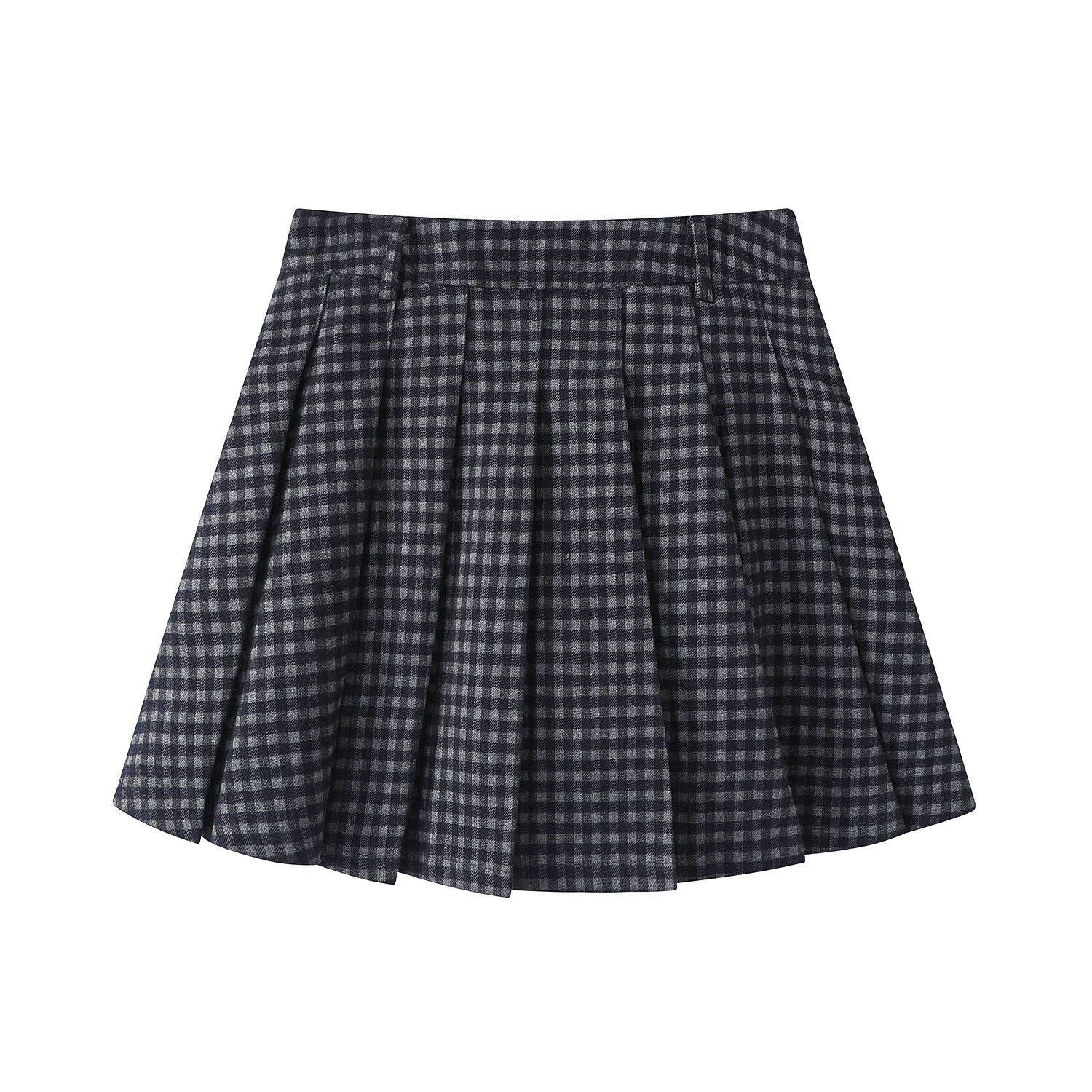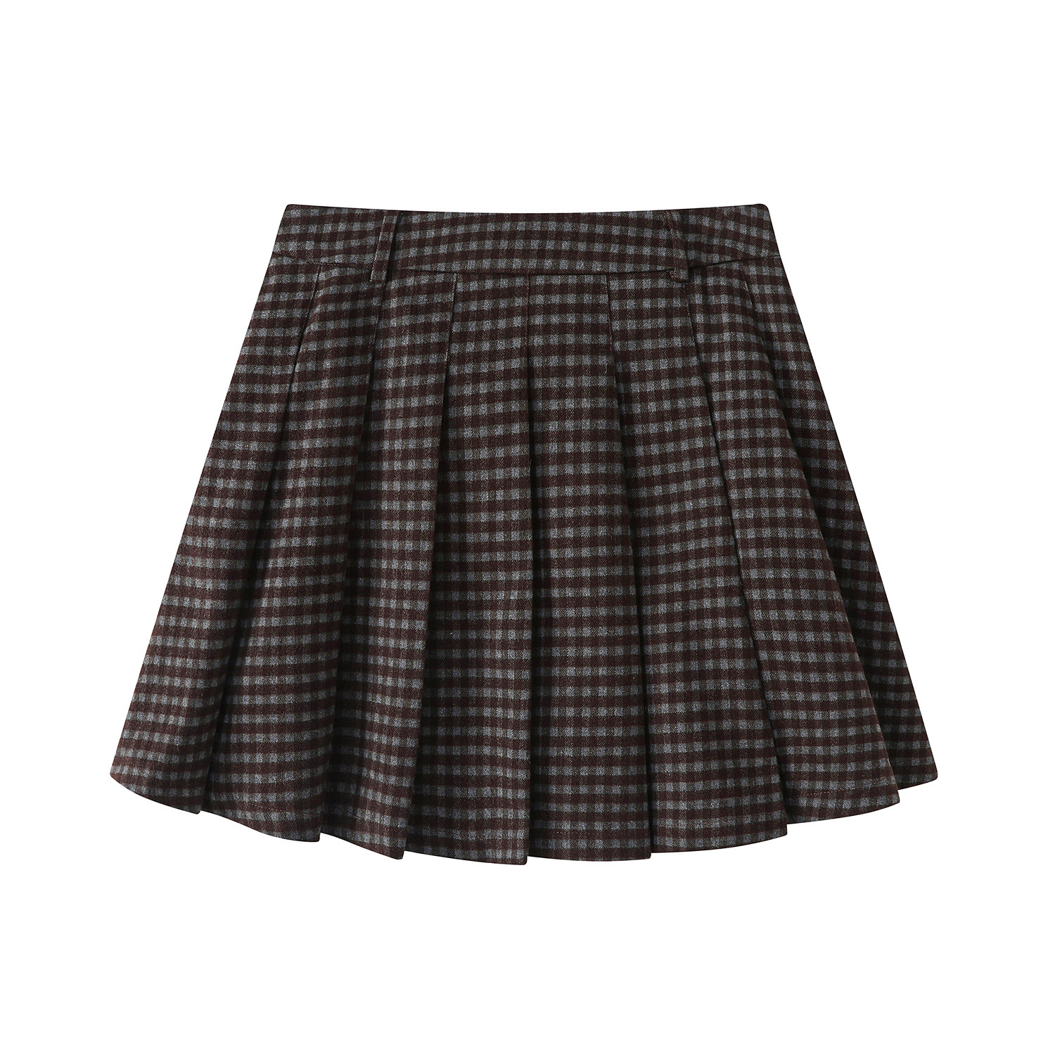 Cholisa yun damalı büzməli ətək, yeni payız/qış stili, yüksək belli, retro, preppy, qısa A-xəttli ətək.