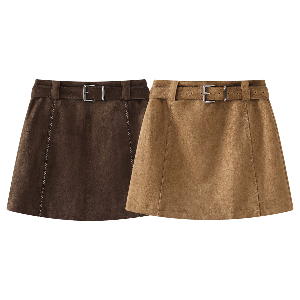Cholisa zamşa midi ətək, qadın geyimləri, 2026 yaz, payız və qış yeni stili, Merard qəhvəyi rəngli bodikon ətək, A-xəttli qısa ətək