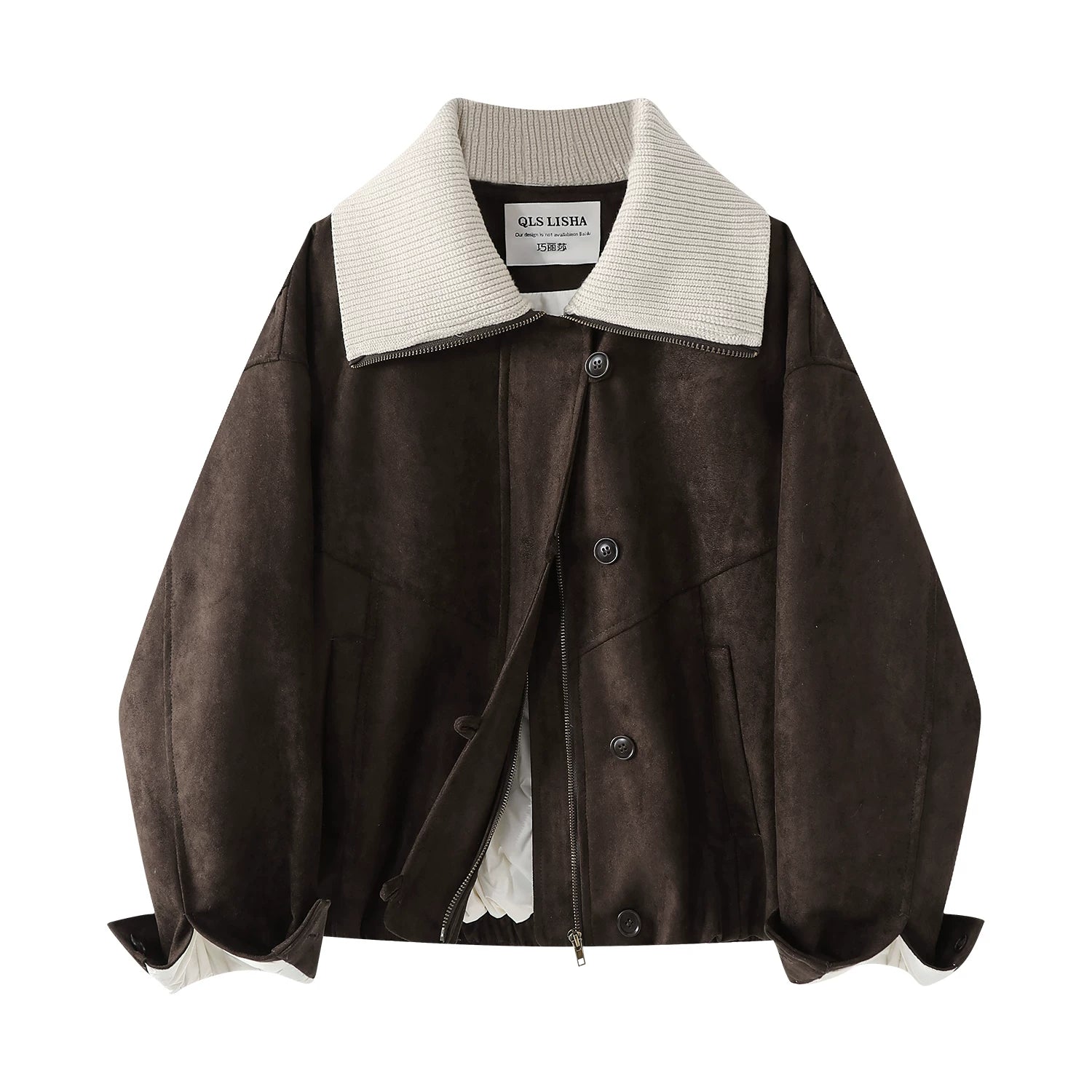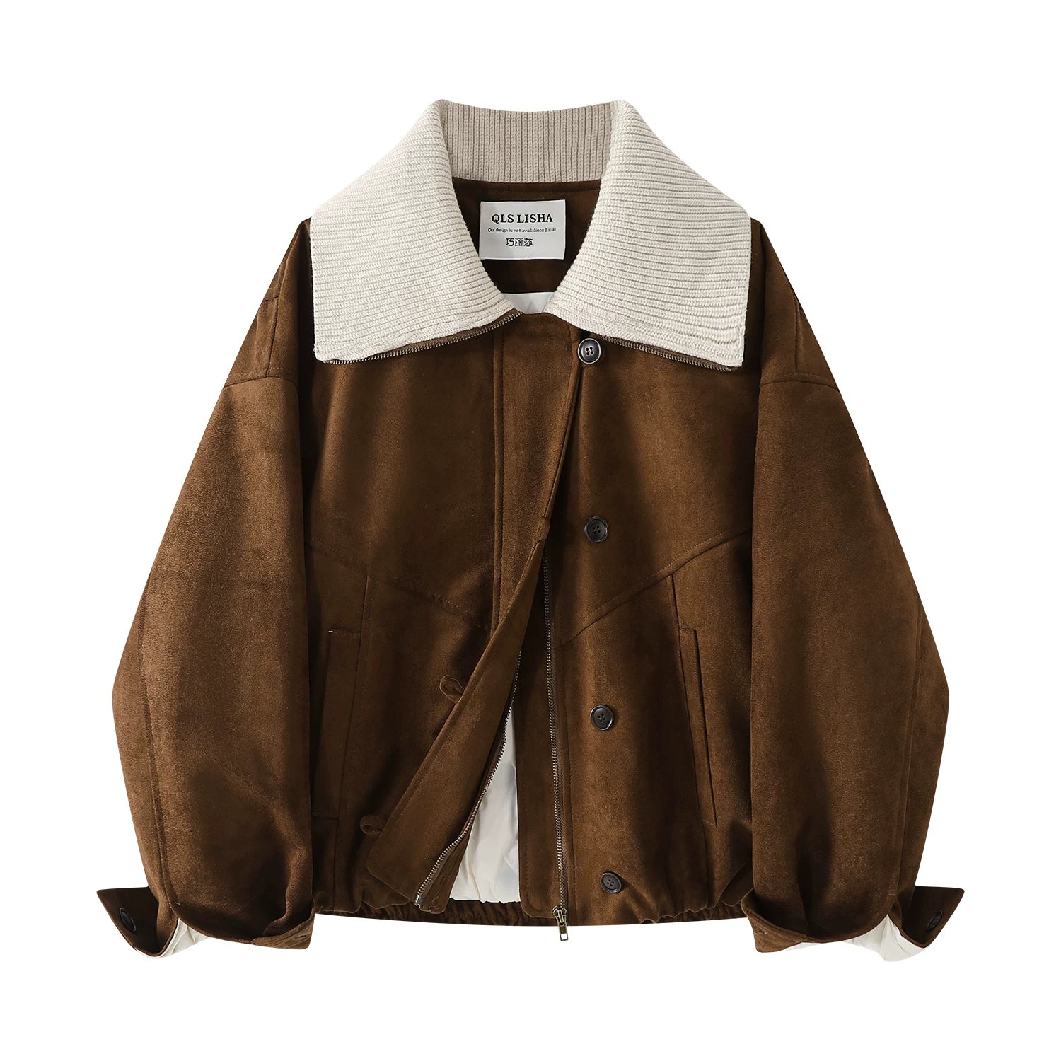 Cholisa'nın yüksək səviyyəli və gözəl qadın qış aşağı gödəkçəsi, 2025 yeni model, yaxa rəngli bloklu gödəkçə, motosiklet stili.
