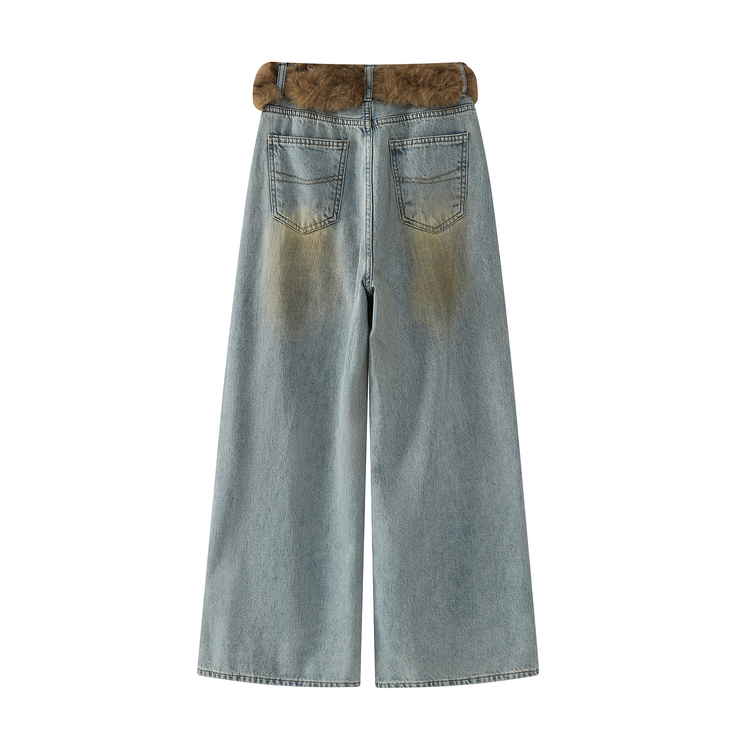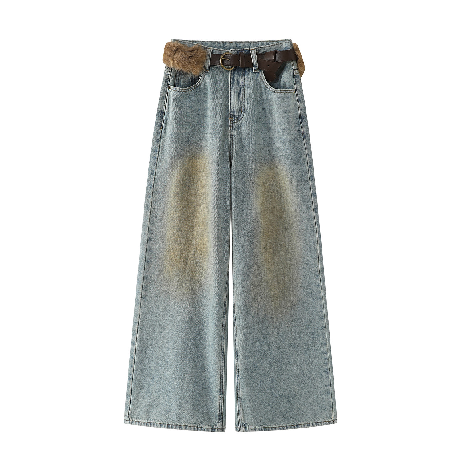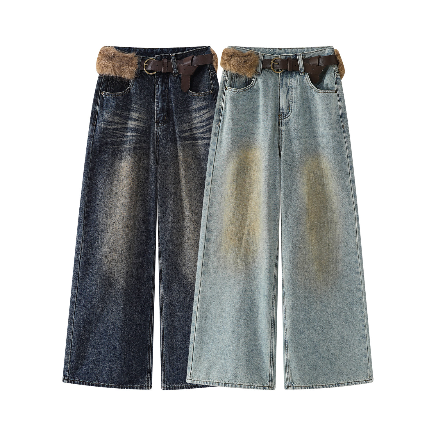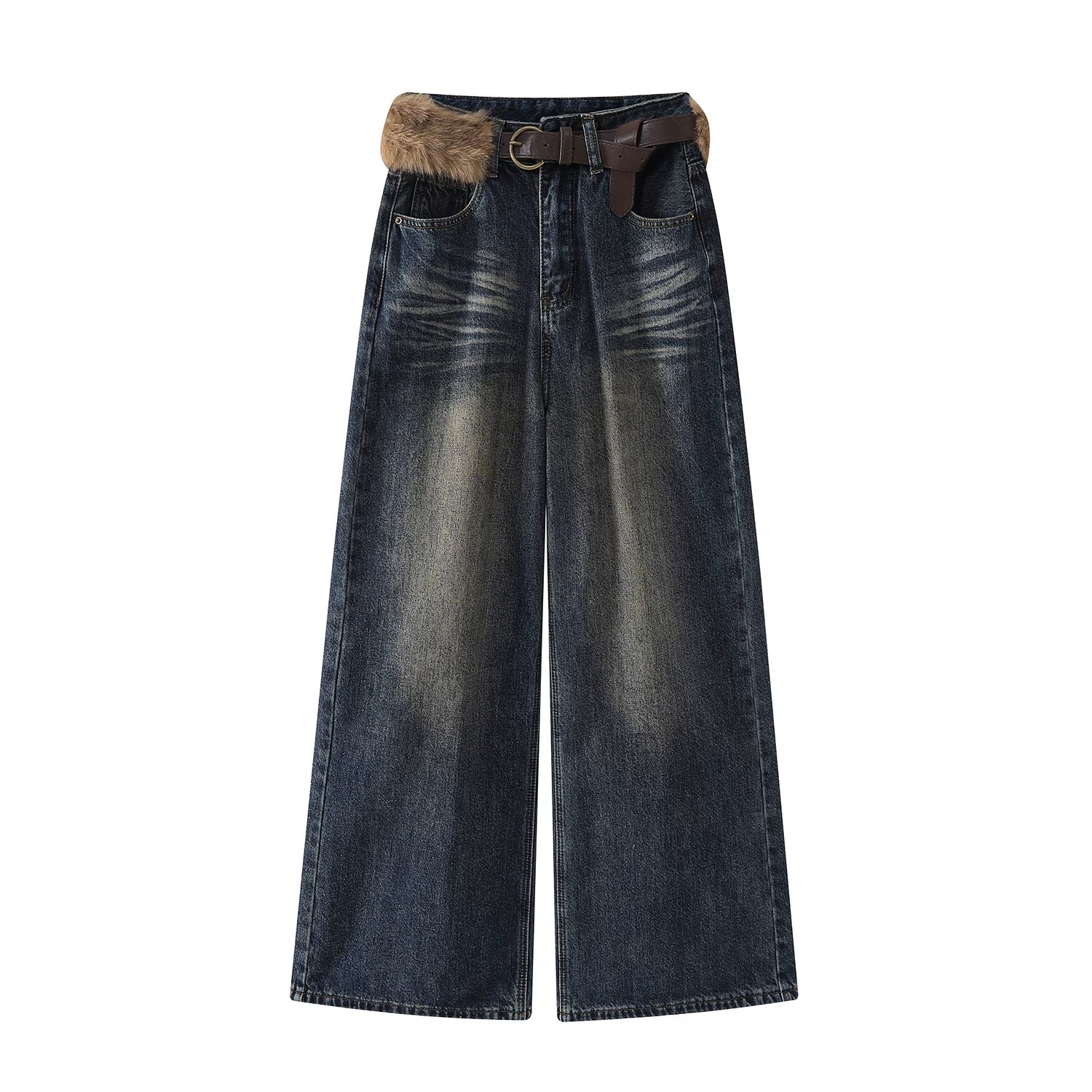 Chorissa Amerika üslubunda qadınlar üçün yüksək belli, qısaqol cins şalvar, payız və qış, unikal dizayn, retro, düz ayaq, boş forma, enli şalvar.