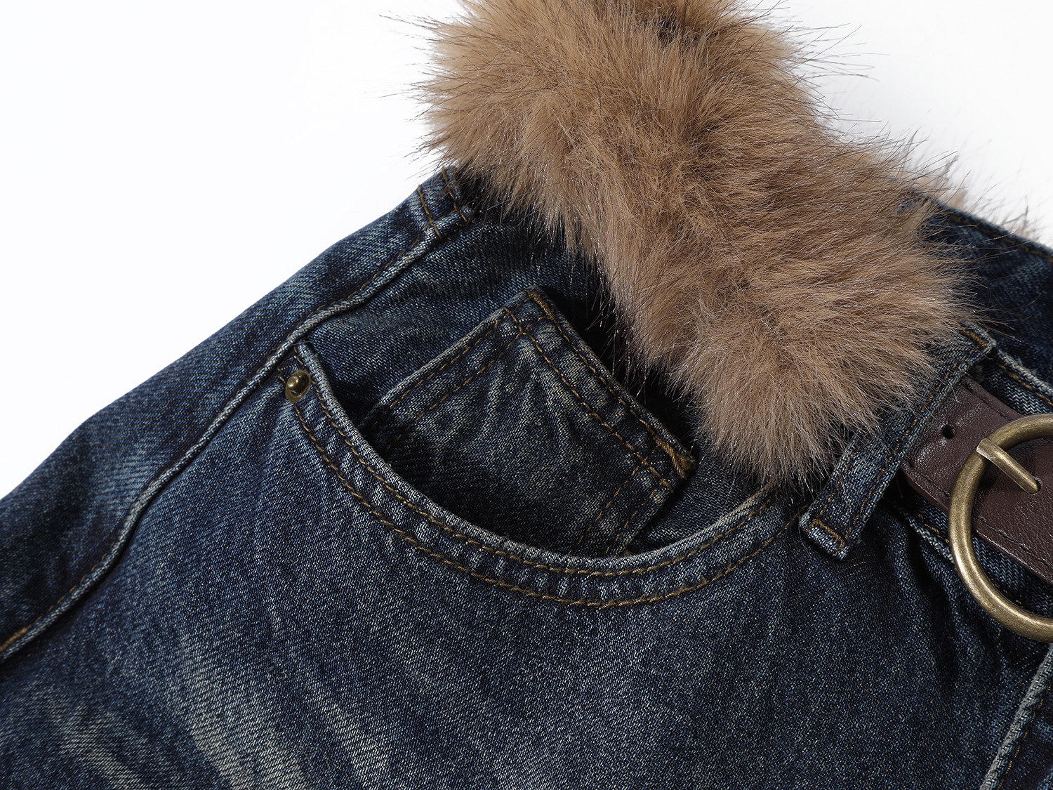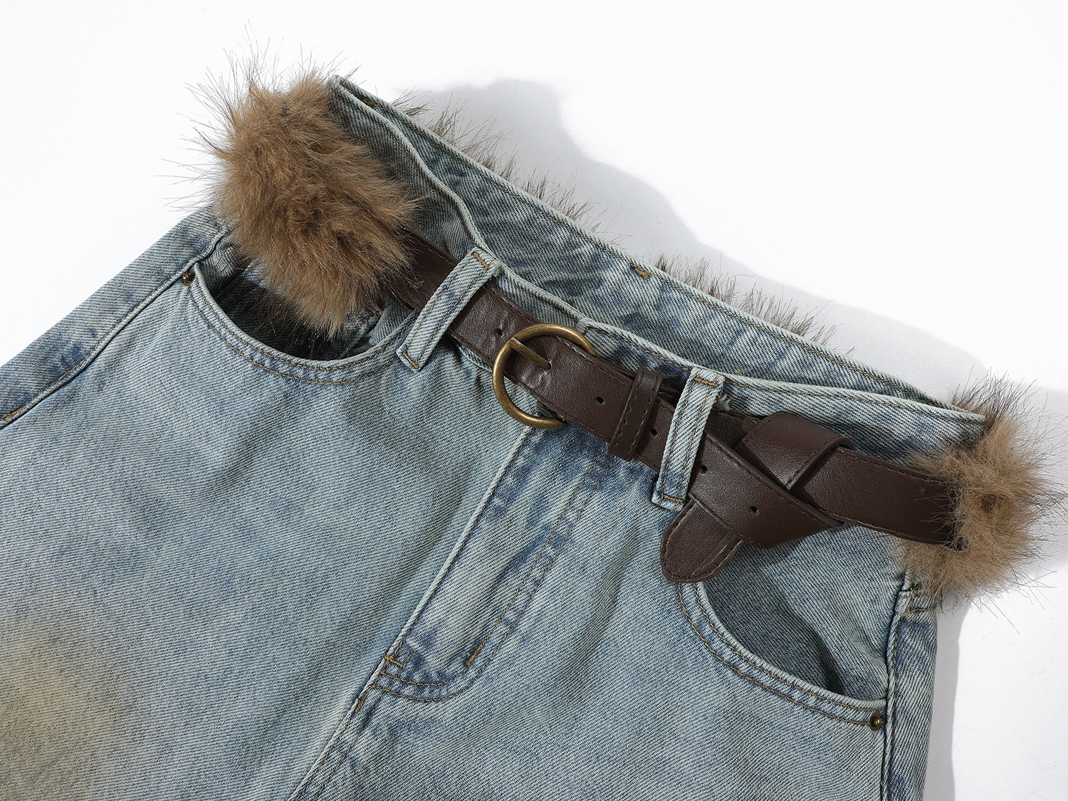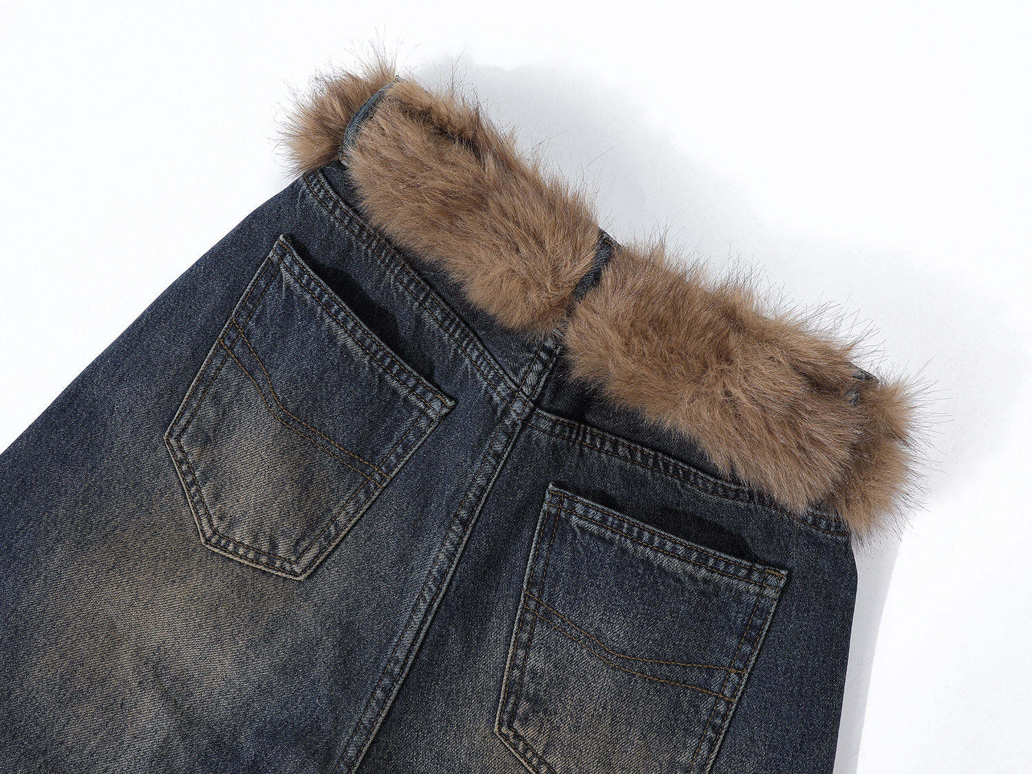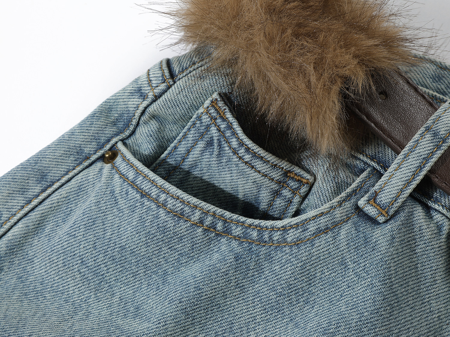 Chorissa Amerika üslubunda qadınlar üçün yüksək belli, qısaqol cins şalvar, payız və qış, unikal dizayn, retro, düz ayaq, boş forma, enli şalvar.