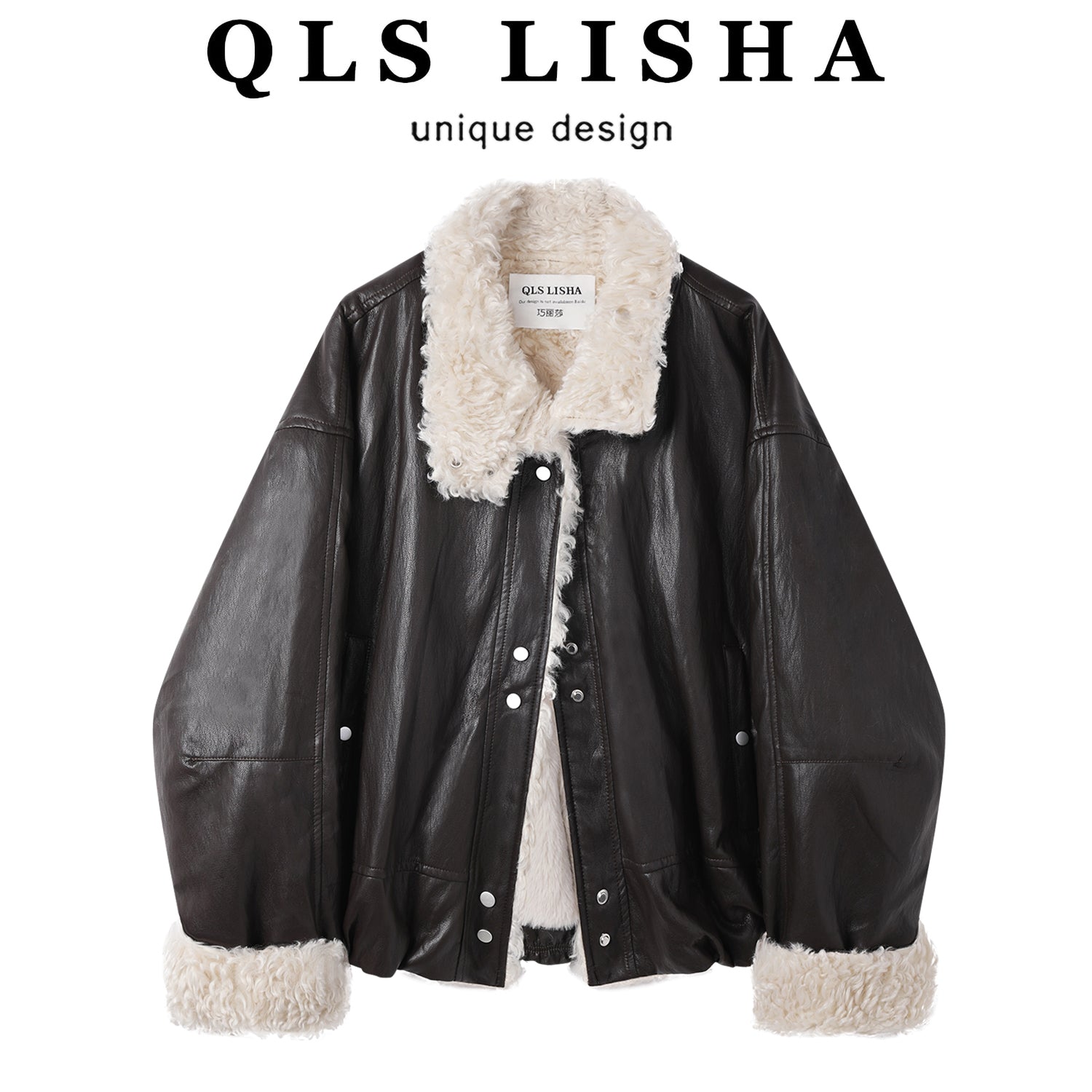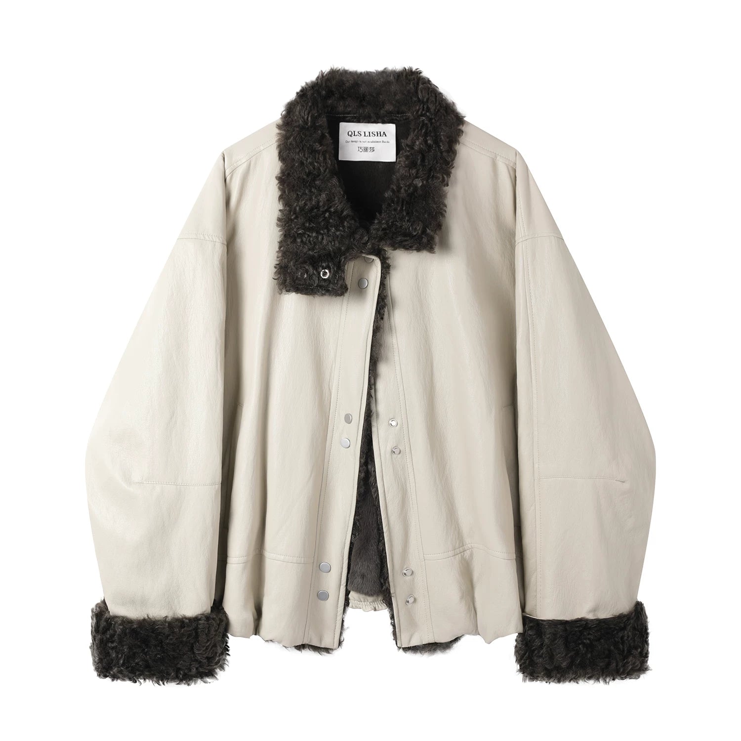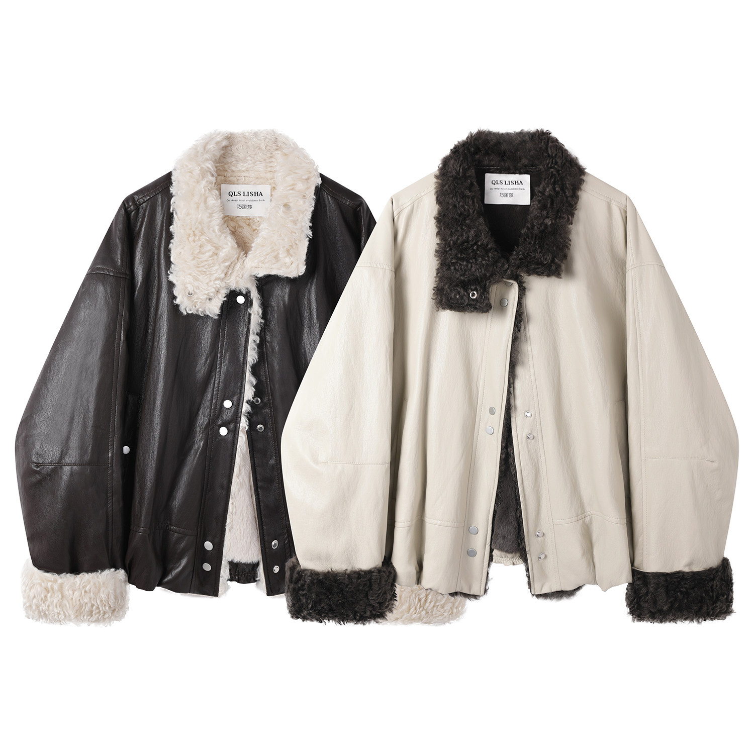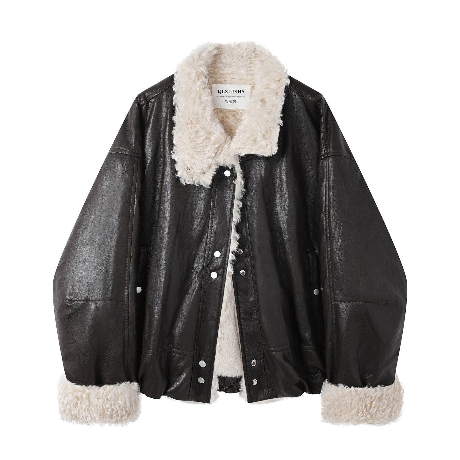 Chorissa Fransız Retro Dəri Qırxma Palto Qadın Payız və Qış Yun Astarlı Qalınlaşdırılmış 2025 Yeni Çoxfunksiyalı Gödəkçə