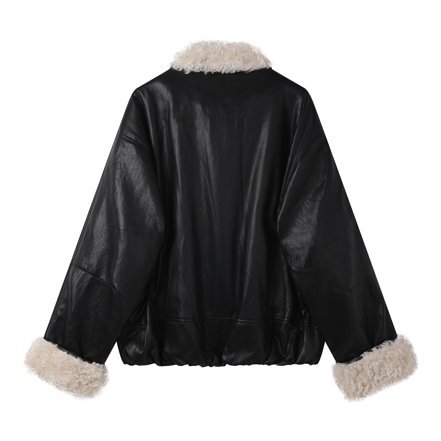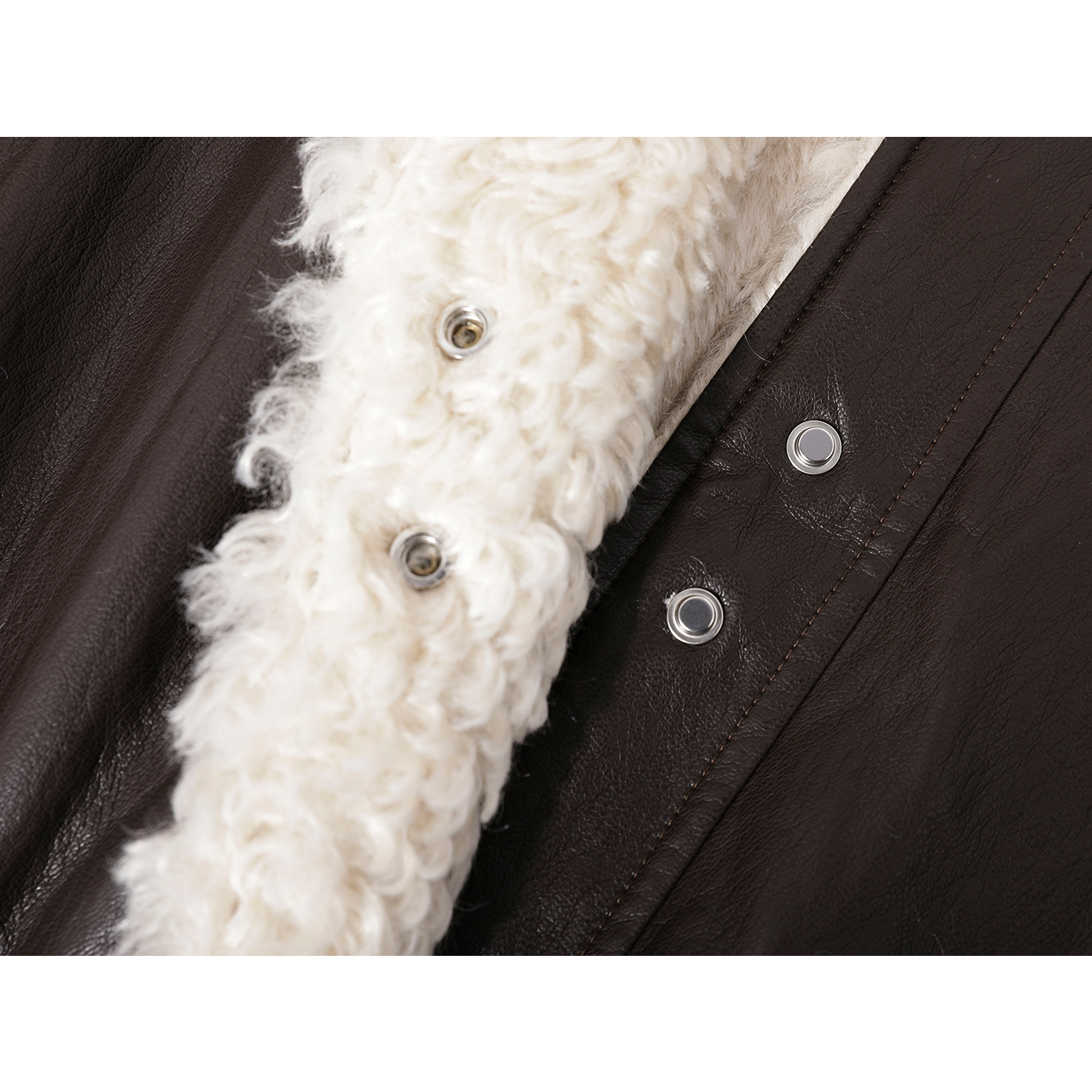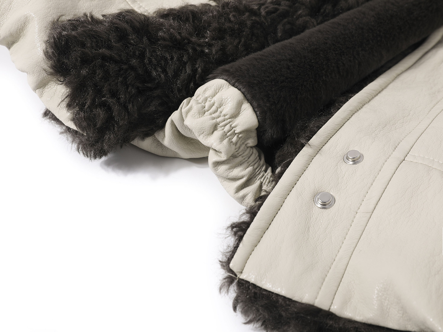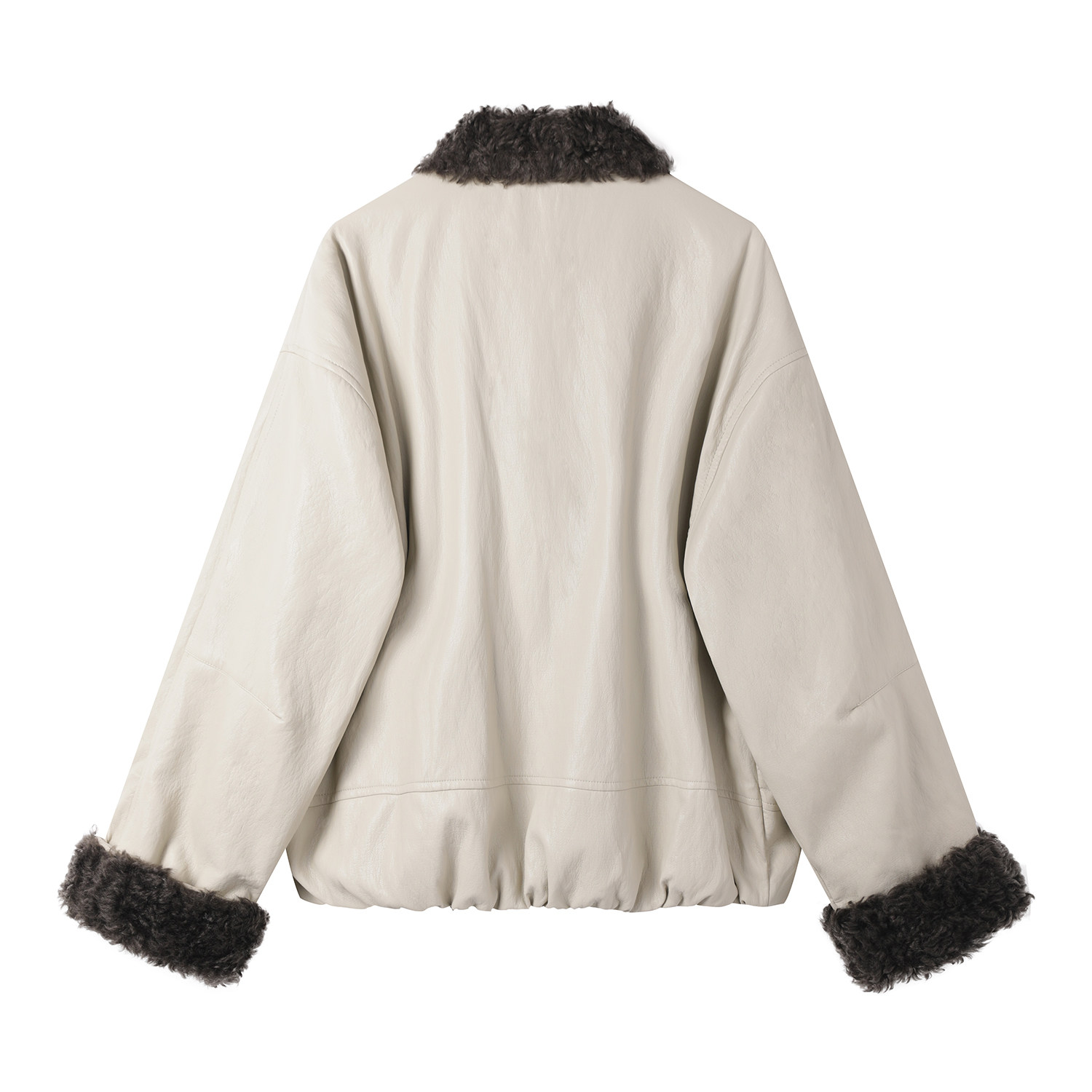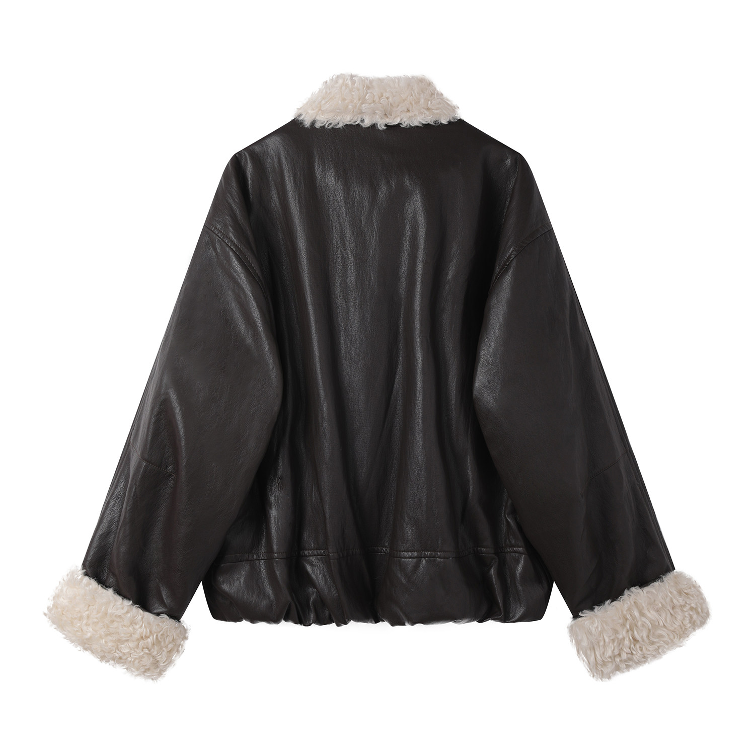 Chorissa Fransız Retro Dəri Qırxma Palto Qadın Payız və Qış Yun Astarlı Qalınlaşdırılmış 2025 Yeni Çoxfunksiyalı Gödəkçə