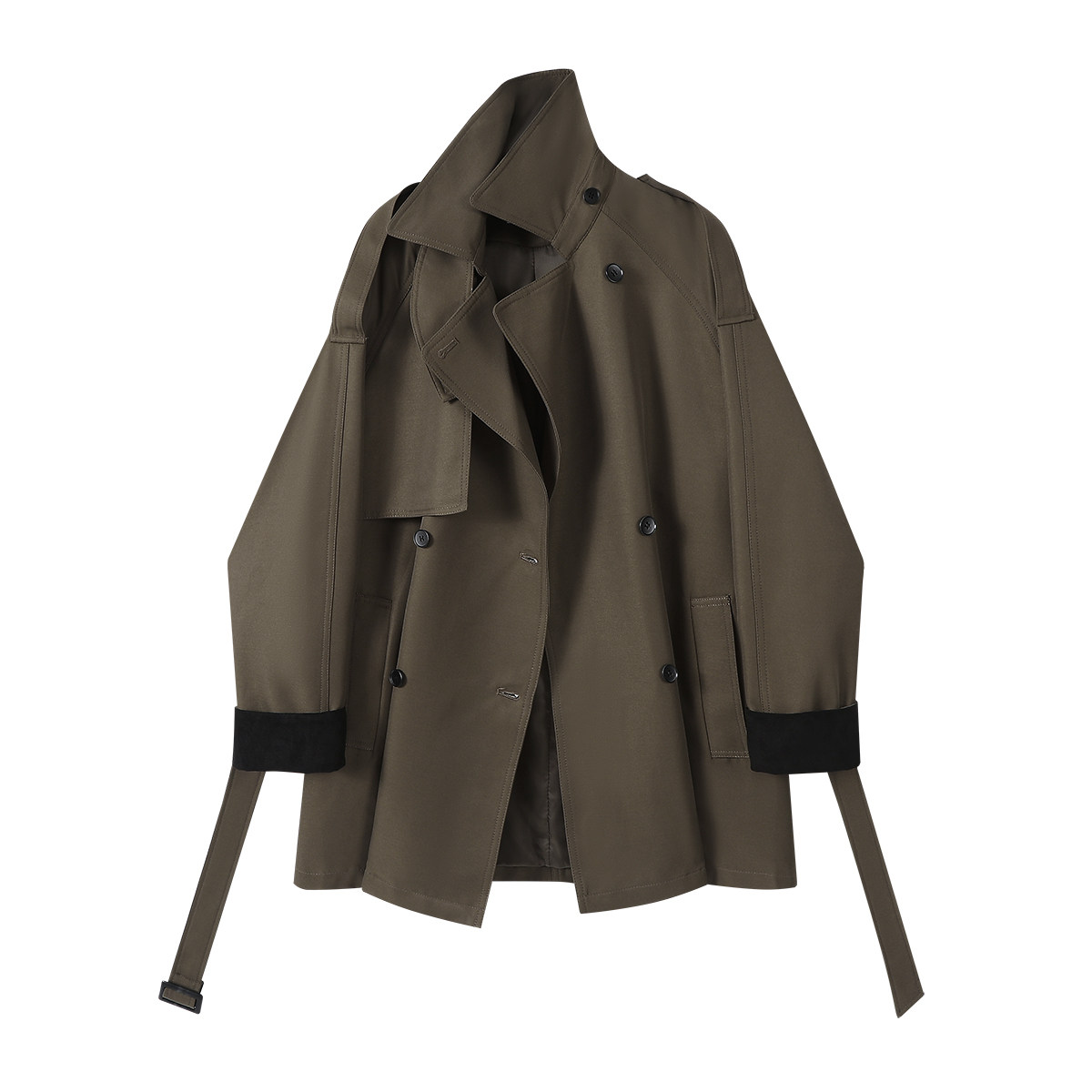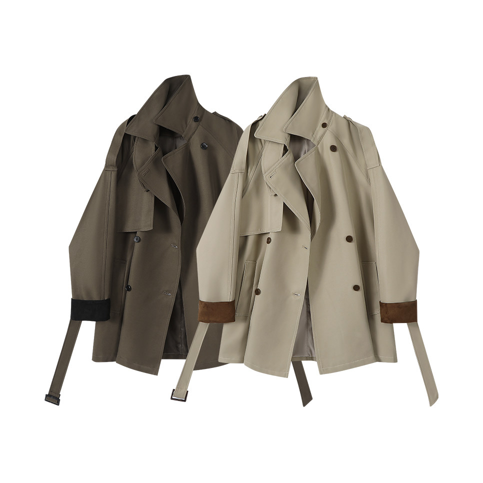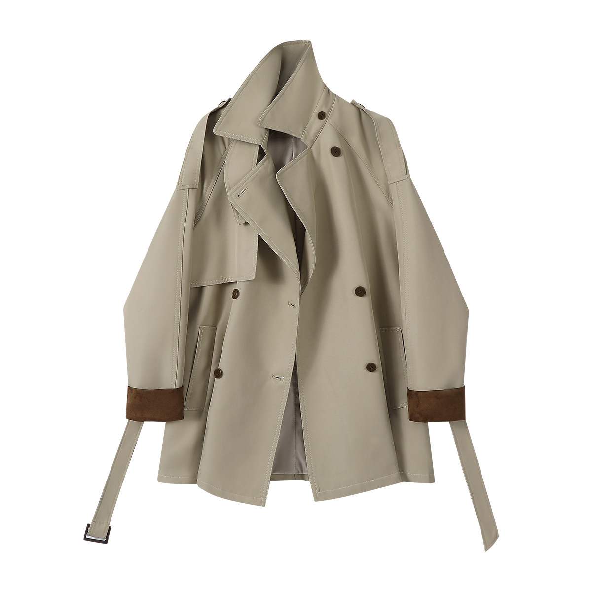 Chorissa-nın erkən payız Koreya üslubunda qadınlar üçün rahat və gündəlik qısa trençkot, yüksək səviyyəli və gözəl top.