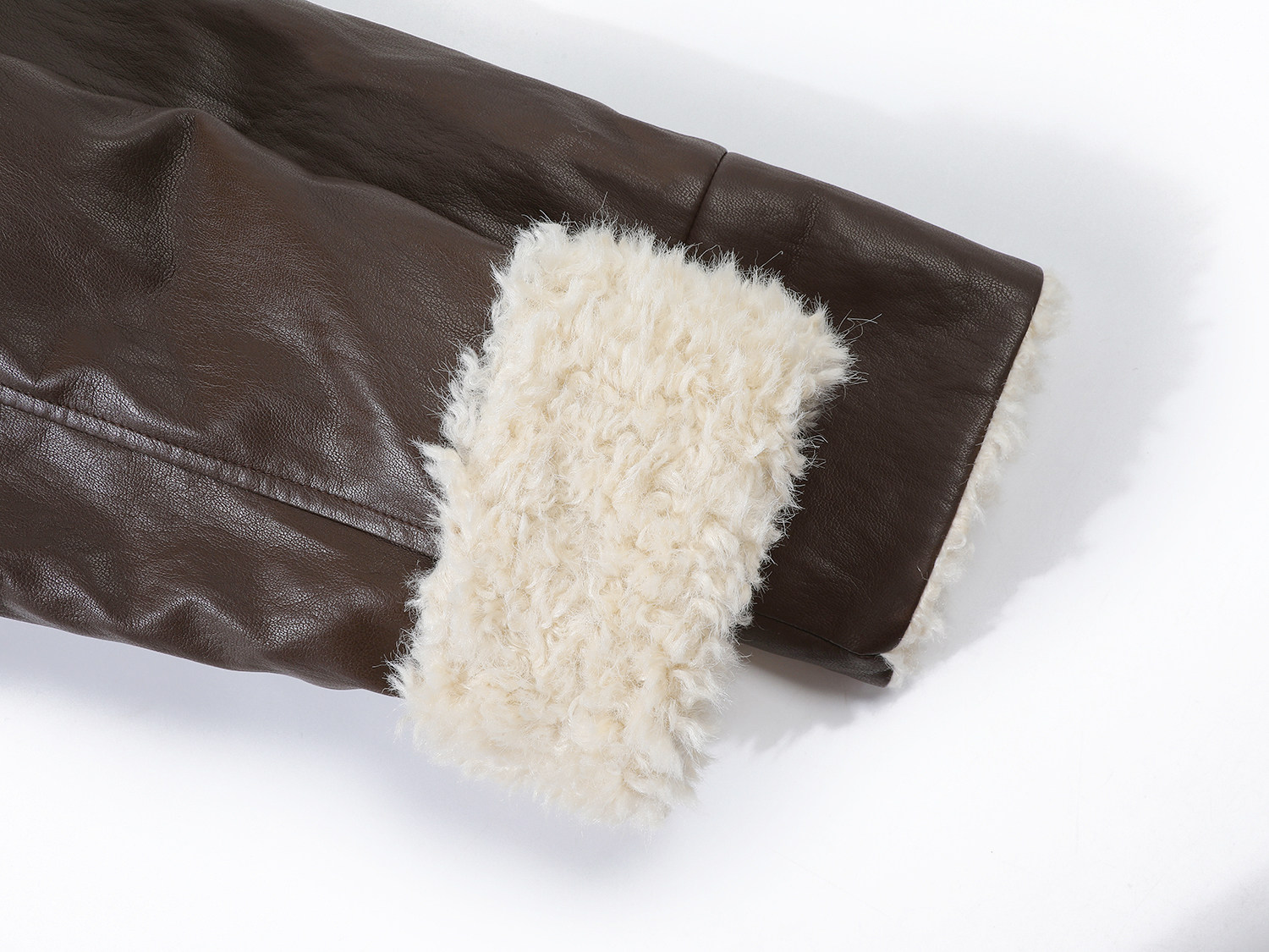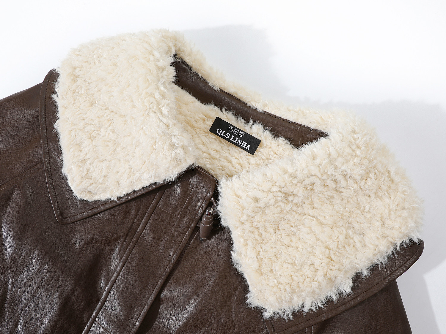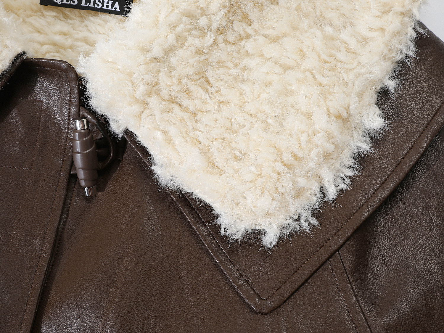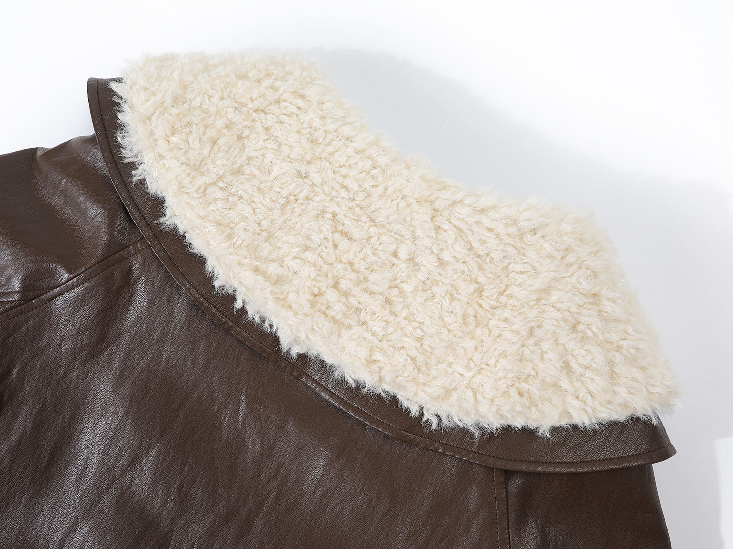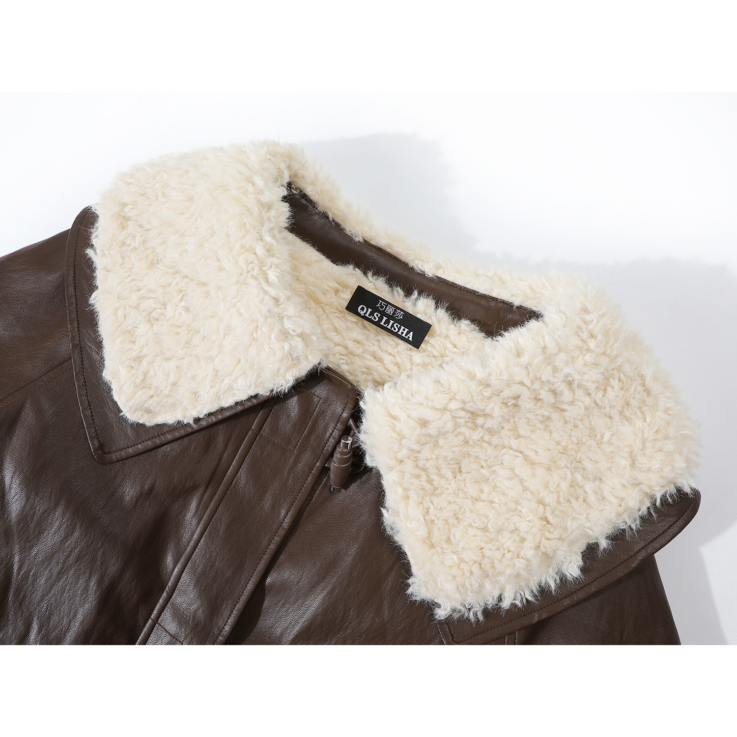 Chorissa Qəhvəyi Qadınlar üçün Yun Astarlı Dəri Gödəkçə, Payız/Qış, Yüksək Seçimli, Boş Oturmalı, Çoxfunksiyalı, İsti, Qalın Quzu Yunlu Top