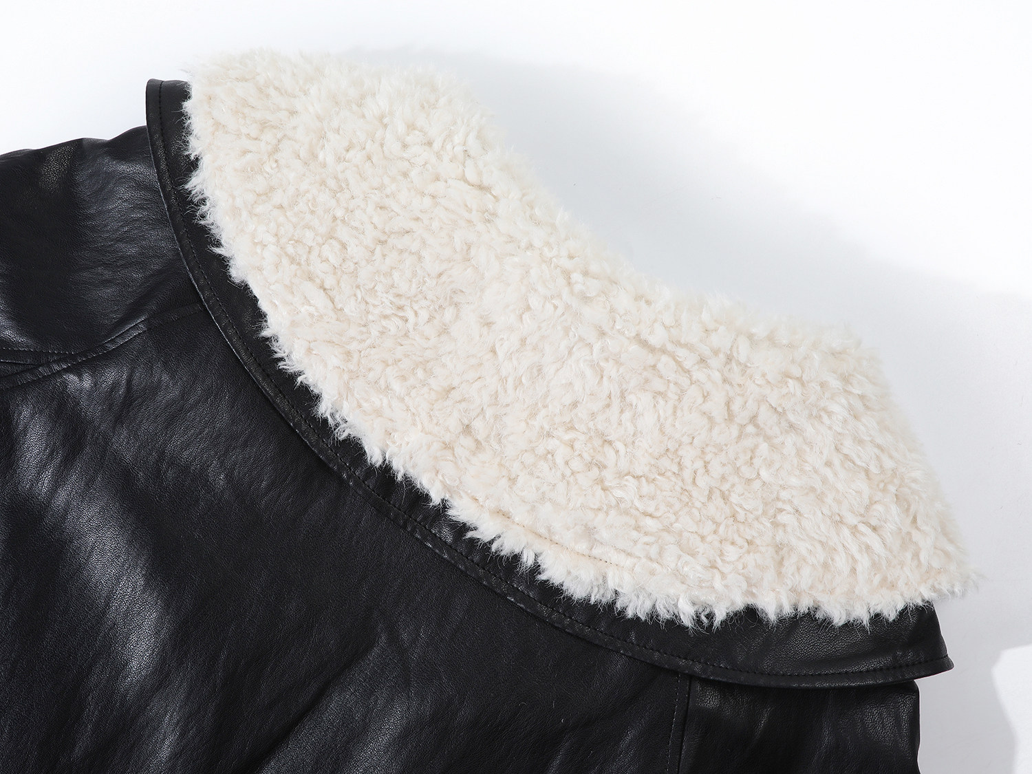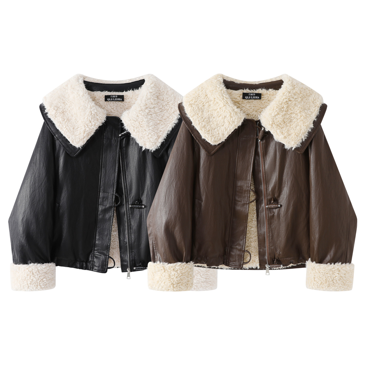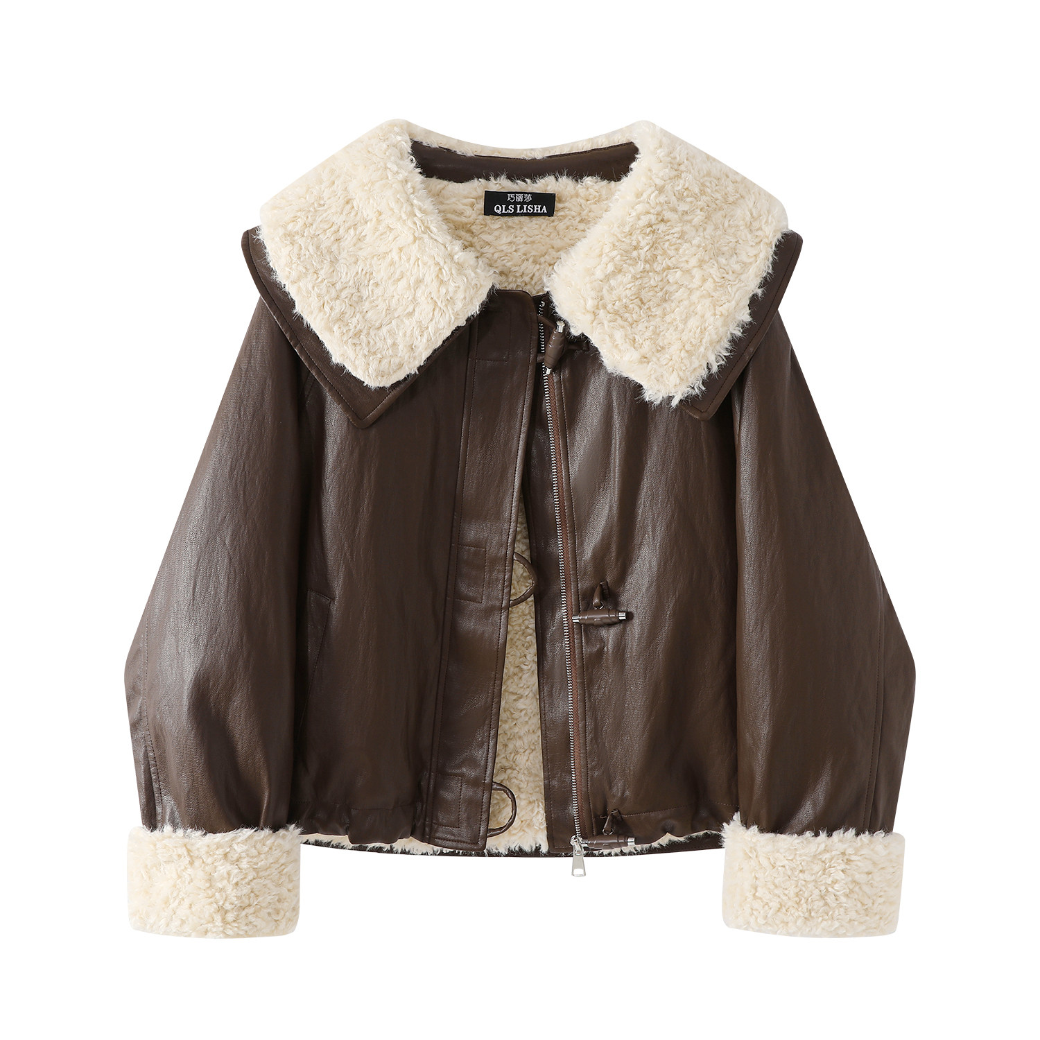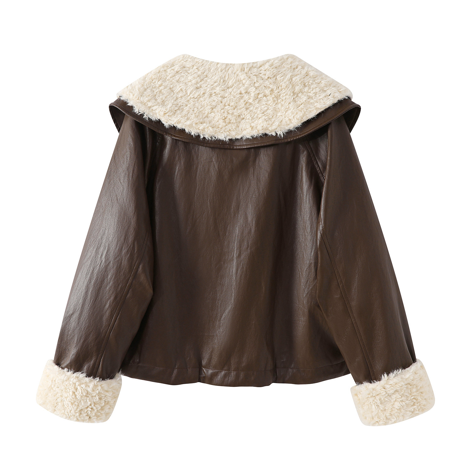 Chorissa Qəhvəyi Qadınlar üçün Yun Astarlı Dəri Gödəkçə, Payız/Qış, Yüksək Seçimli, Boş Oturmalı, Çoxfunksiyalı, İsti, Qalın Quzu Yunlu Top