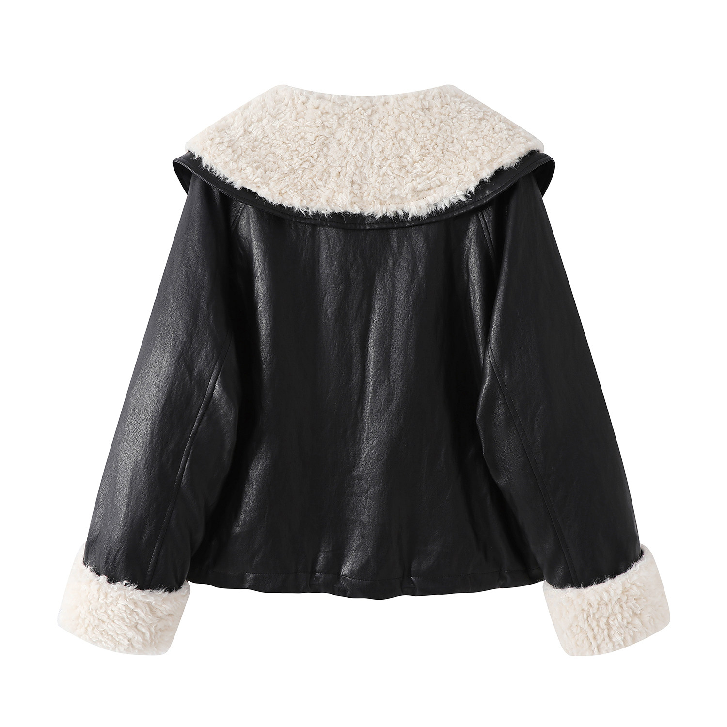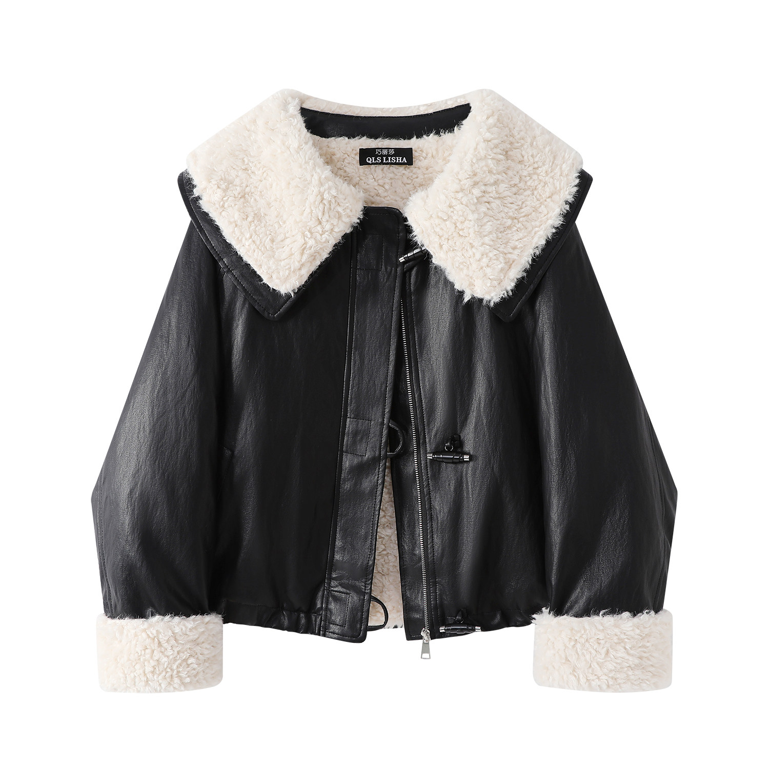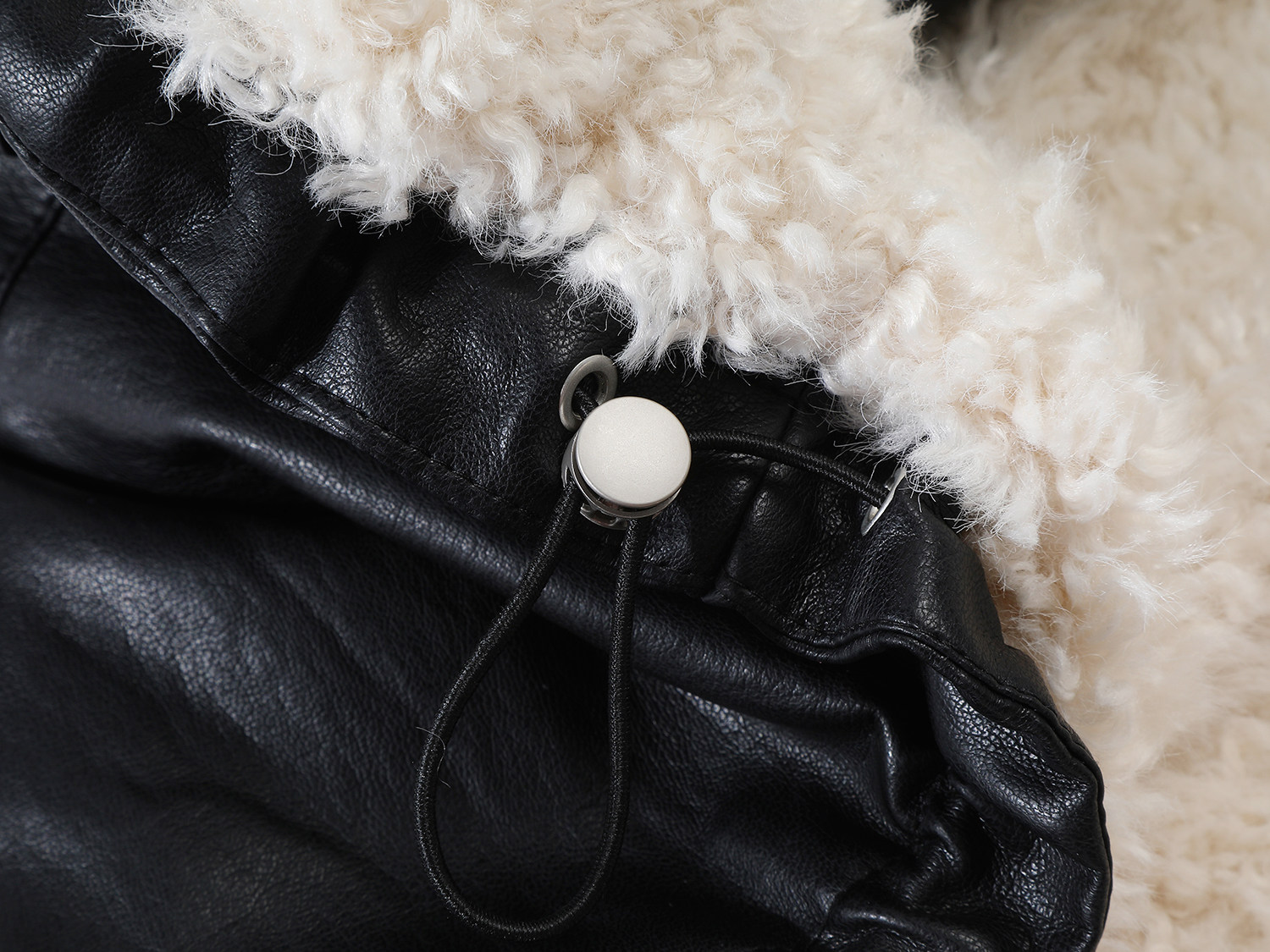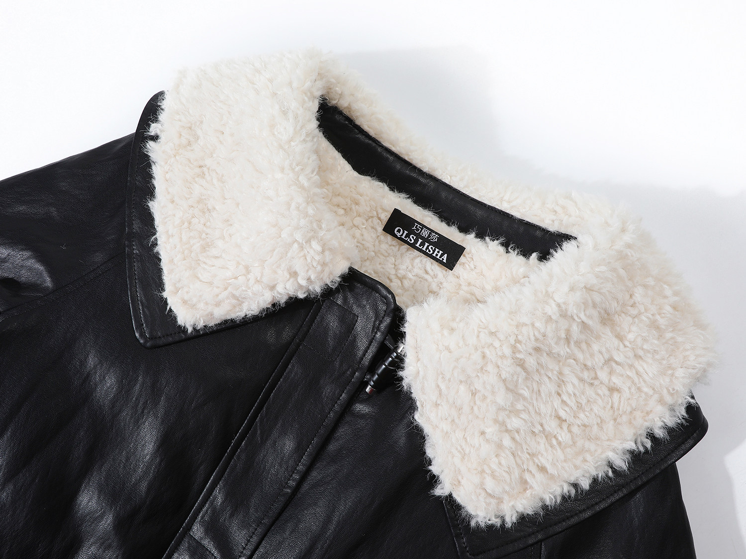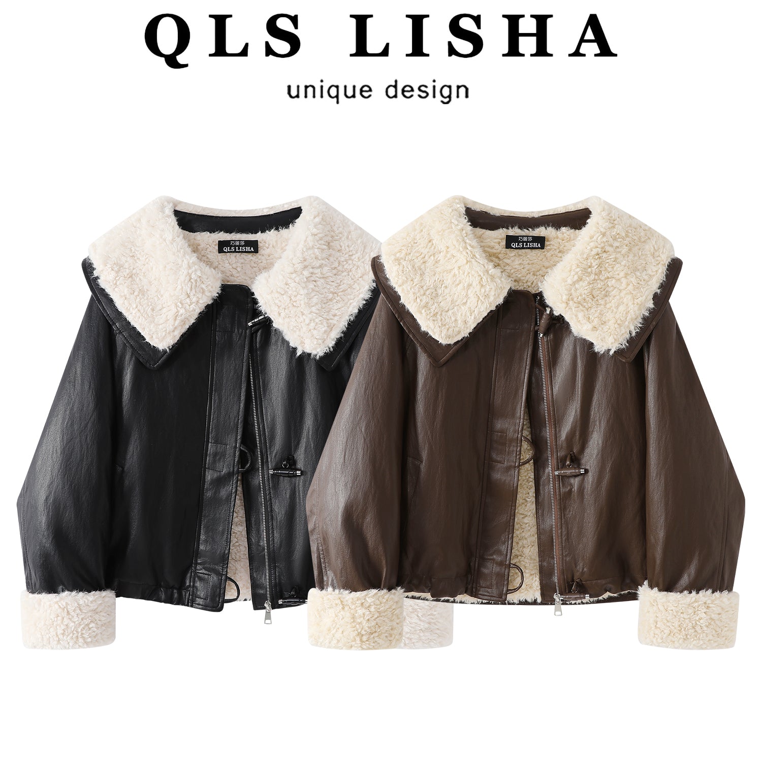 Chorissa Qəhvəyi Qadınlar üçün Yun Astarlı Dəri Gödəkçə, Payız/Qış, Yüksək Seçimli, Boş Oturmalı, Çoxfunksiyalı, İsti, Qalın Quzu Yunlu Top