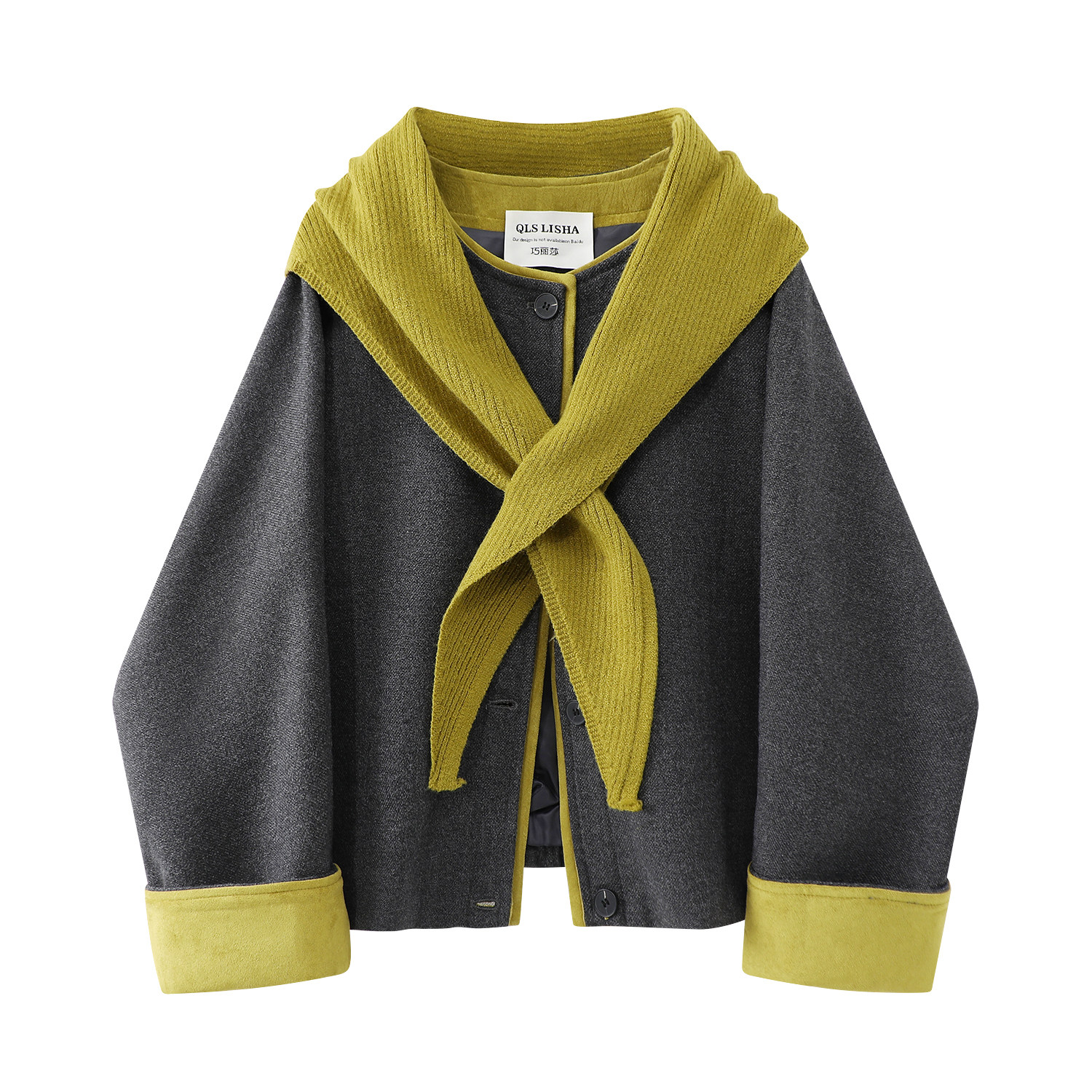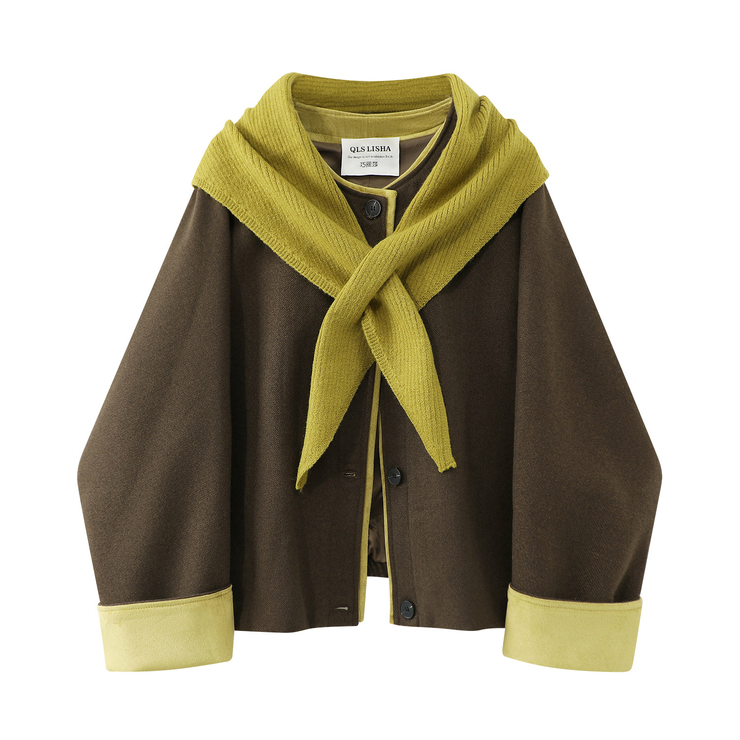 Chorissa Qadın Yun Paltosu, Yaz/Payız/Qış 2026 Yeni Stil, Çoxfunksiyalı Dizayn, Rəng Bloku Retro Qısa Yun Palto