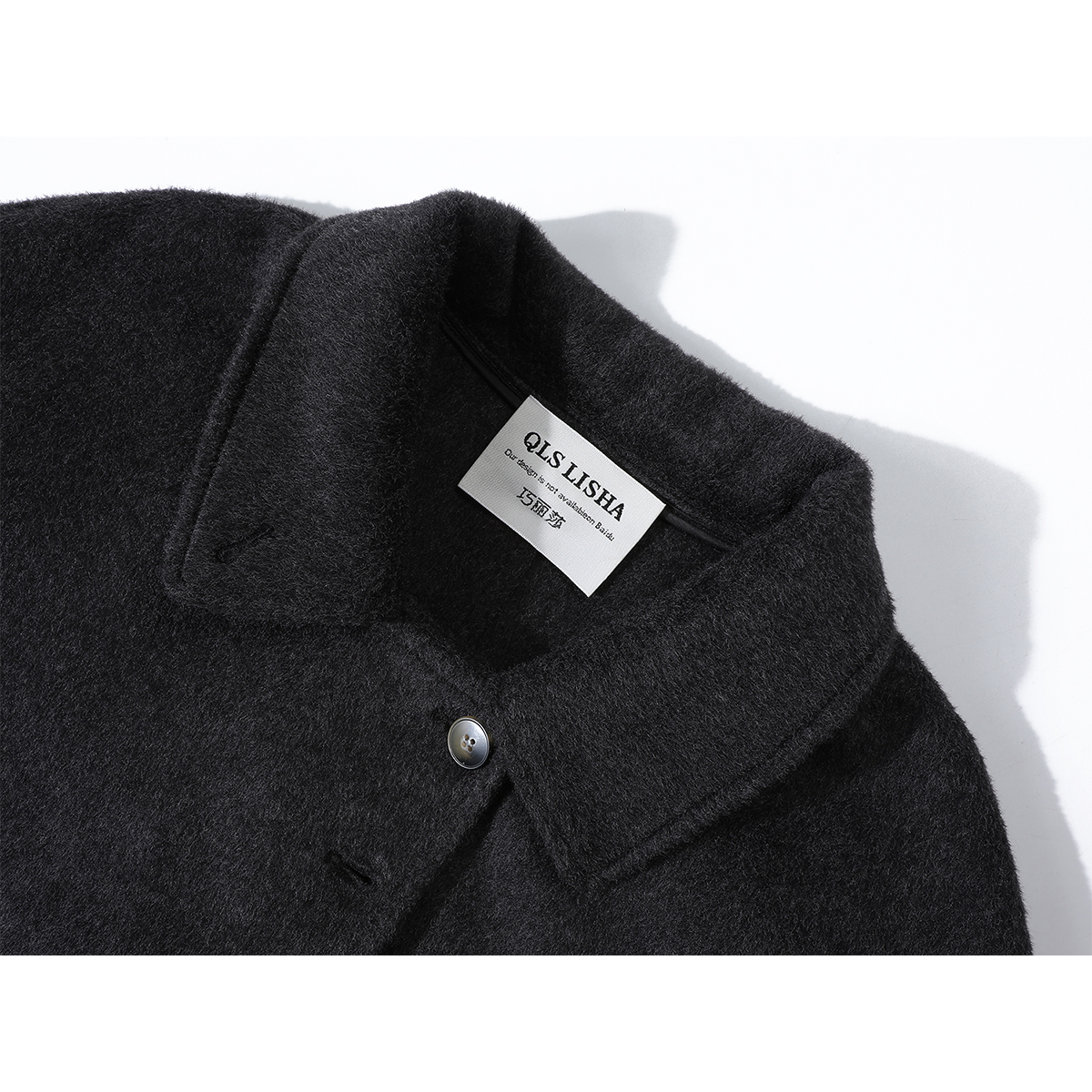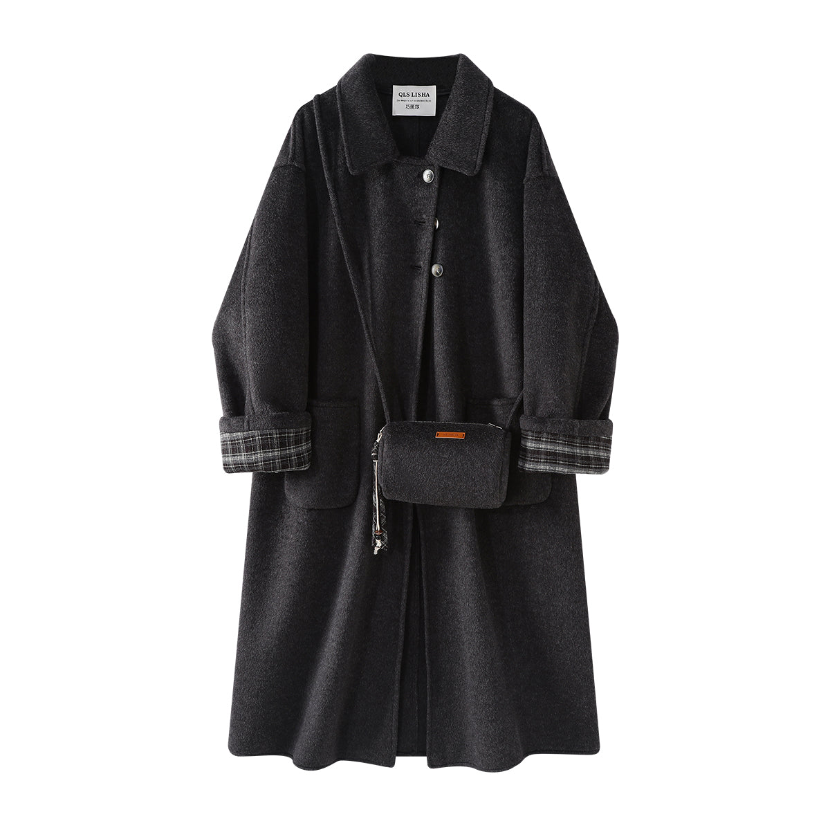 Chorissa Tünd Boz Yun Palto, Payız/Qış İkiüzlü Yun Palto, Qadınlar üçün Orta Uzunluqlu, Hepburn Stilində, Yüksək Səviyyəli Zəriflik Trench Palto