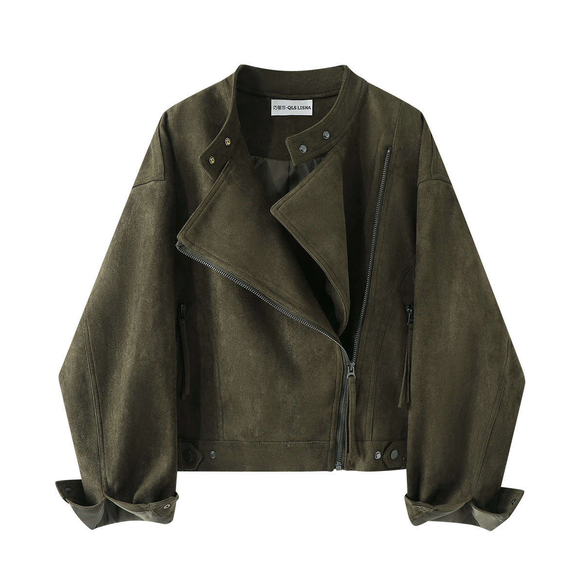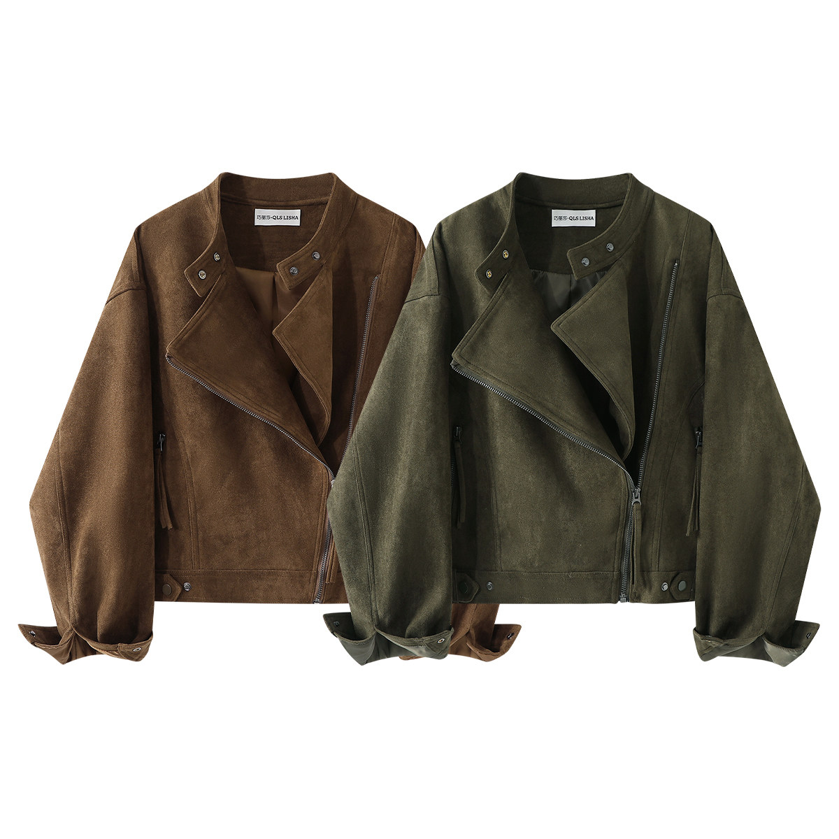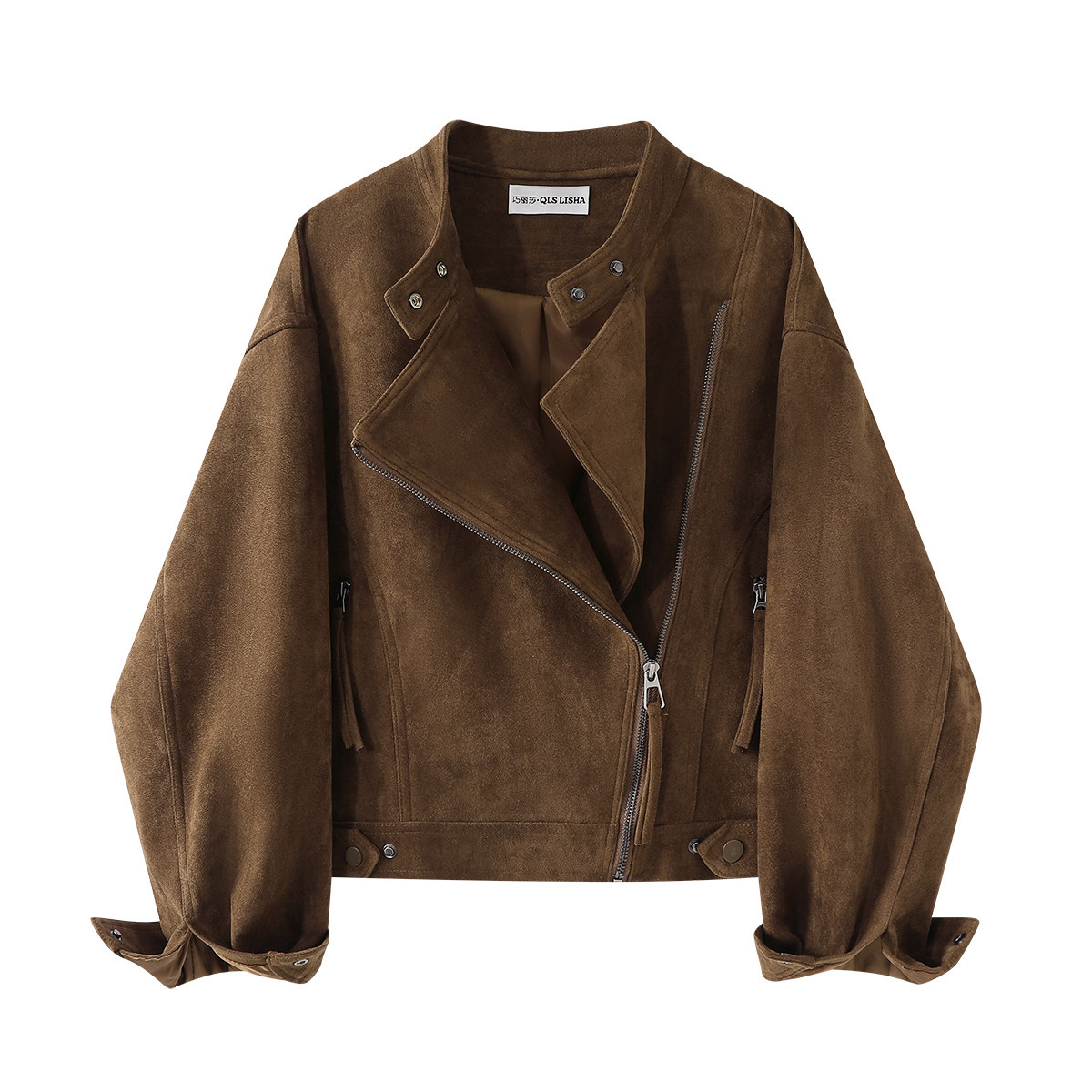 Chorlisa Merard Retro Süet Motosiklet Stil Gödəkçəsi Qadınlar üçün Payız Yüksək Zövqlü Boş Qısa Üst Geyim Topu
