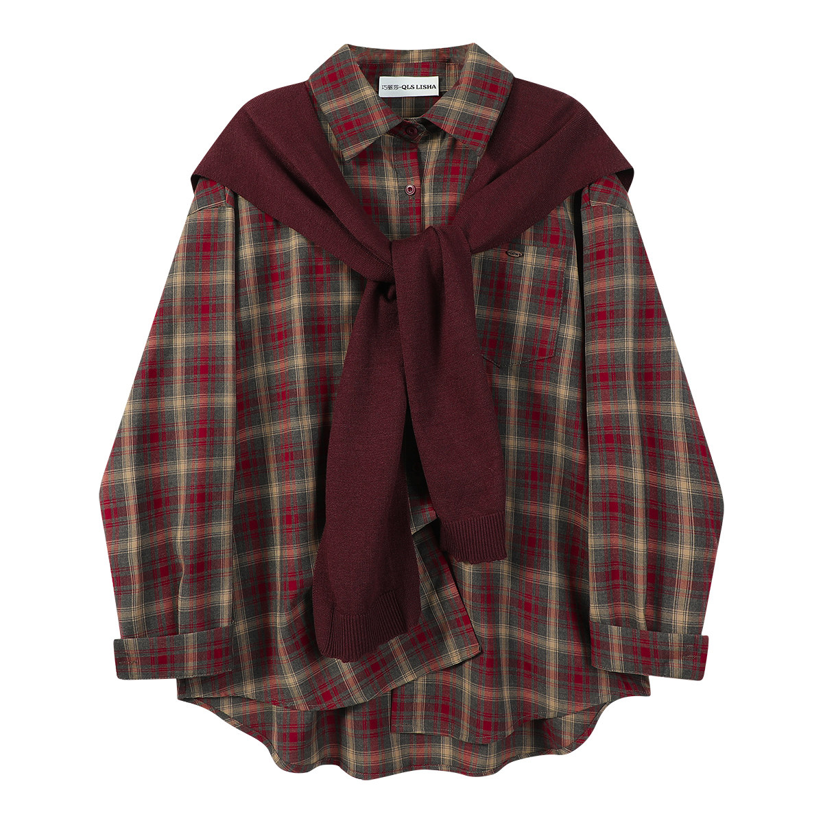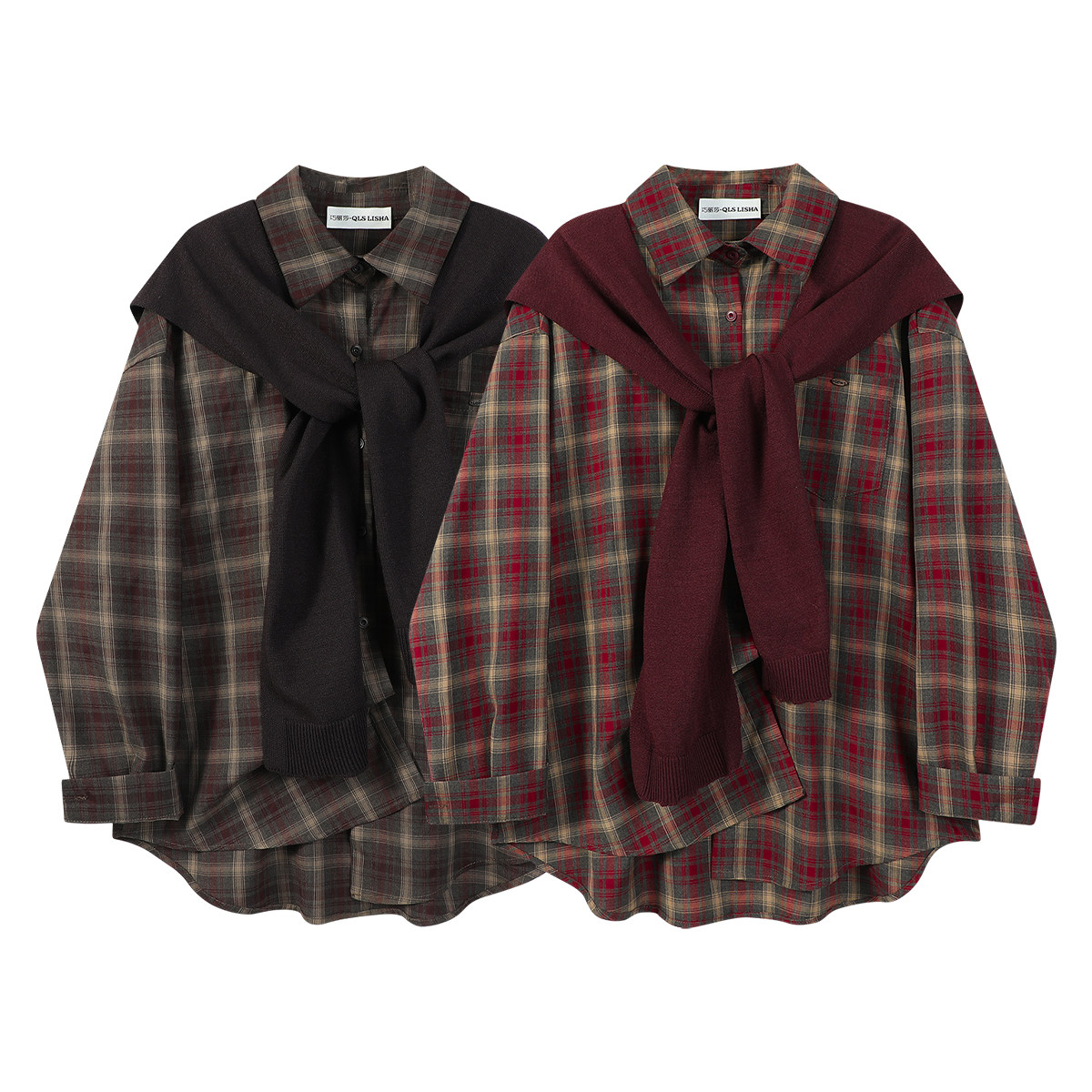 Chorlisa Retro Gündəlik Boş Damalı Polo Köynək 2026 Yaz və Payız Yeni Stil Şal Üst İki Parçalı Qadın Dəsti