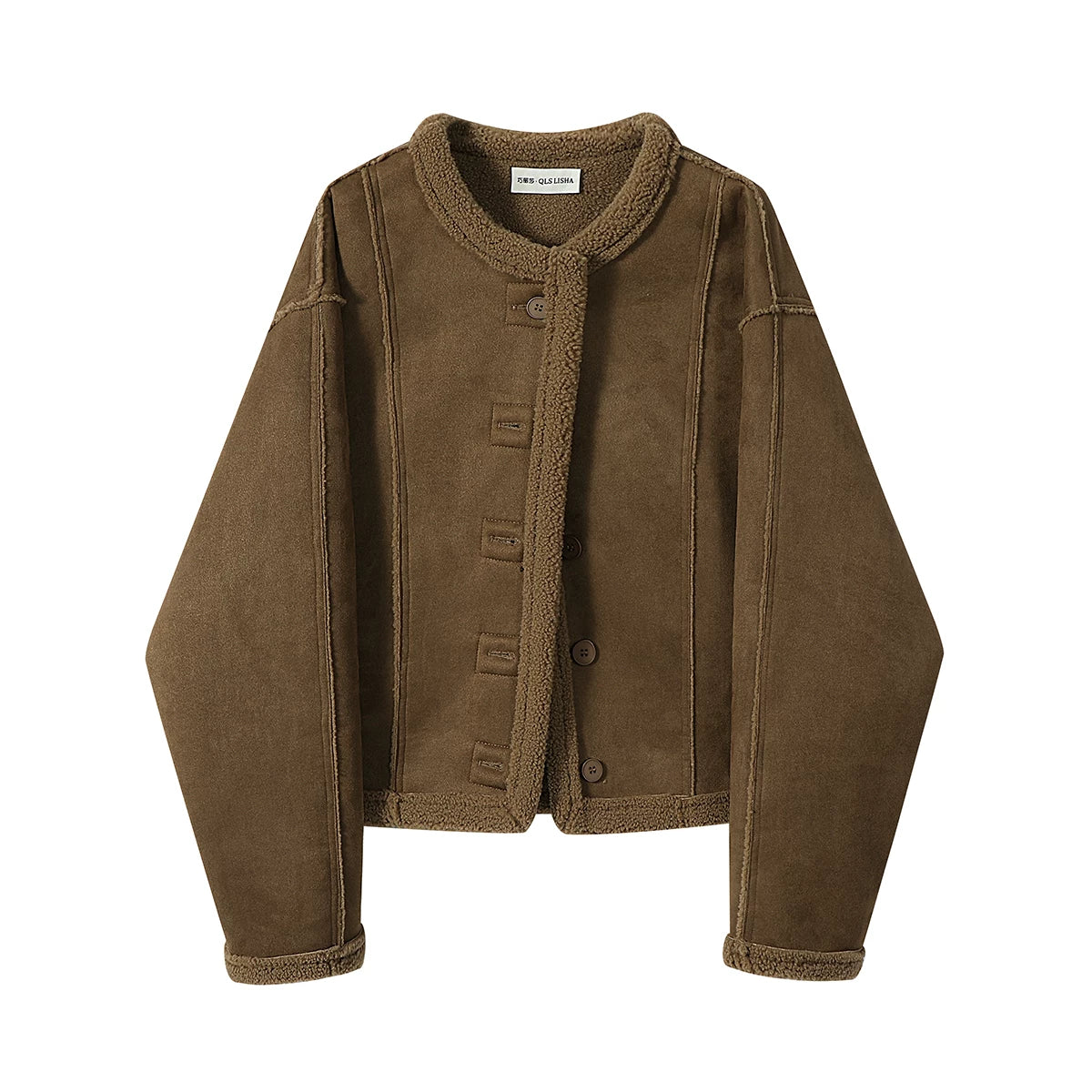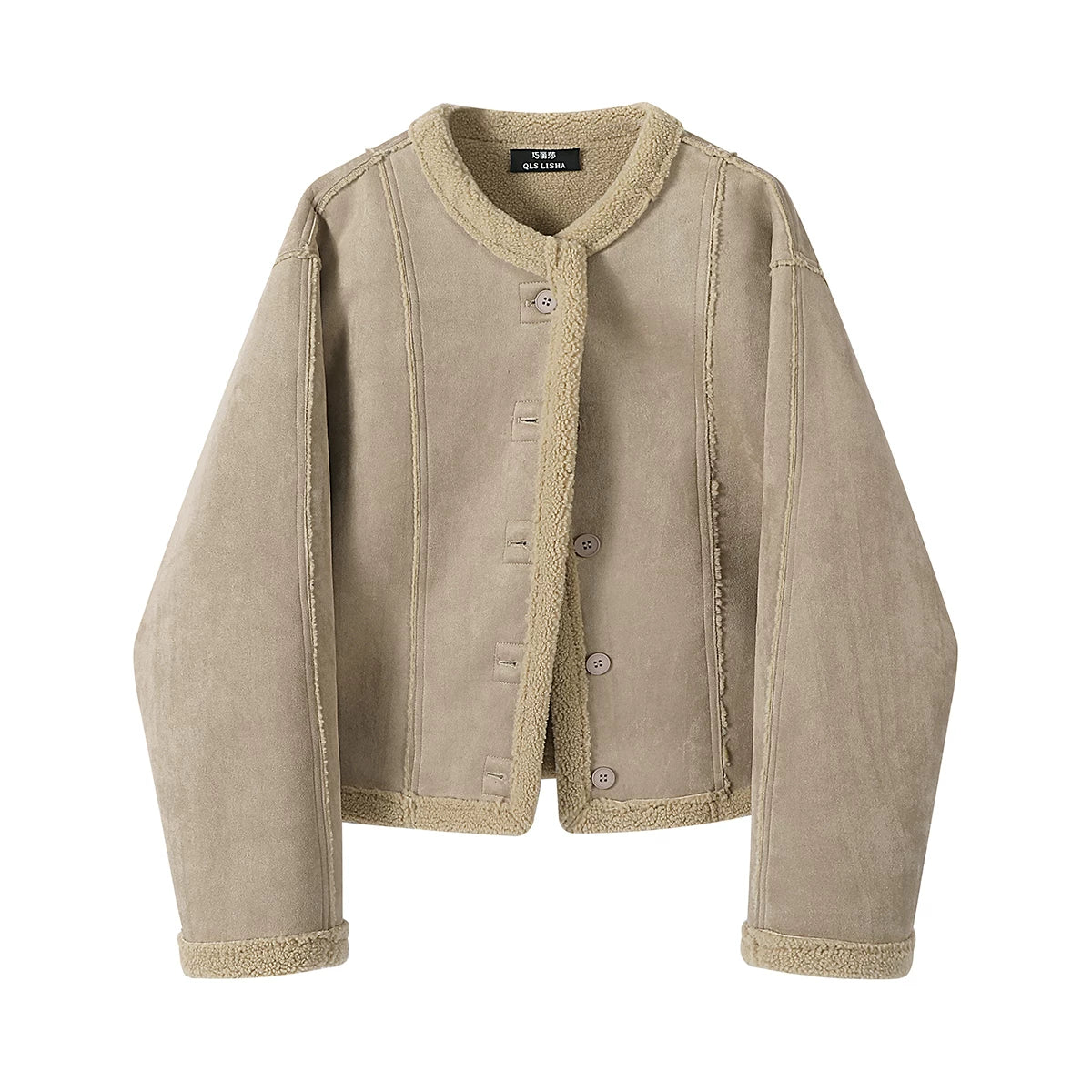 Chorlisa shearling qadınlar üçün dairəvi yaxalı palto, payız və qış, şık və dəbli, geri çevrilə bilən palto.