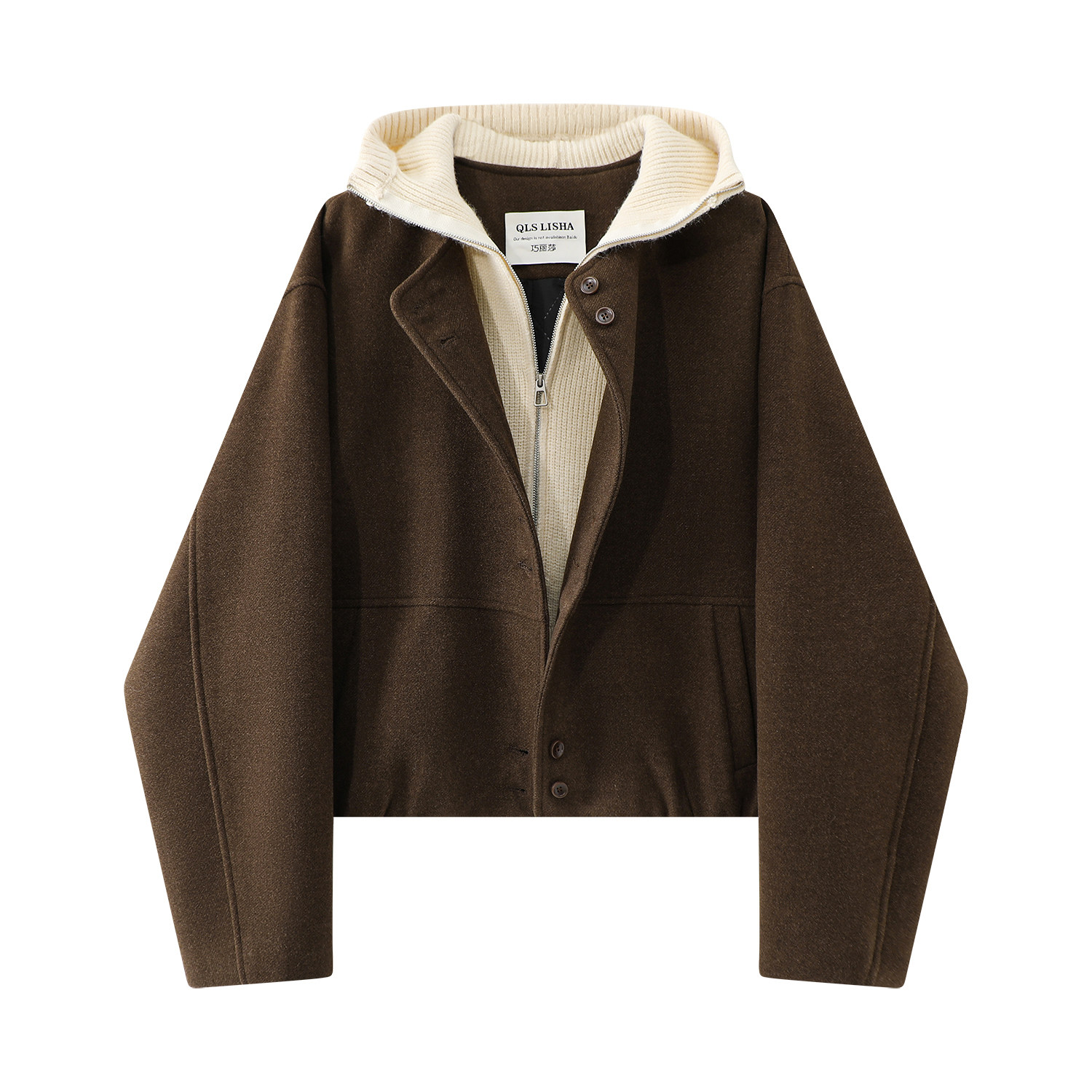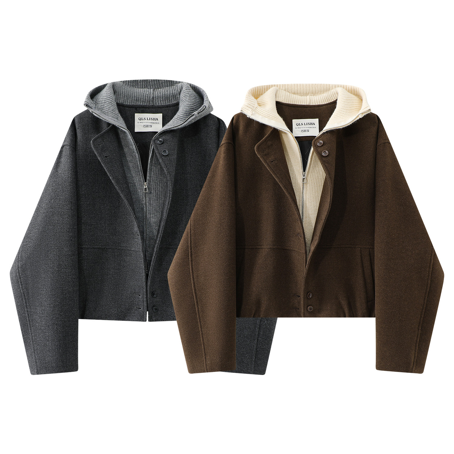 Chorlisa yun yamaqlı toxunma kapşonlu palto, qadın payız və qış yeni model, zərif yun qısa palto.