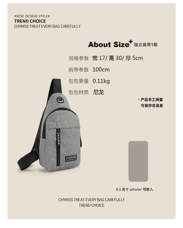 Multifunctional bicycle chest bag, men's crossbody bag, daily Oxford cloth shoulder bag, fashionable and trendy chest bag