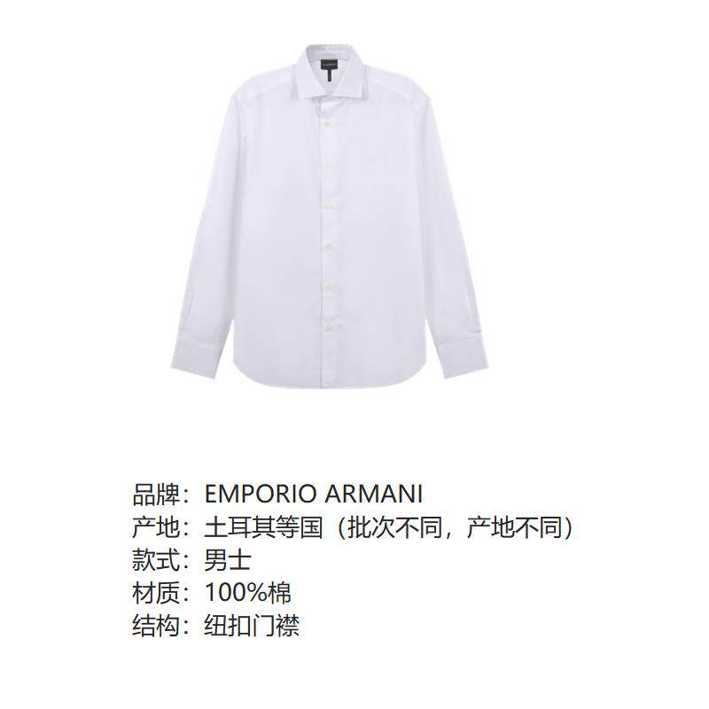 EA Armani New Kişi Pambıq Rəsmi İş Uzunqol Köynək 6D1C86 1K6CZ