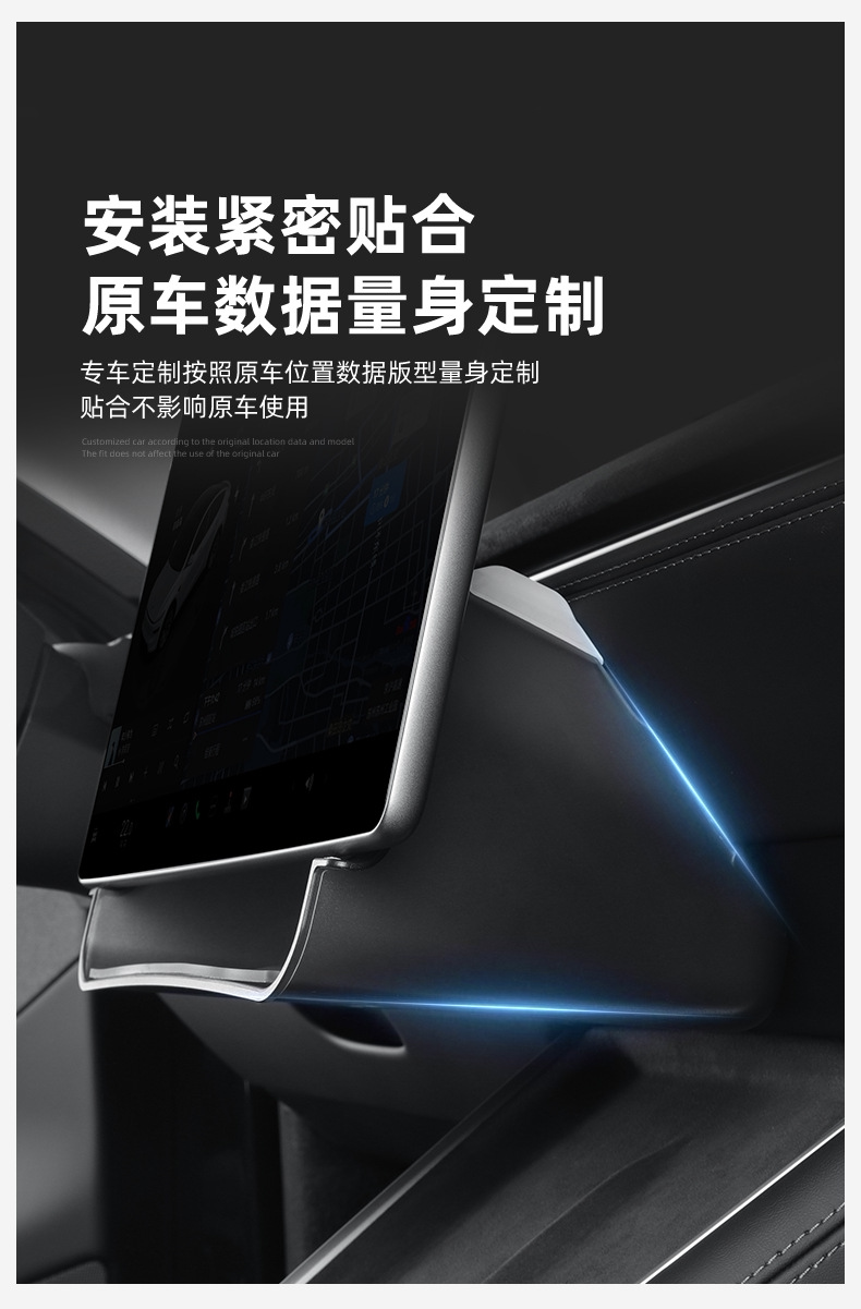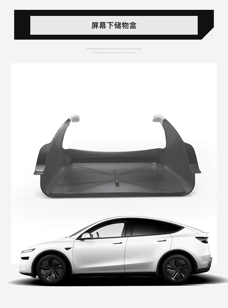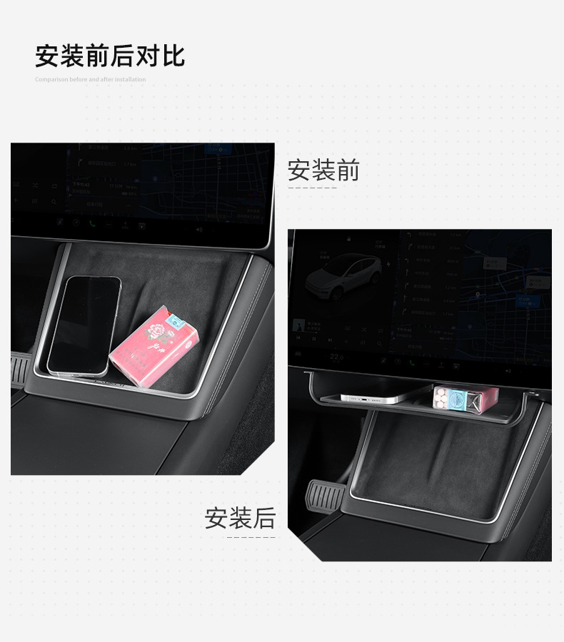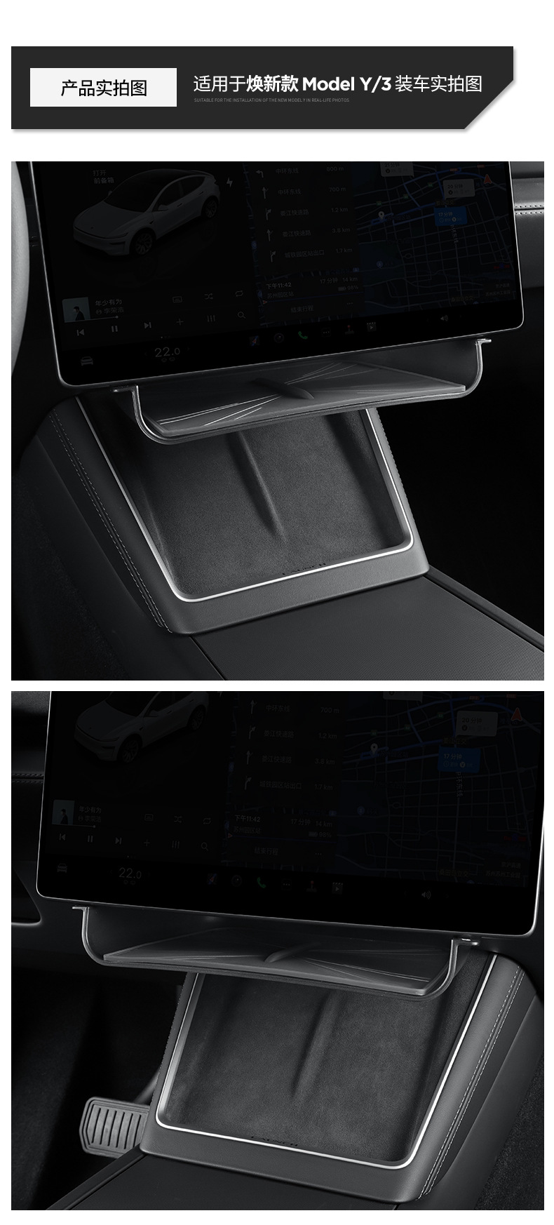 The under-display storage box upgrade applies to 25 Tesla models, including the Model Y3 center console tissue box interior modification.