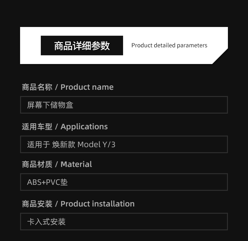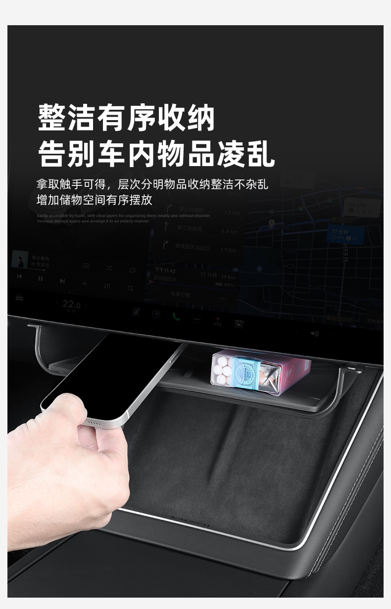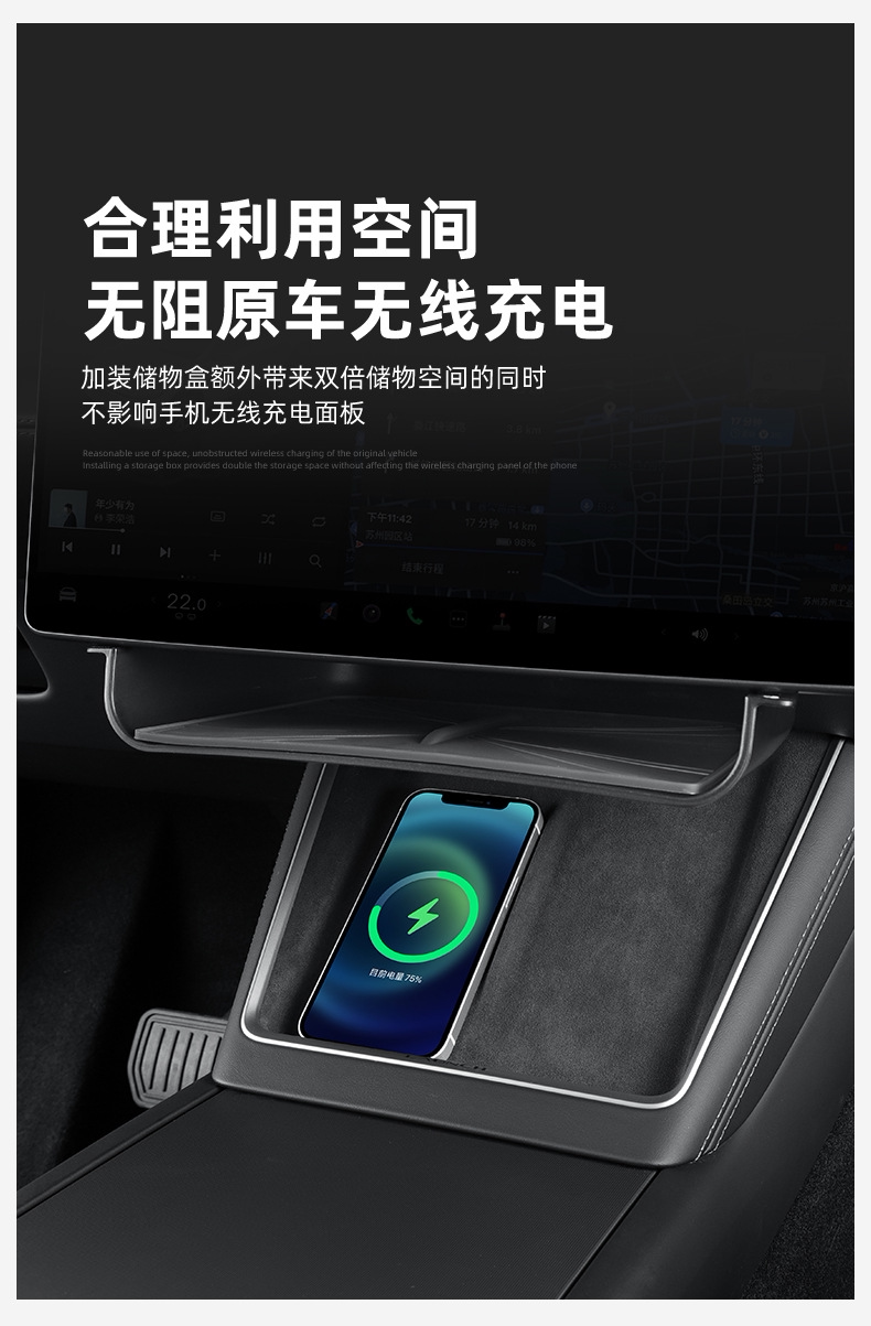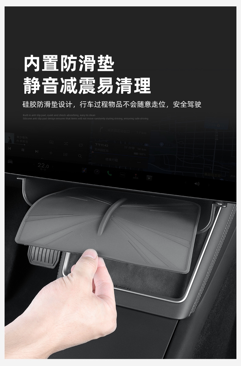 The under-display storage box upgrade applies to 25 Tesla models, including the Model Y3 center console tissue box interior modification.