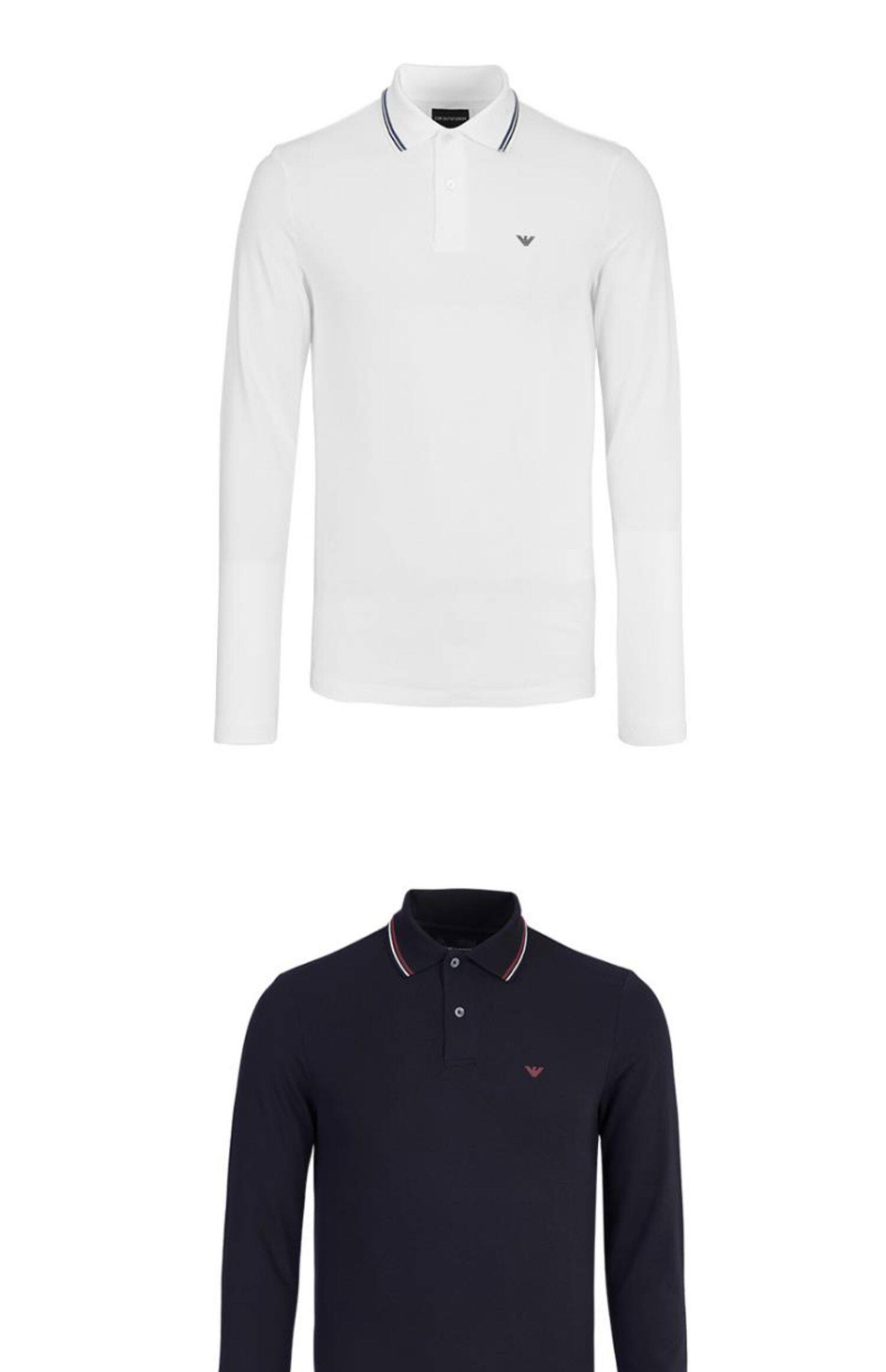 EMPORIO ARMANI Kişilər üçün Uzunqol Polo Köynək, Qartal Loqosu və Rəngli Yaxalıqlı Bəzək 301353