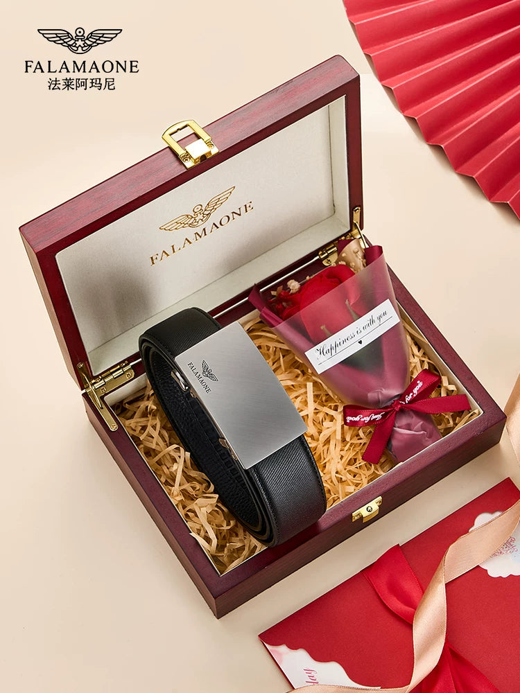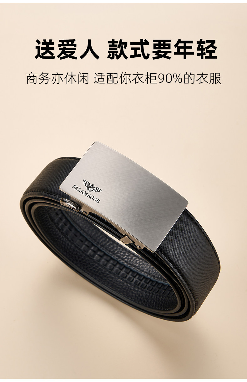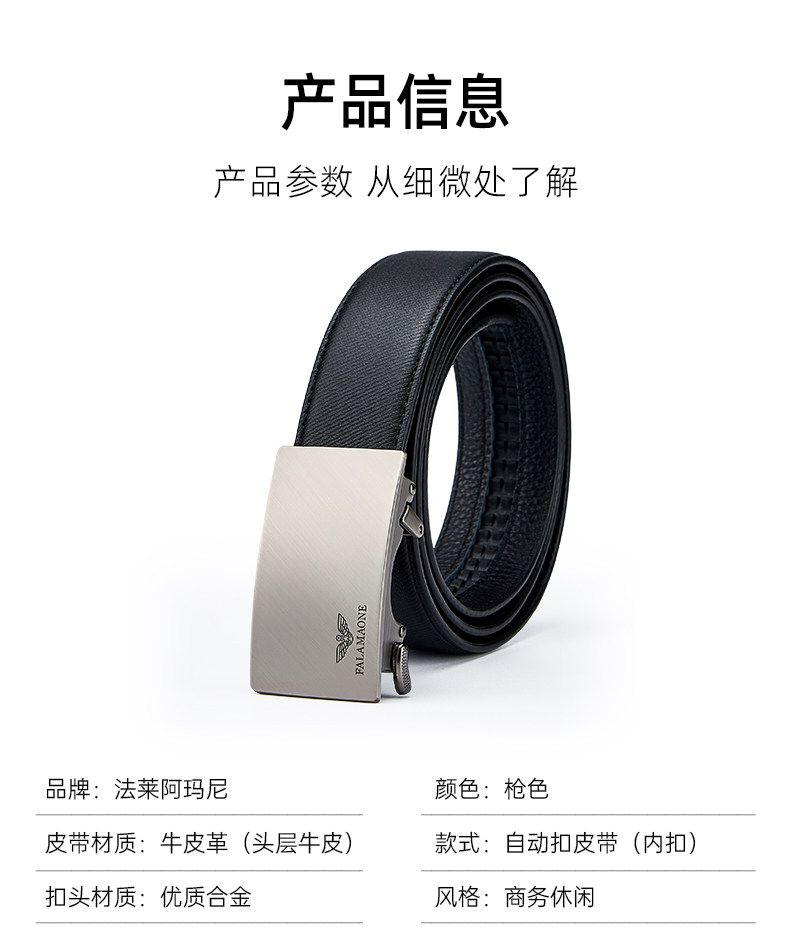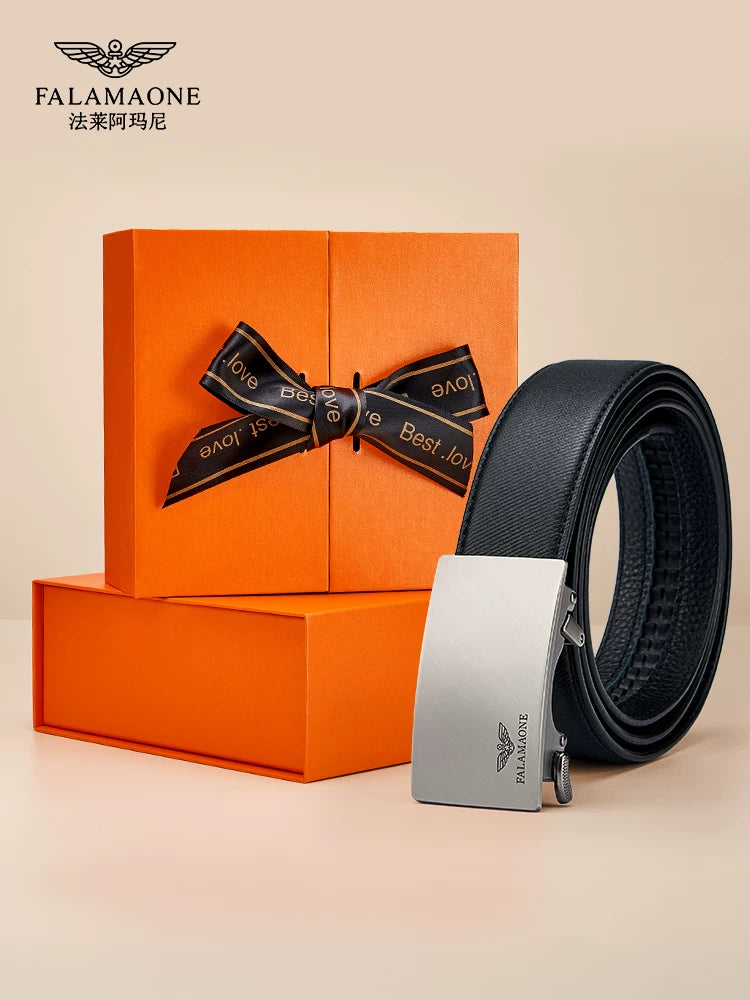 Falmani kişi üçün avtomatik toqqalı təbii dəri kəmər, biznes üslubunda, daxili toqqa, yüngül lüks, kişi üçün təbii dəri kəmər, sevgili üçün hədiyyə.