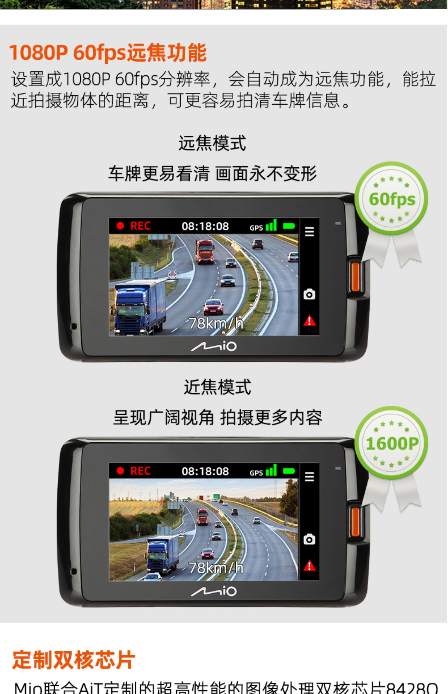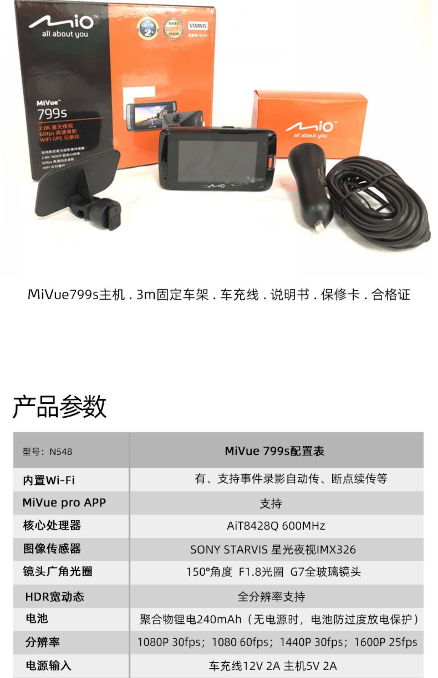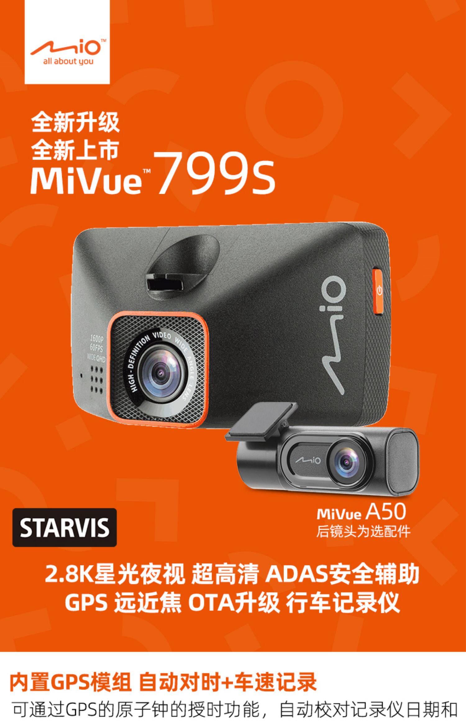 Mio Flagship 799s Car Video Camera with GPS, Sony Starlight Night Vision, Ultra HD and Wi-Fi, Dual Recording, Dual Lens