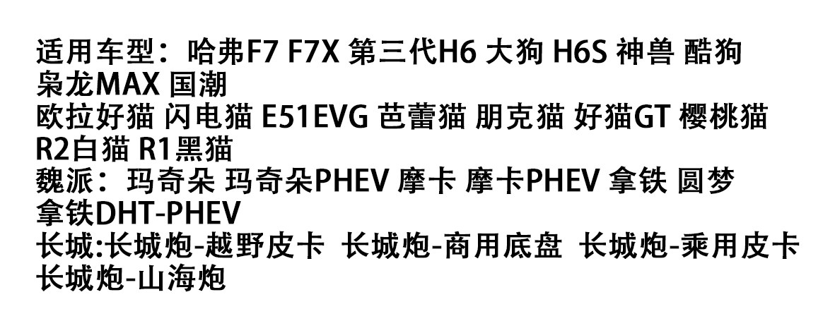 Great Wall Cannon Tank 300, Haval F7X, Third Generation H6 and Big Dog are compatible with front and rear collision avoidance parking and reversing radar (original factory).