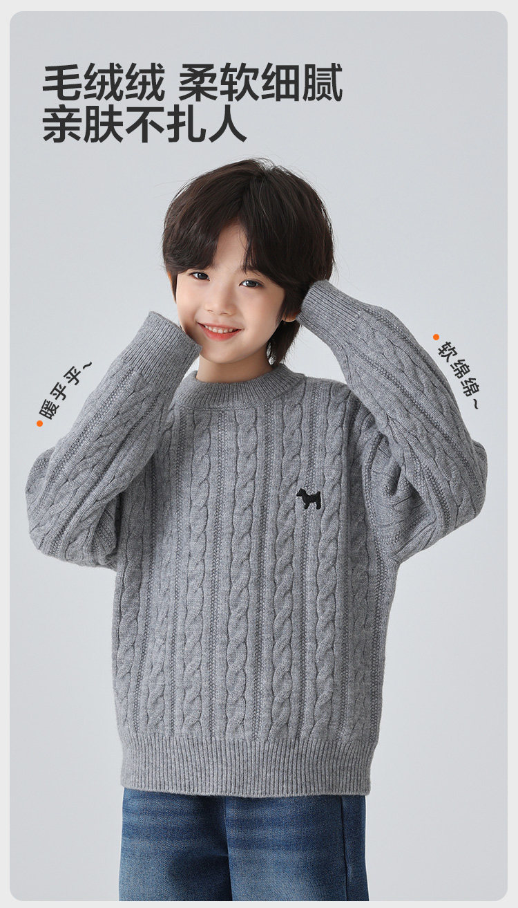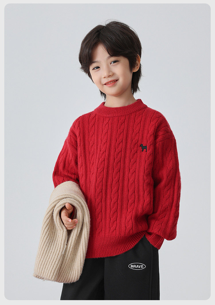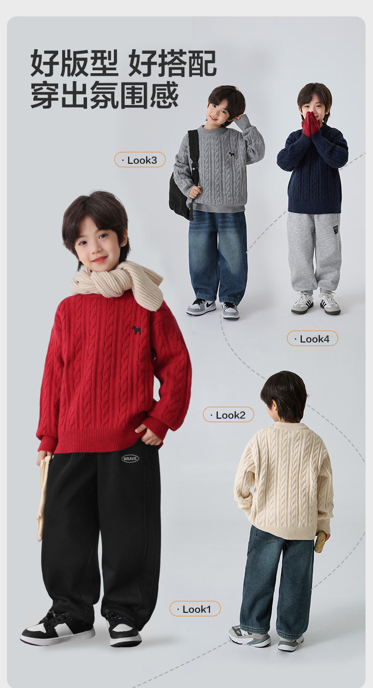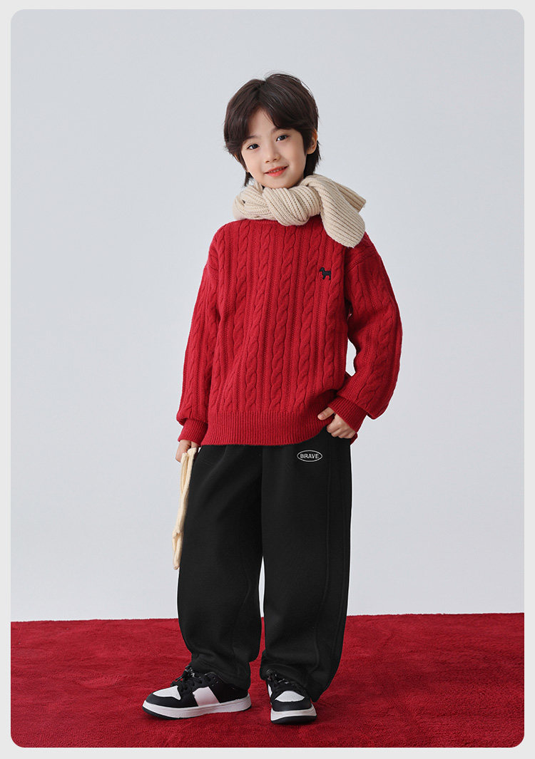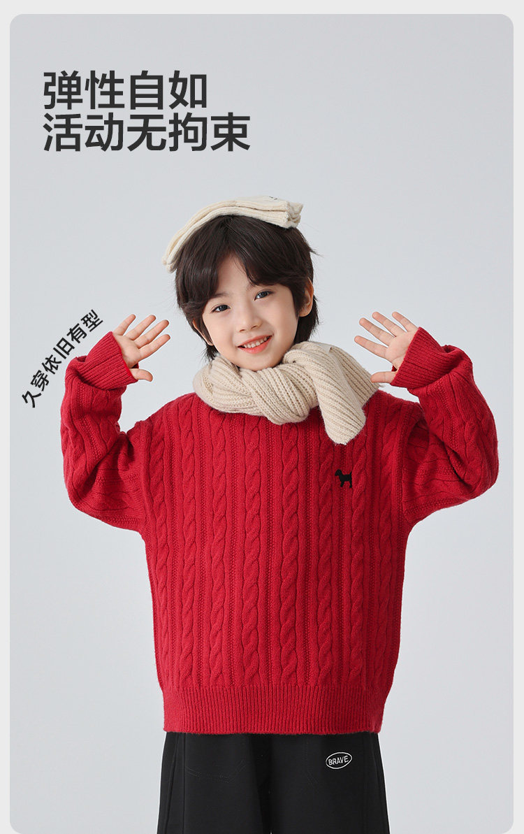 Hai Ma uşaq geyimləri oğlanlar üçün qırmızı sviter qış geyimi 2025 yeni stil üst daxili təbəqə Yeni il uşaq yun sviteri qalınlaşdırılmış