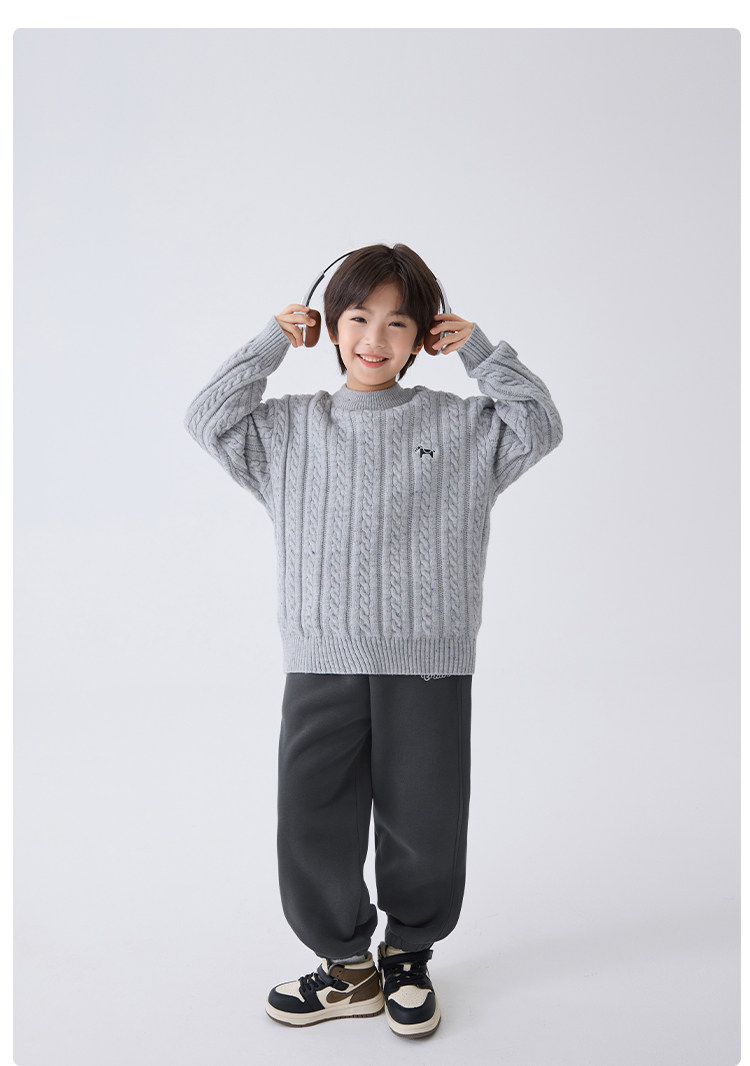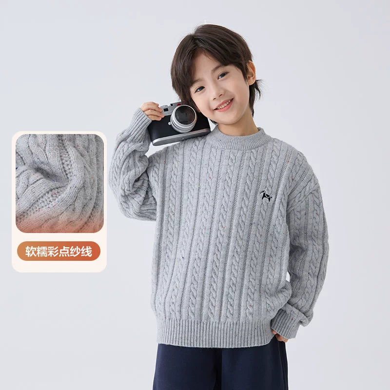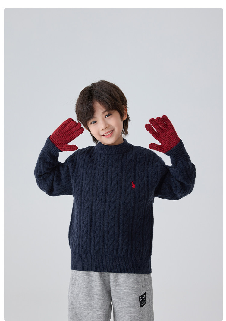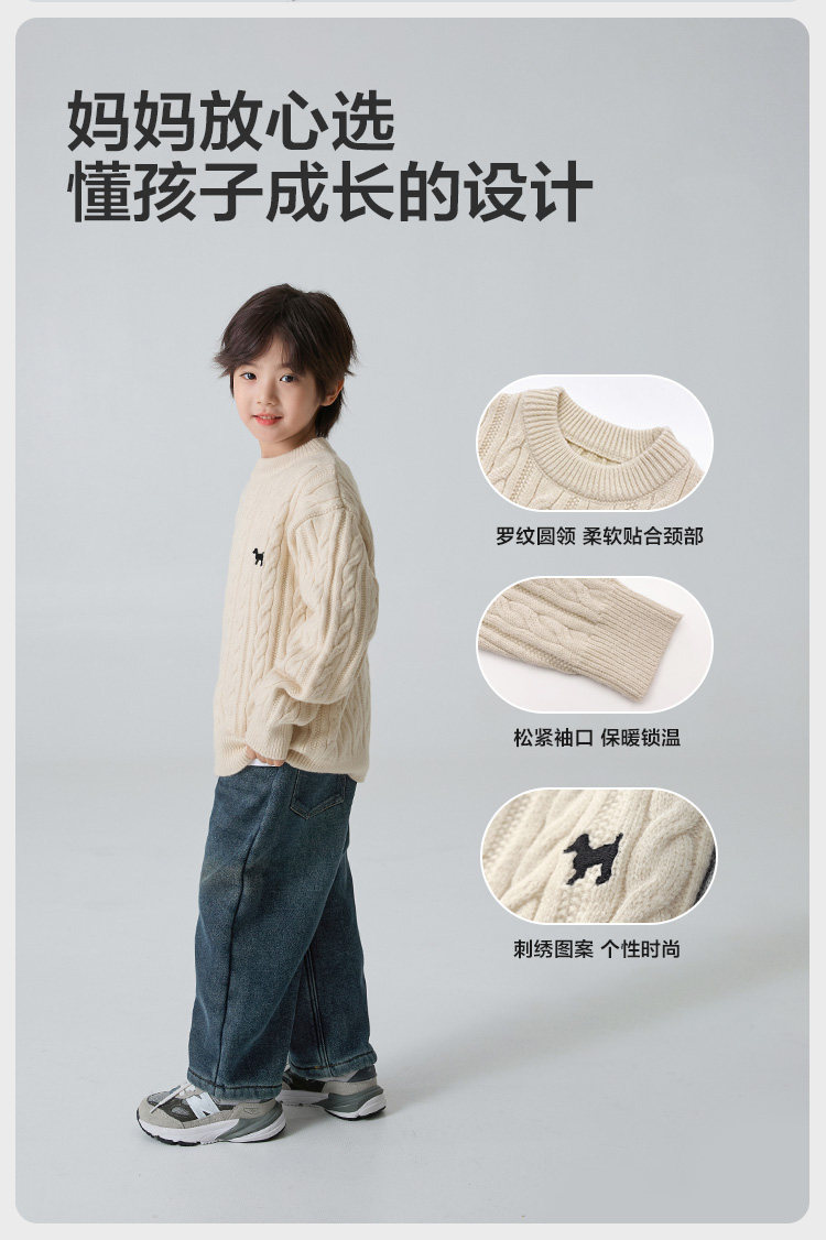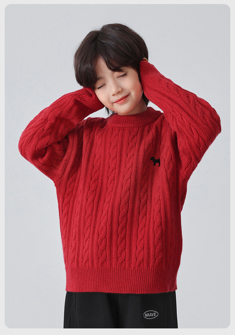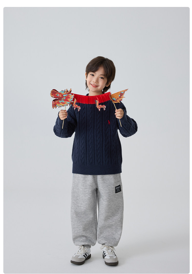 Hai Ma uşaq geyimləri oğlanlar üçün qırmızı sviter qış geyimi 2025 yeni stil üst daxili təbəqə Yeni il uşaq yun sviteri qalınlaşdırılmış