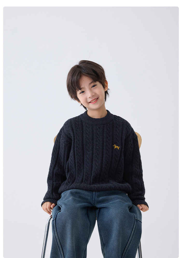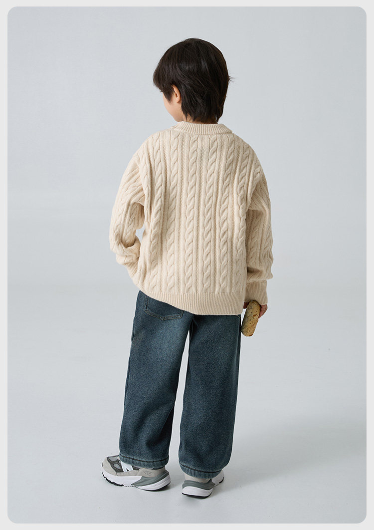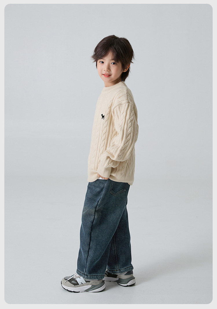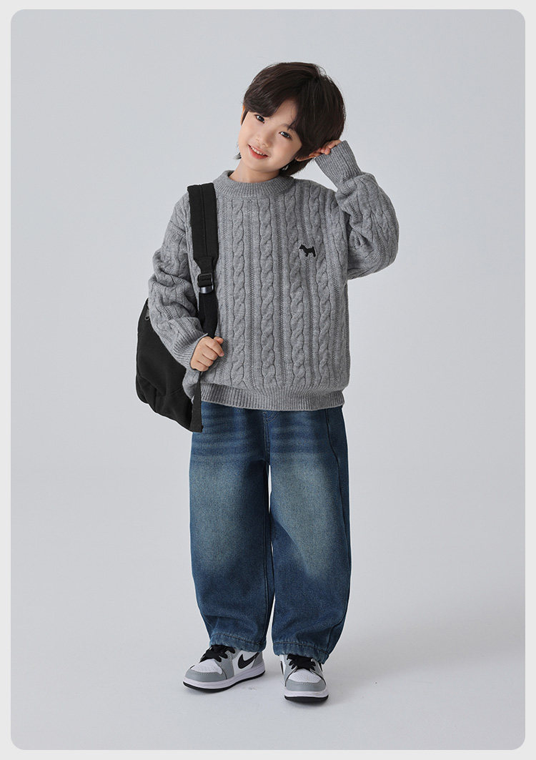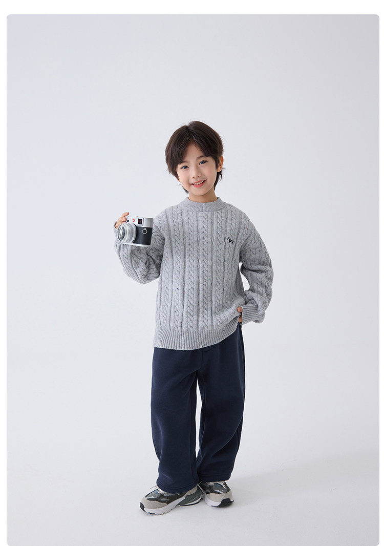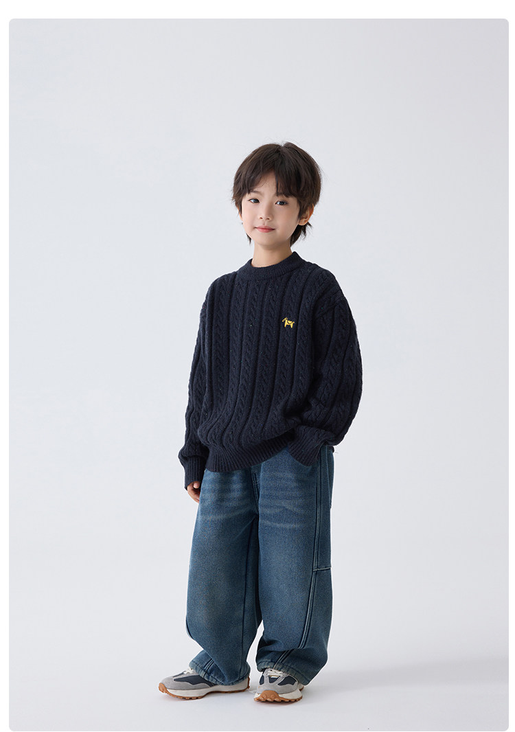 Hai Ma uşaq geyimləri oğlanlar üçün qırmızı sviter qış geyimi 2025 yeni stil üst daxili təbəqə Yeni il uşaq yun sviteri qalınlaşdırılmış
