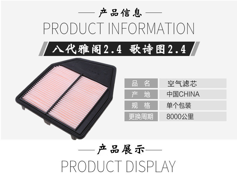 Compatible with Honda 8th Generation Accord Crosstour 2.4 air filter element, air cleaner, air filter filter