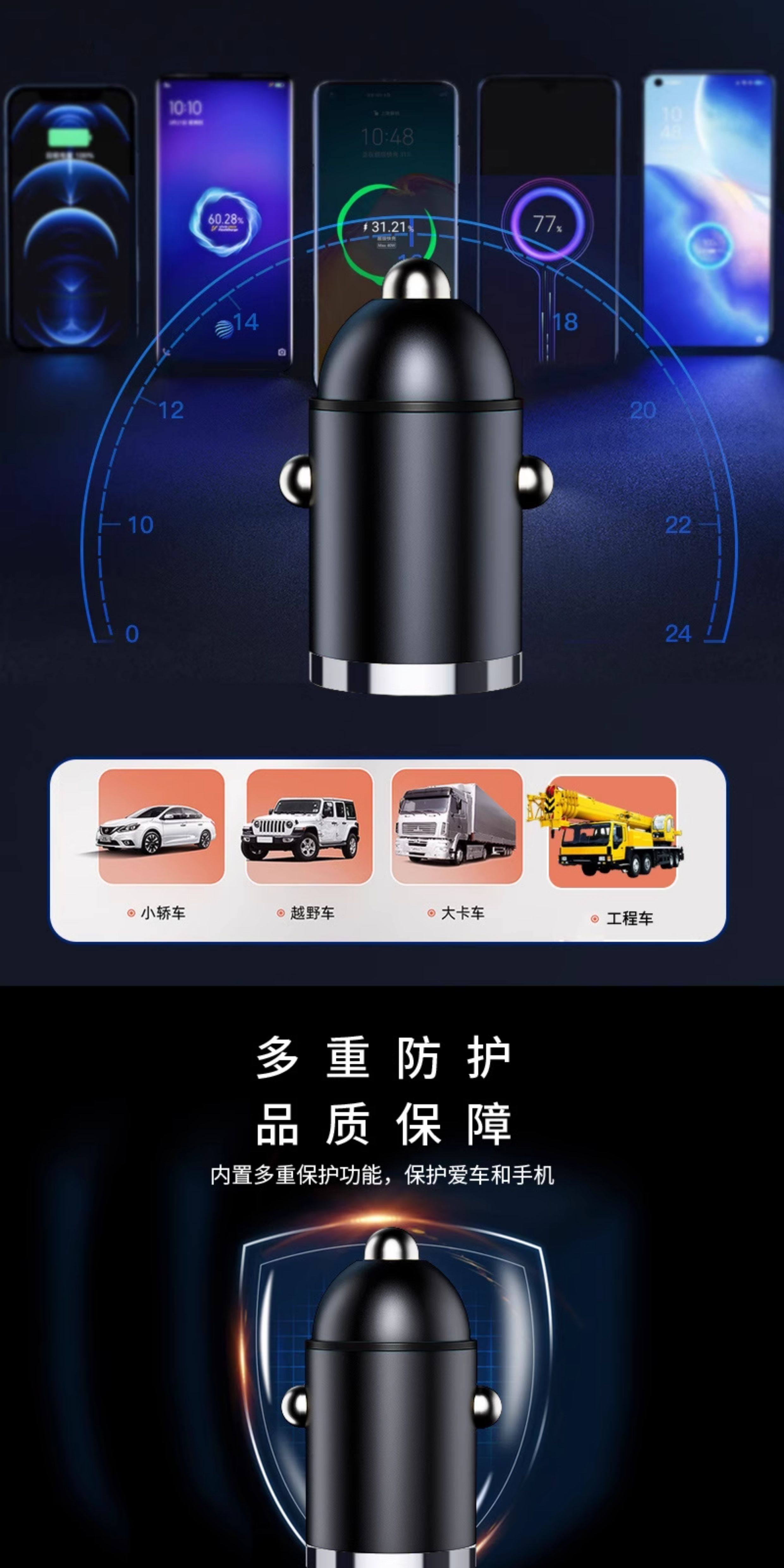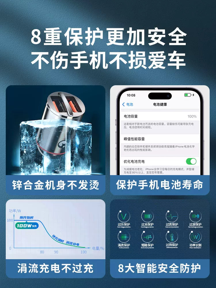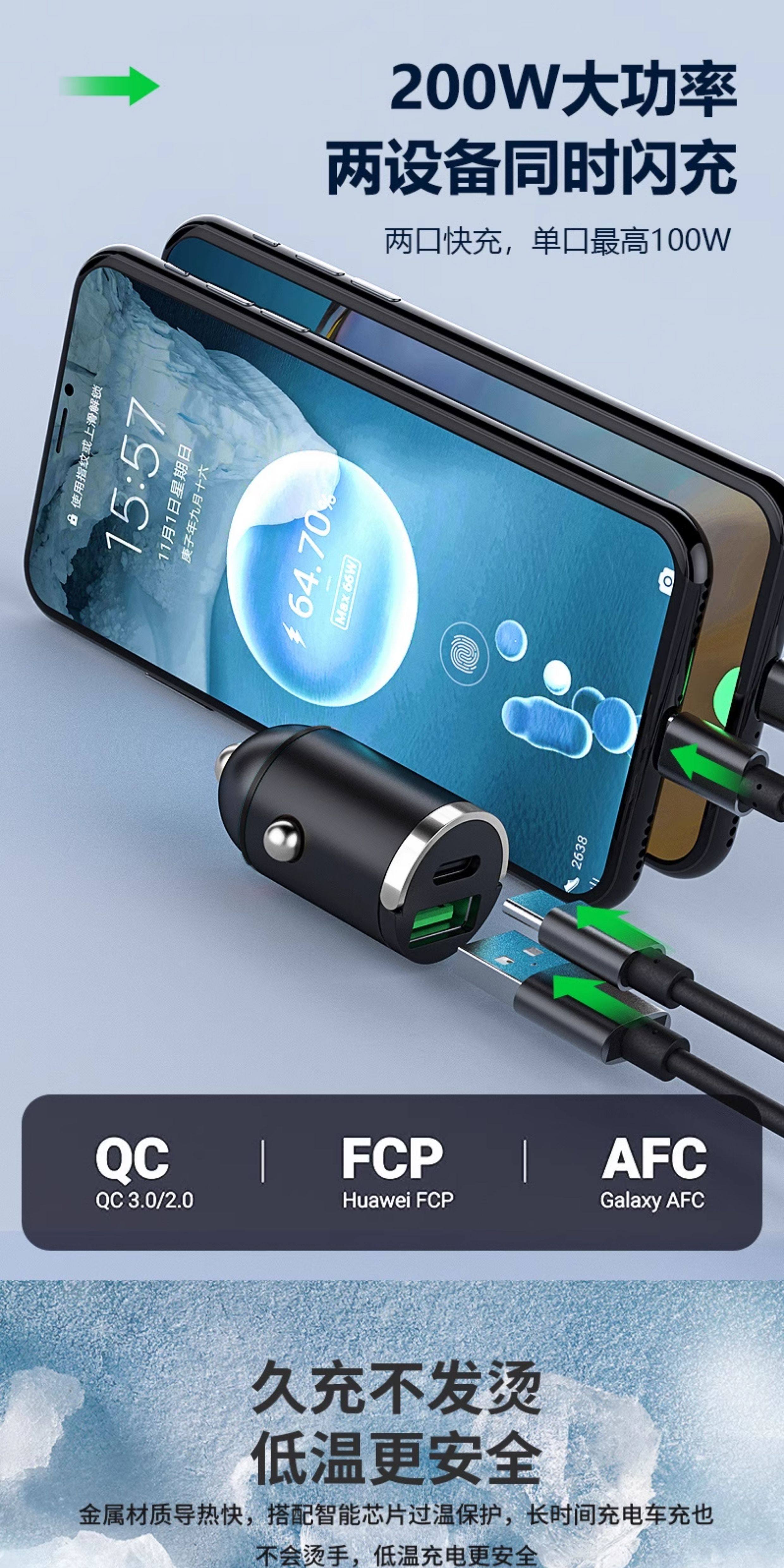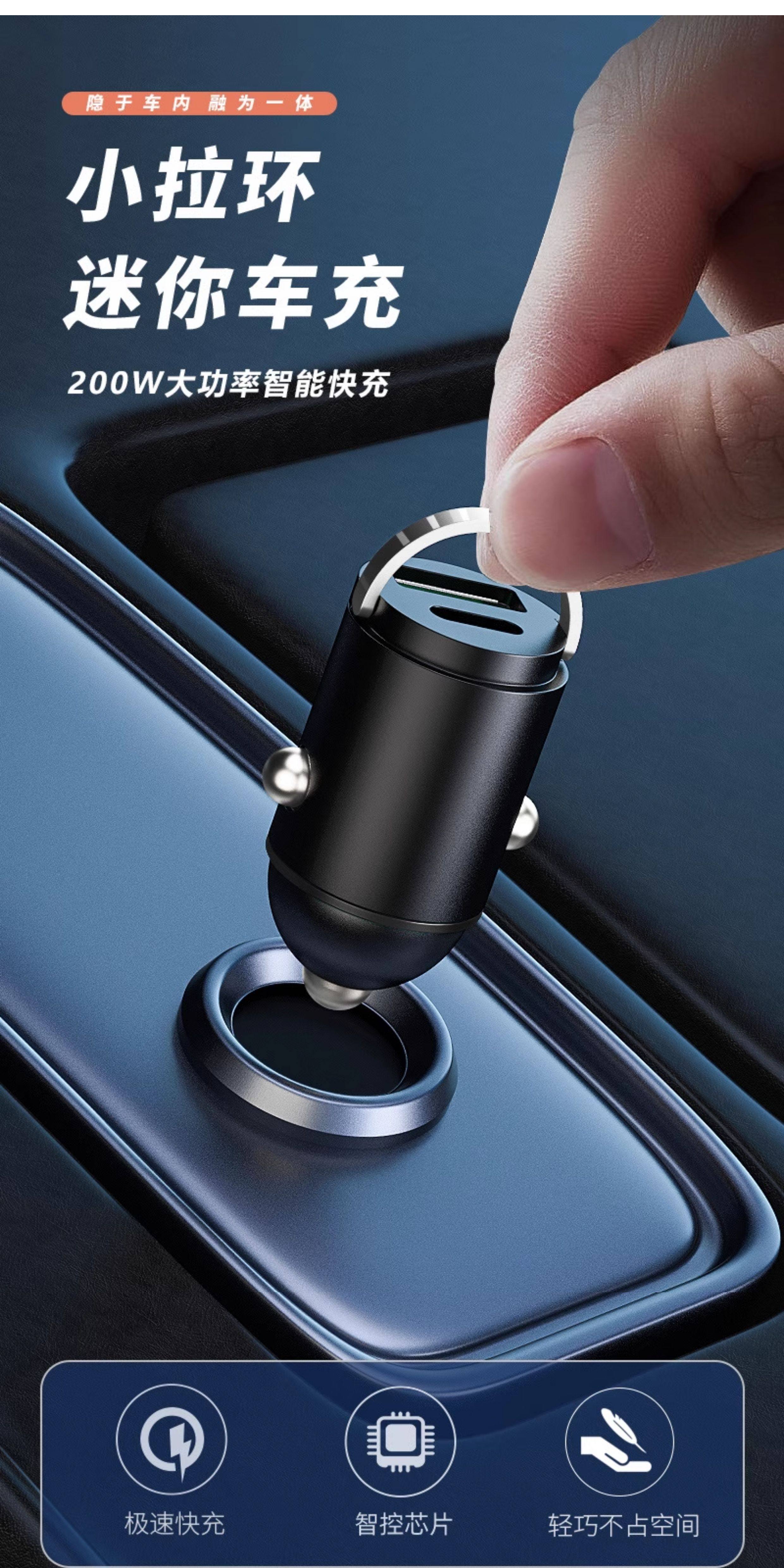 Huawei, Xiaomi və Apple avtomobil siqaret çaxmağının gizli adapteri ilə uyğun avtomobil şarj cihazı, 200W super sürətli şarj.