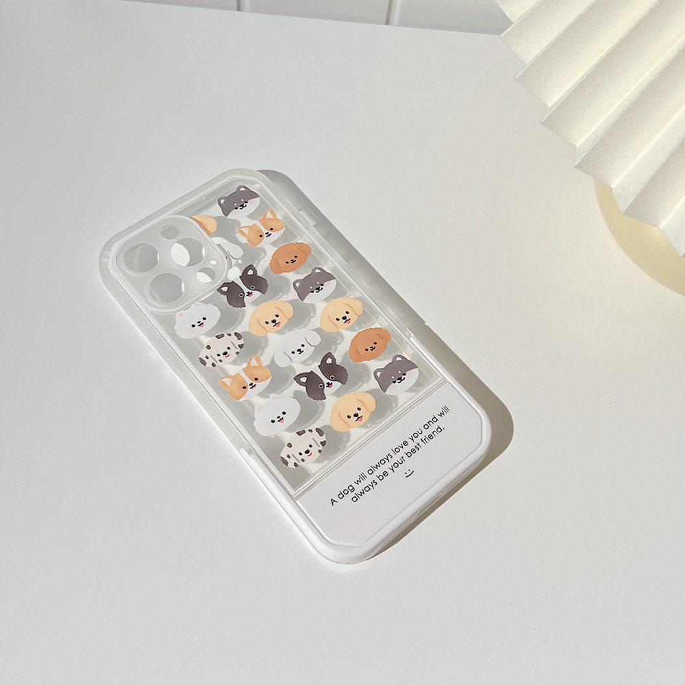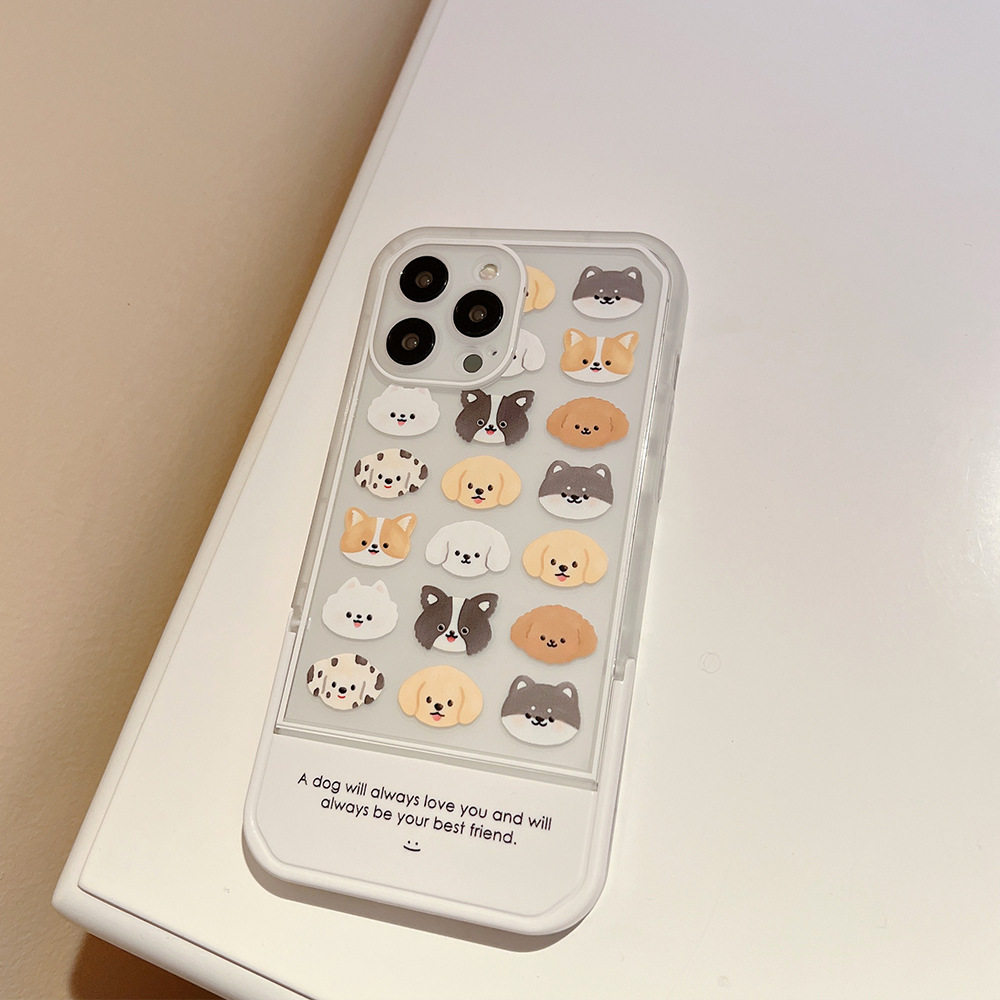 Minimalist Premium iPhone Case for iPhone 16, 16e, 15, 13, Apple 12 Pro Max, Folding Stand, 14-Piece Set, 11 Cartoon Dog Case Plus