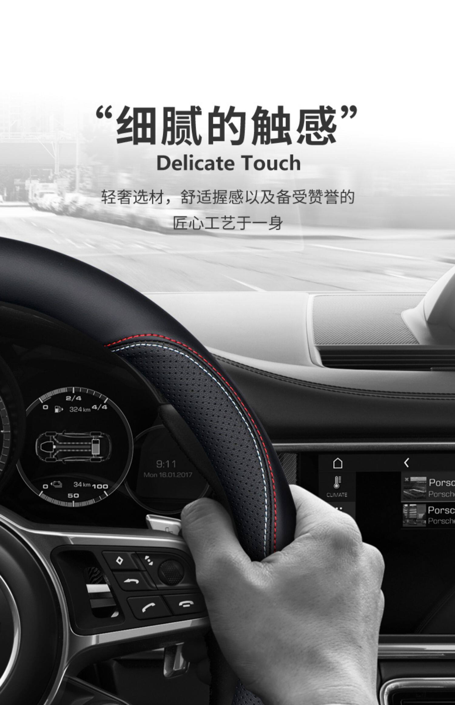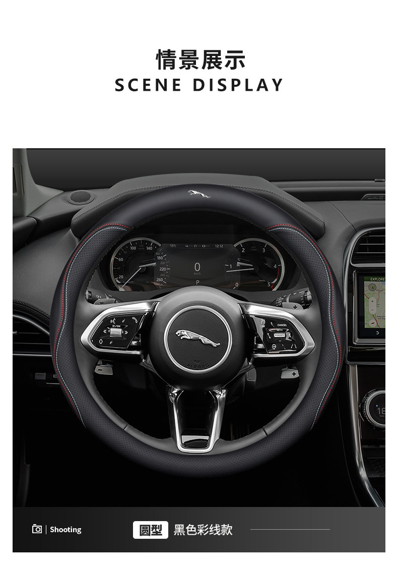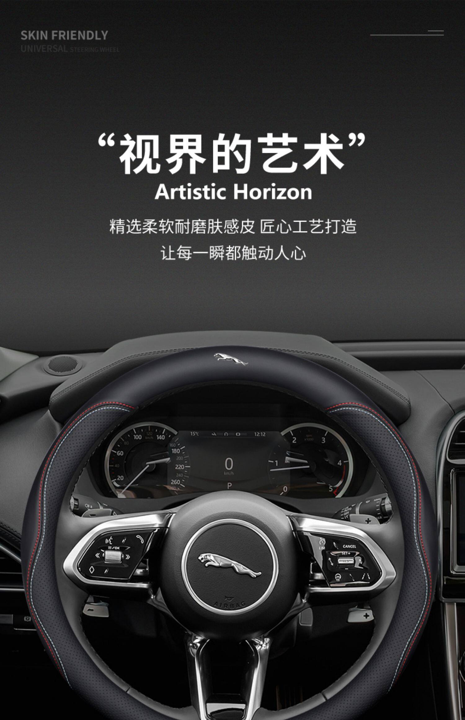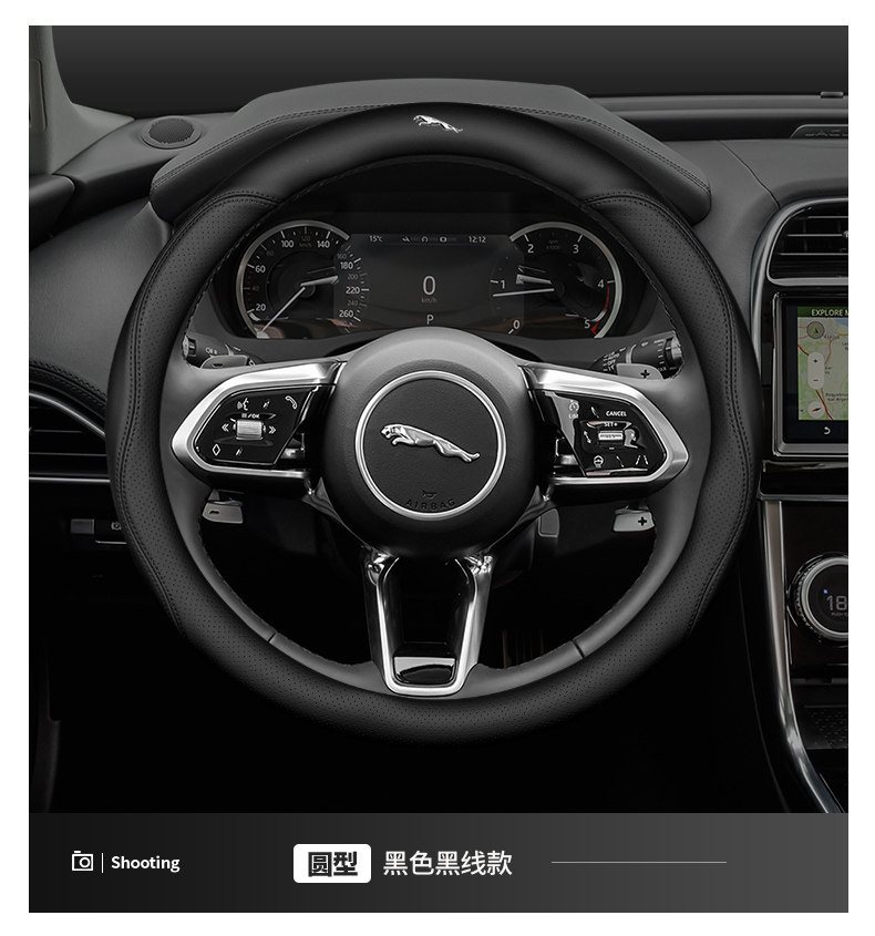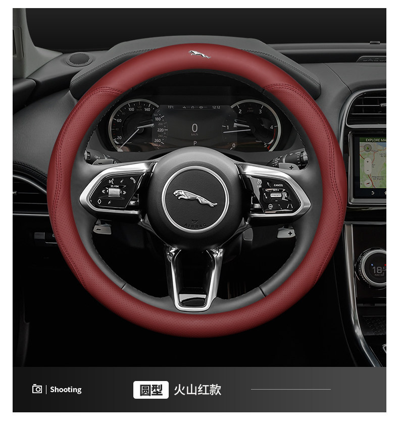 Jaguar steering wheel cover, genuine leather, for XF, F-PACE, XEL, XFL, XJ and XE cars, non-slip and breathable all season.