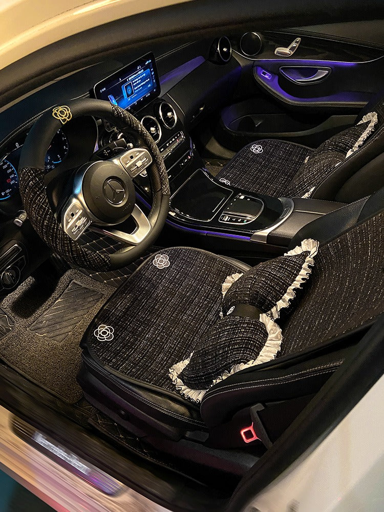 Linen car seat cushions, for all seasons, premium feel, new style, women's seat cover, star-shaped car seat cover and cushion set, five-piece.