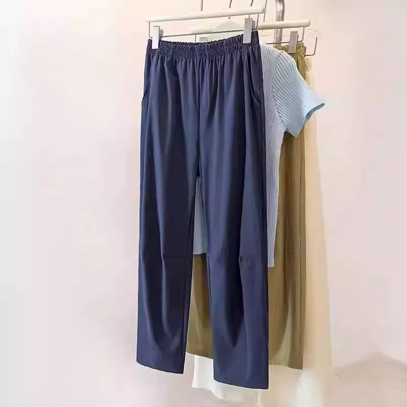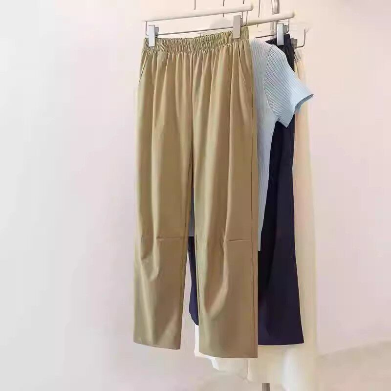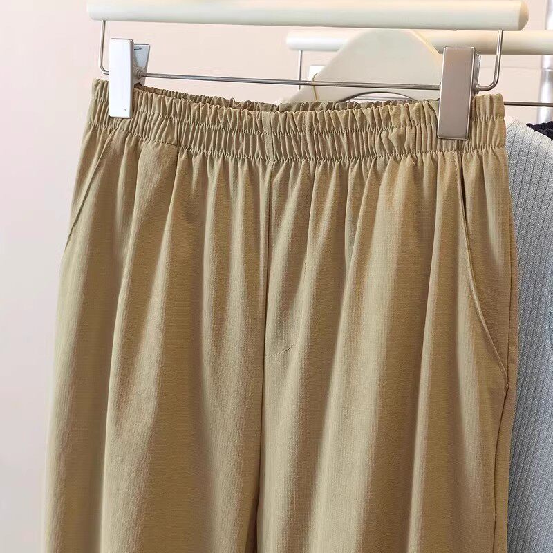 Kiçik armud formalı fiqurlar üçün böyük ölçülü qadınlar üçün 2026 yay yüksək belli düz ayaqlı, tez quruyan qısa hərəm gündəlik şalvarı