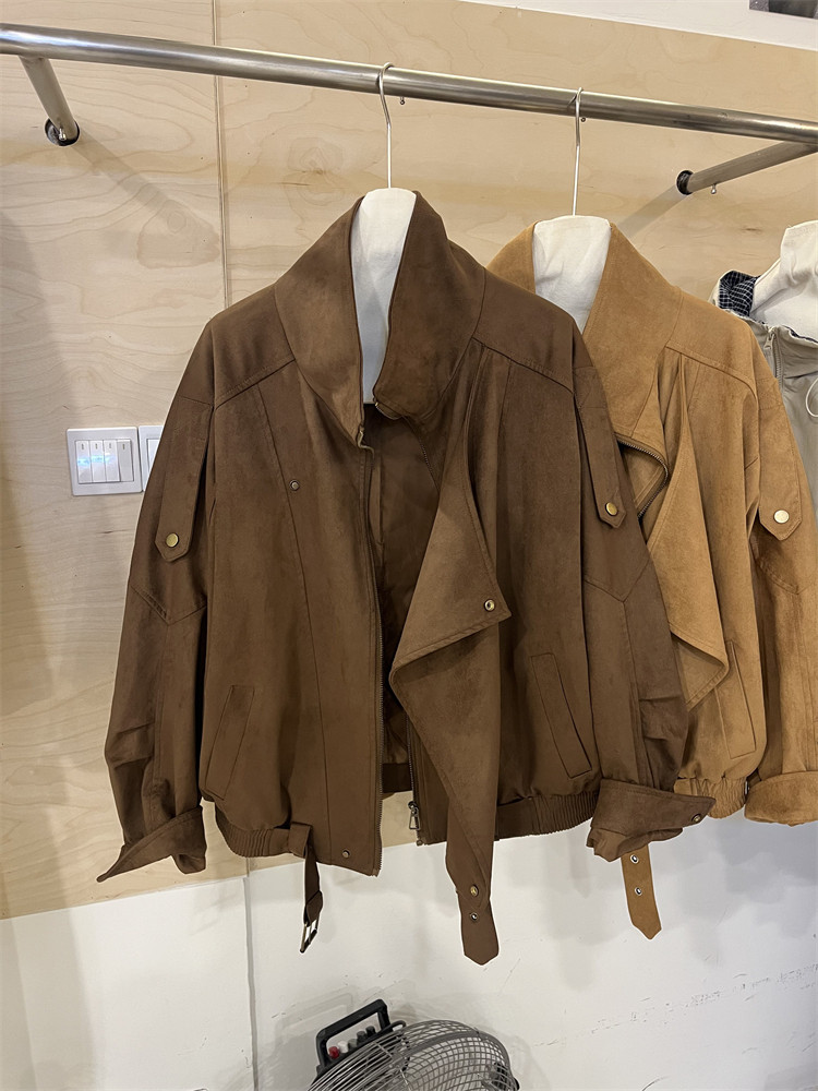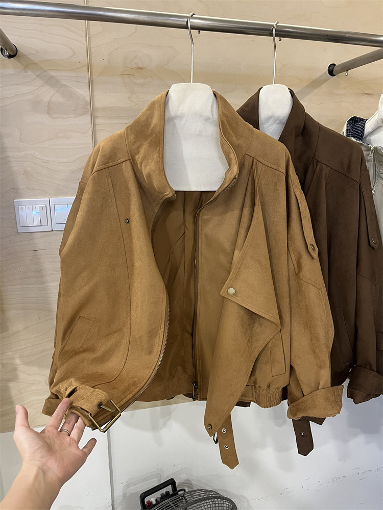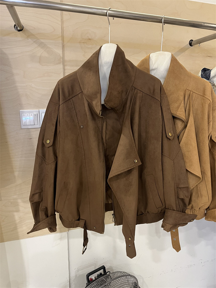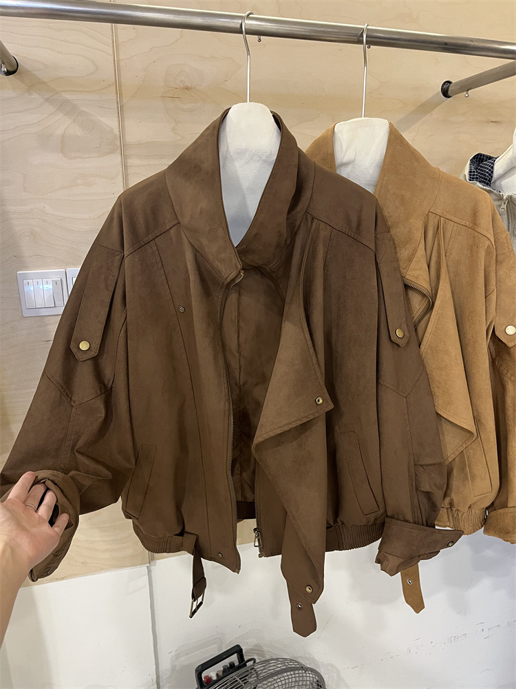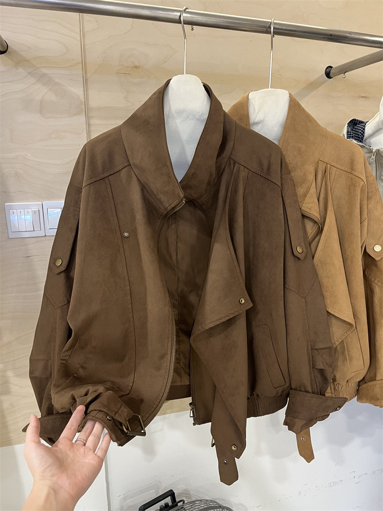 Kiçik bədən quruluşlu qadınlar üçün Avropa üslubunda, yüksək keyfiyyətli, boş və qısa zamşa gödəkçə, payız üçün idealdır, gündəlik beysbol gödəkçəsi, bayker üslubunda.