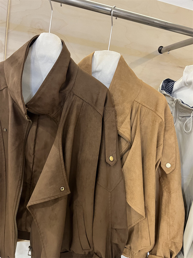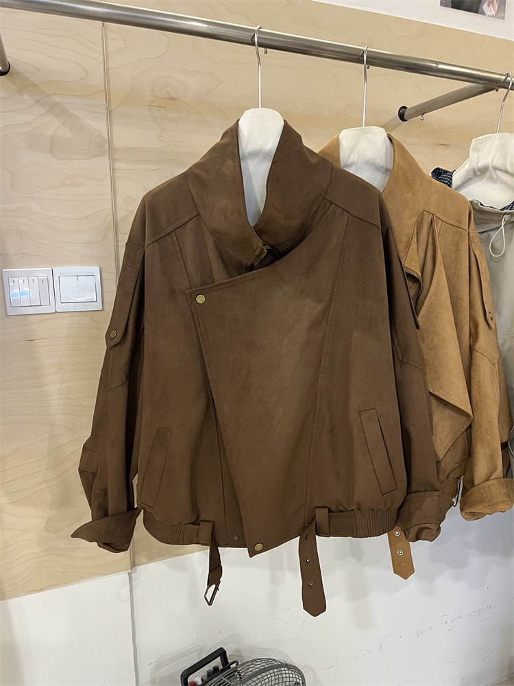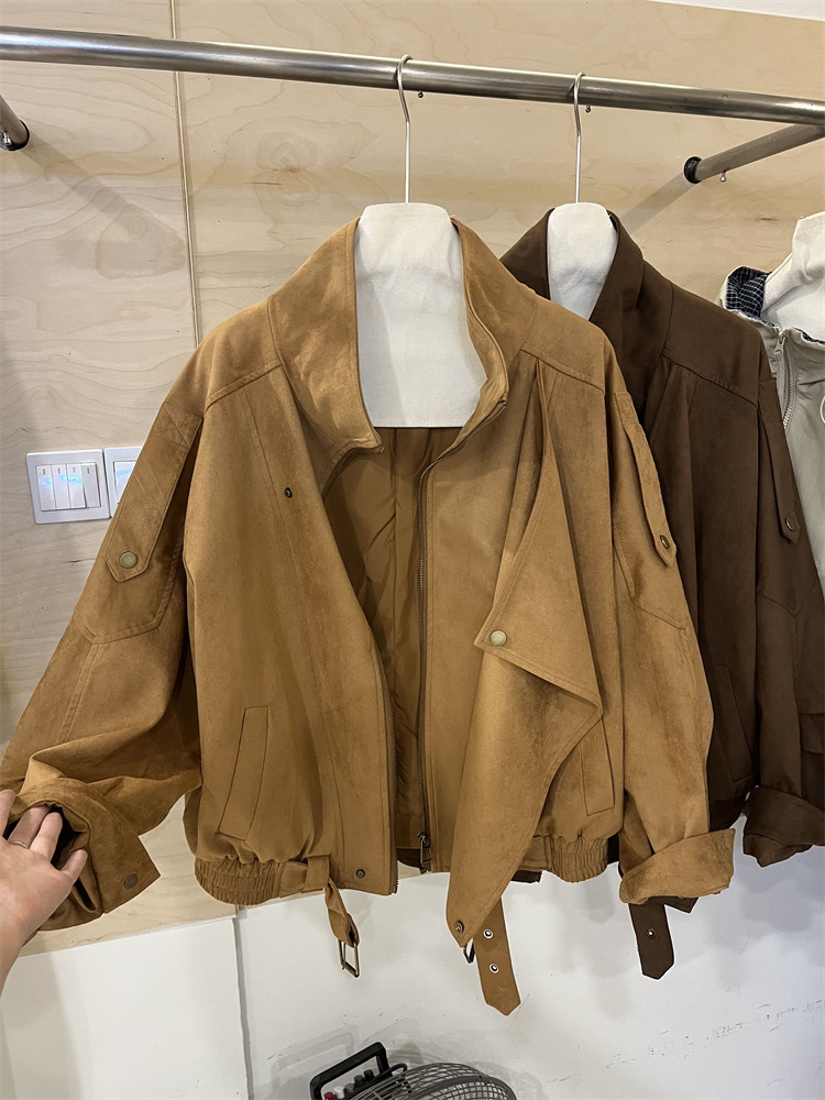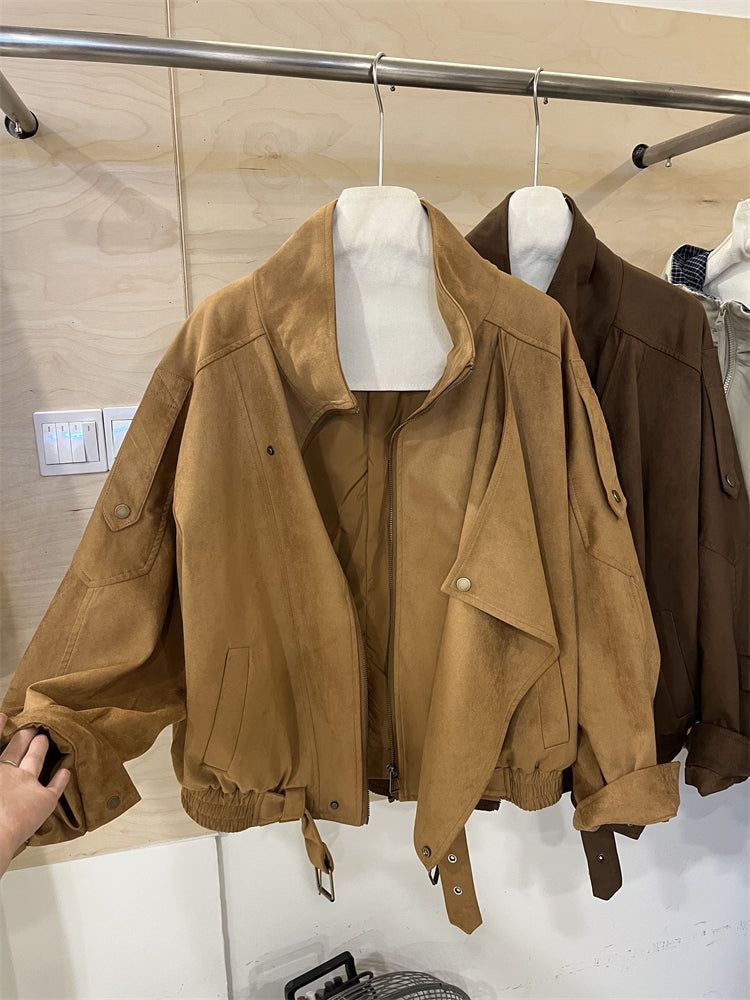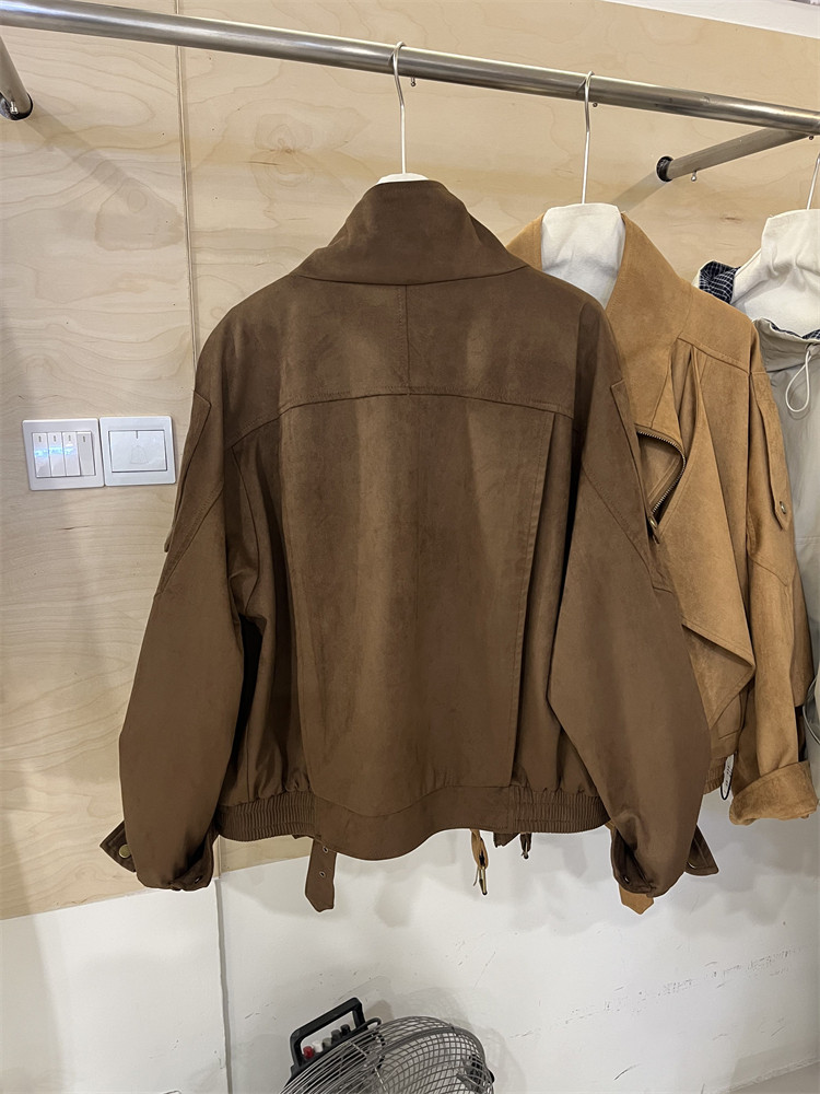 Kiçik bədən quruluşlu qadınlar üçün Avropa üslubunda, yüksək keyfiyyətli, boş və qısa zamşa gödəkçə, payız üçün idealdır, gündəlik beysbol gödəkçəsi, bayker üslubunda.