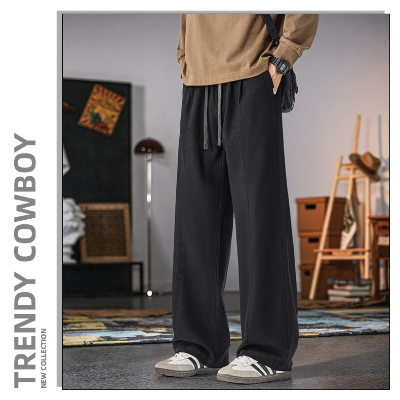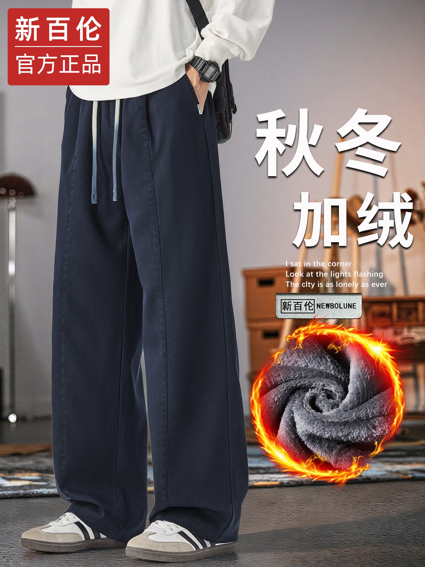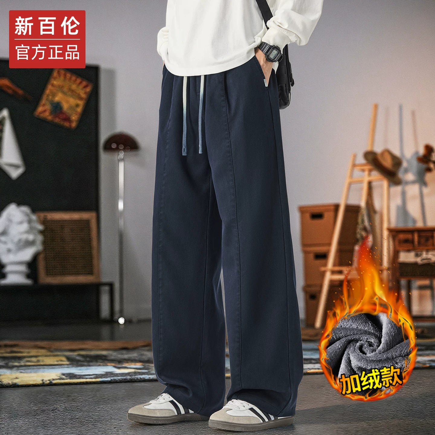 Kişilər üçün New Balance geniş ayaqlı gündəlik şalvar, 2025 payız/qış yeni model, dəbli boş düz ayaqlı, flis astarlı və qalın idman şalvarı.