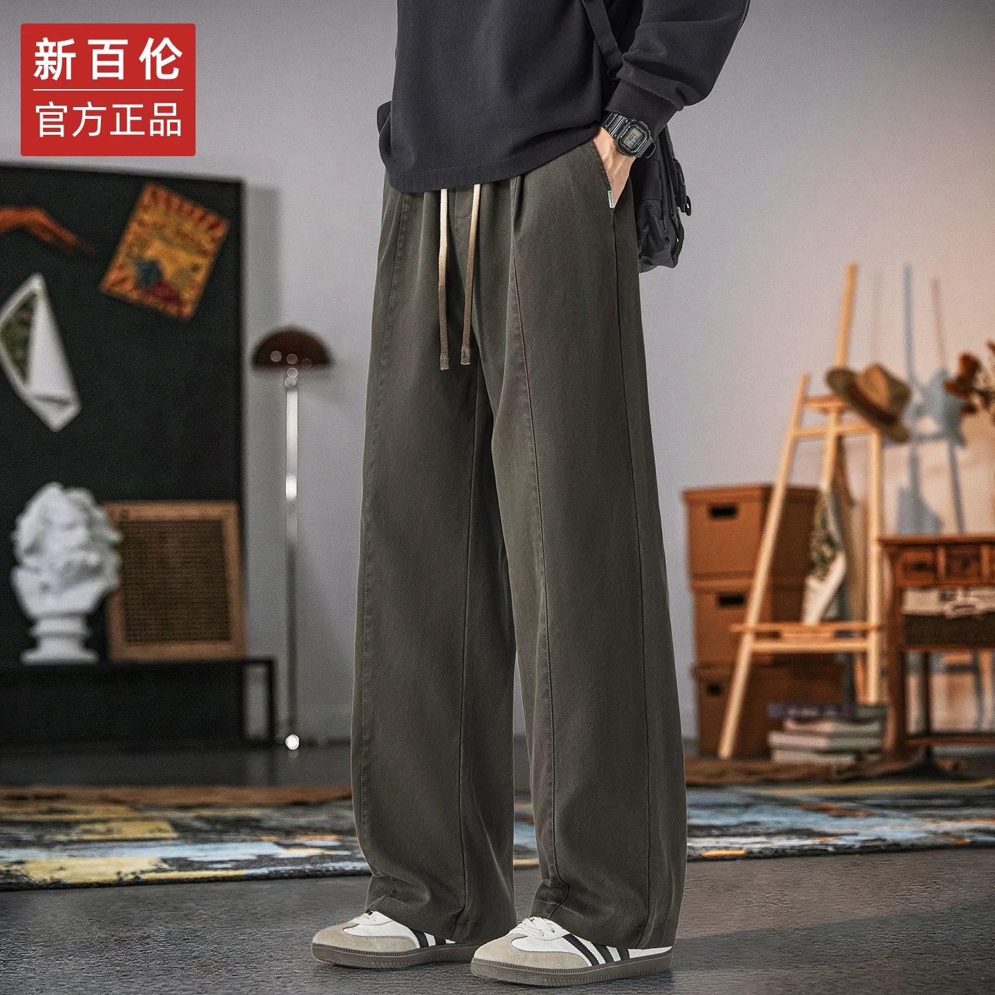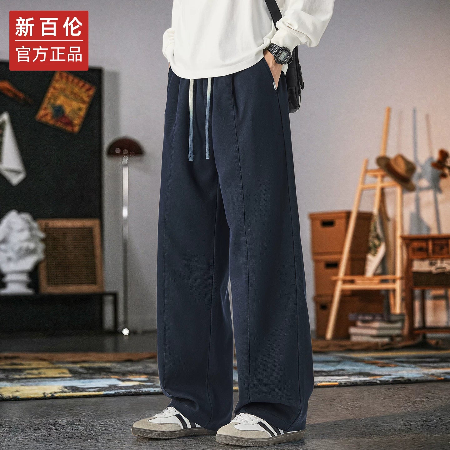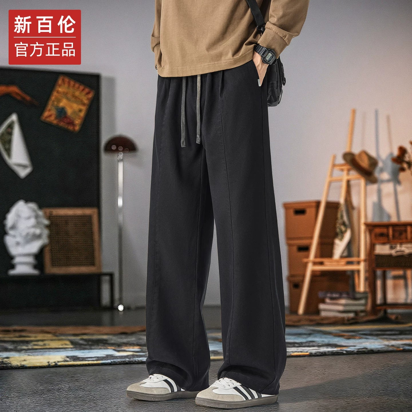 Kişilər üçün New Balance geniş ayaqlı gündəlik şalvar, 2025 payız/qış yeni model, dəbli boş düz ayaqlı, flis astarlı və qalın idman şalvarı.