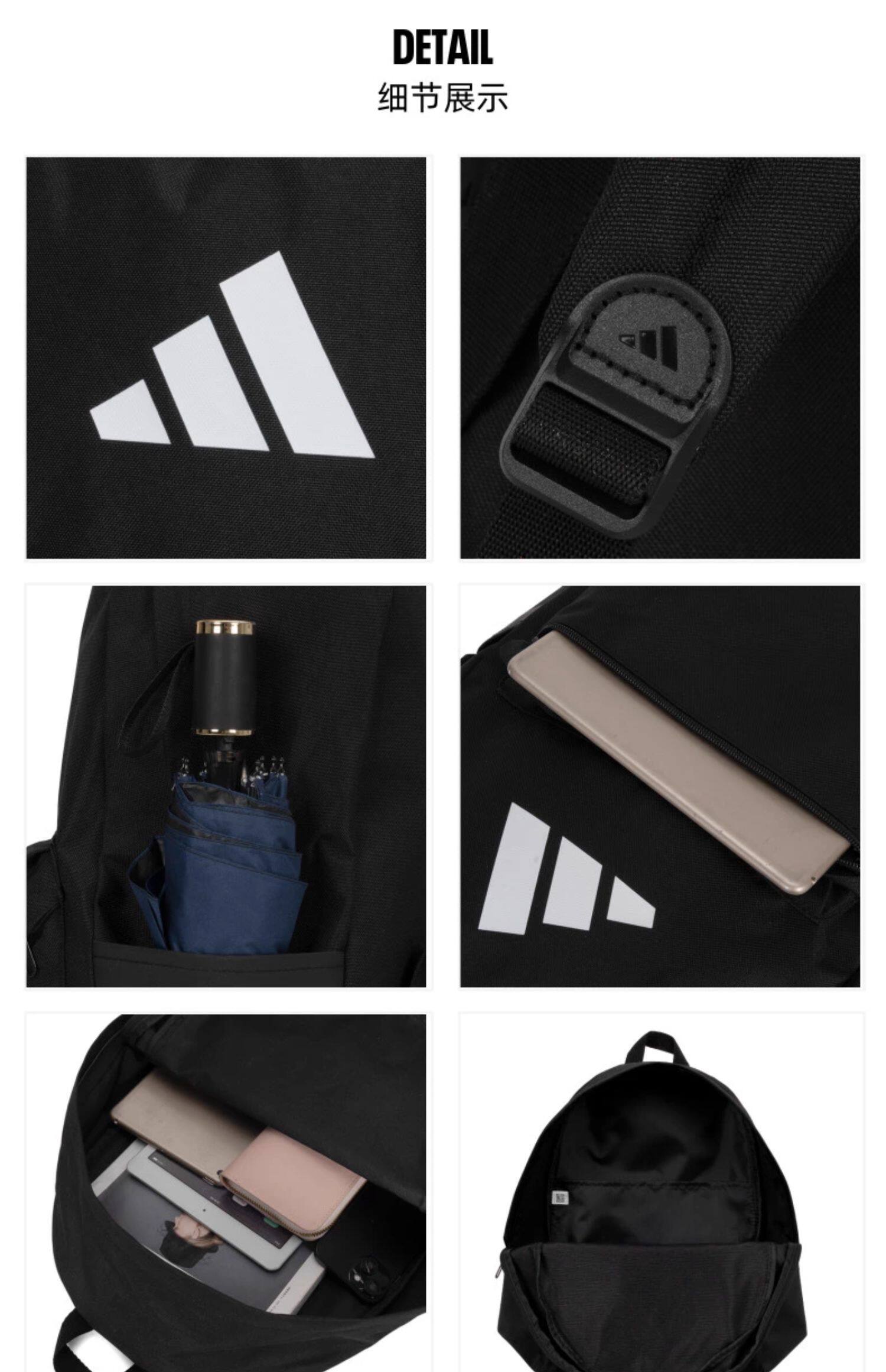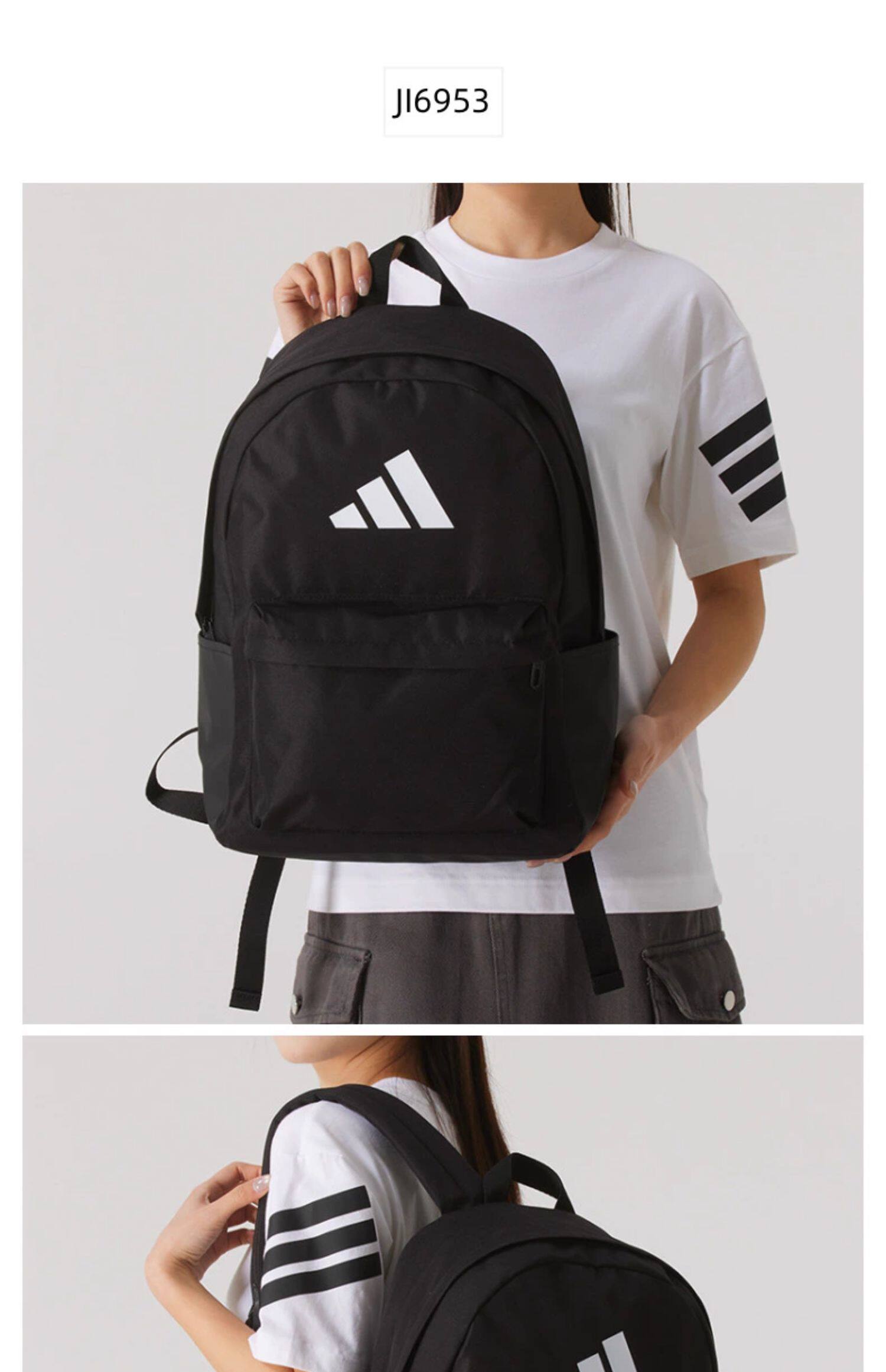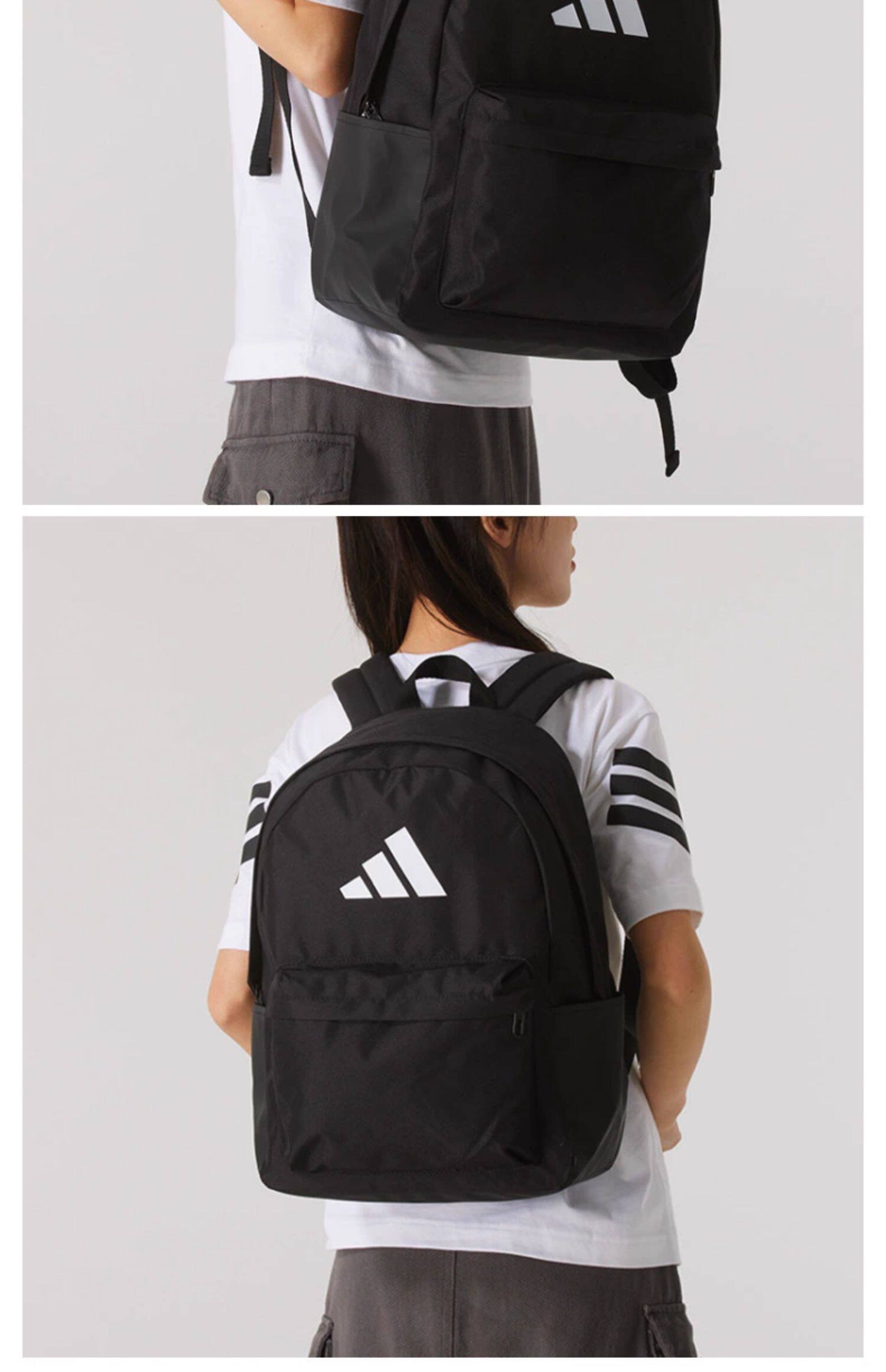 Black Adidas backpack for men and women, new model for the back-to-school season, large capacity, practical sports bag.