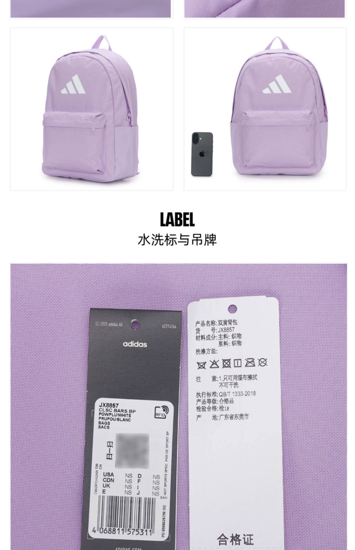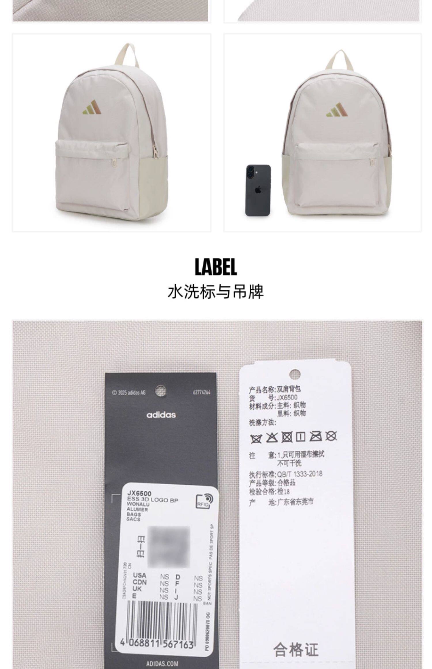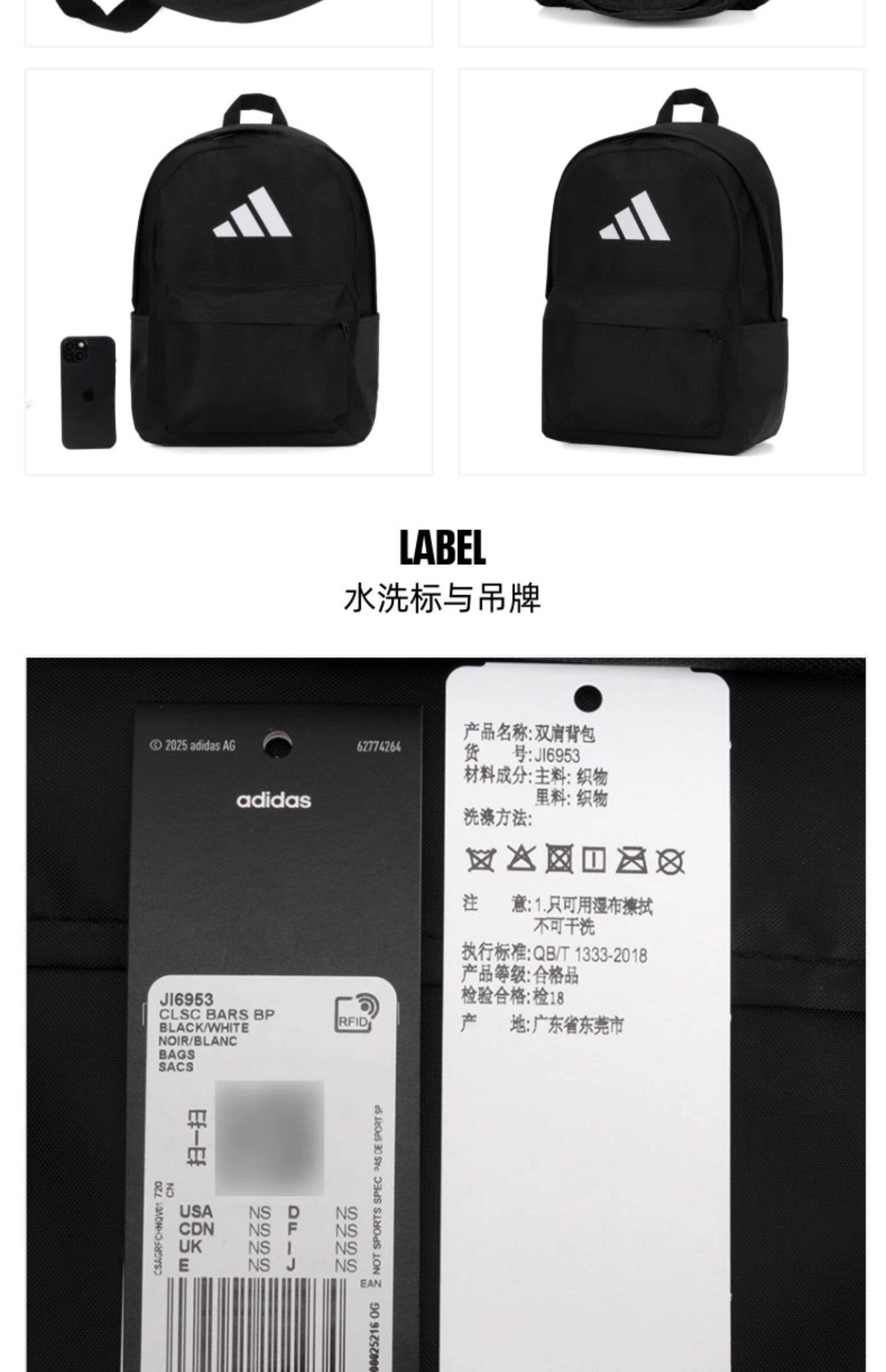 Black Adidas backpack for men and women, new model for the back-to-school season, large capacity, practical sports bag.