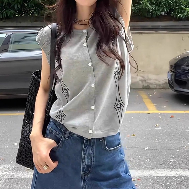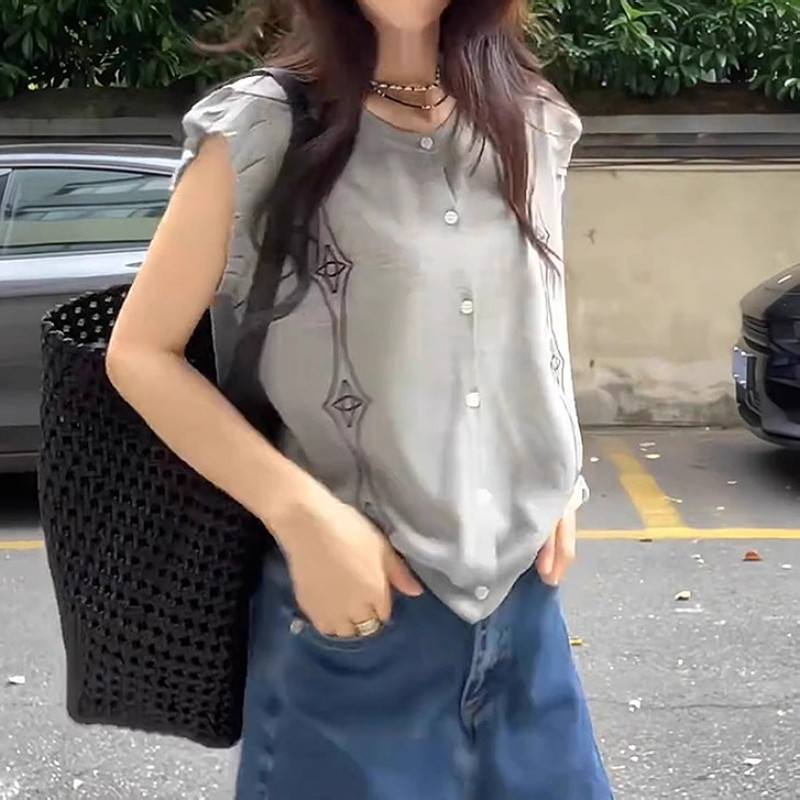 Koreya üslubunda dəbli romb naxışlı qısaqol köynək, yay boyu böyük ölçüdə, arıqladıcı və gözəl görünən, dolğun qızlar üçün şık və çoxfunksiyalı futbolka.
