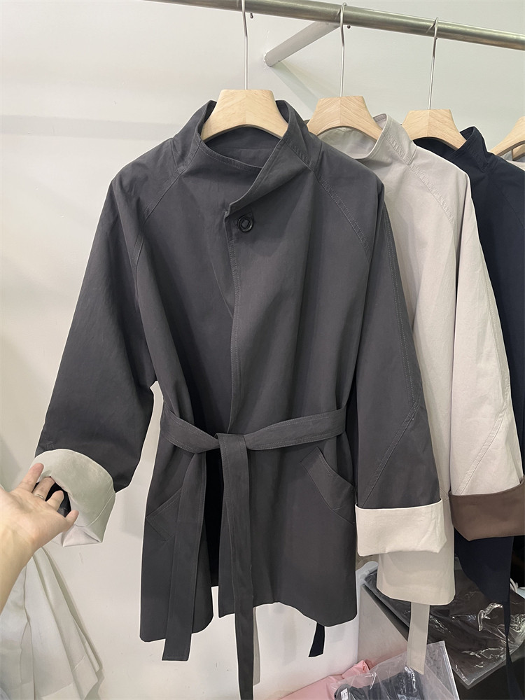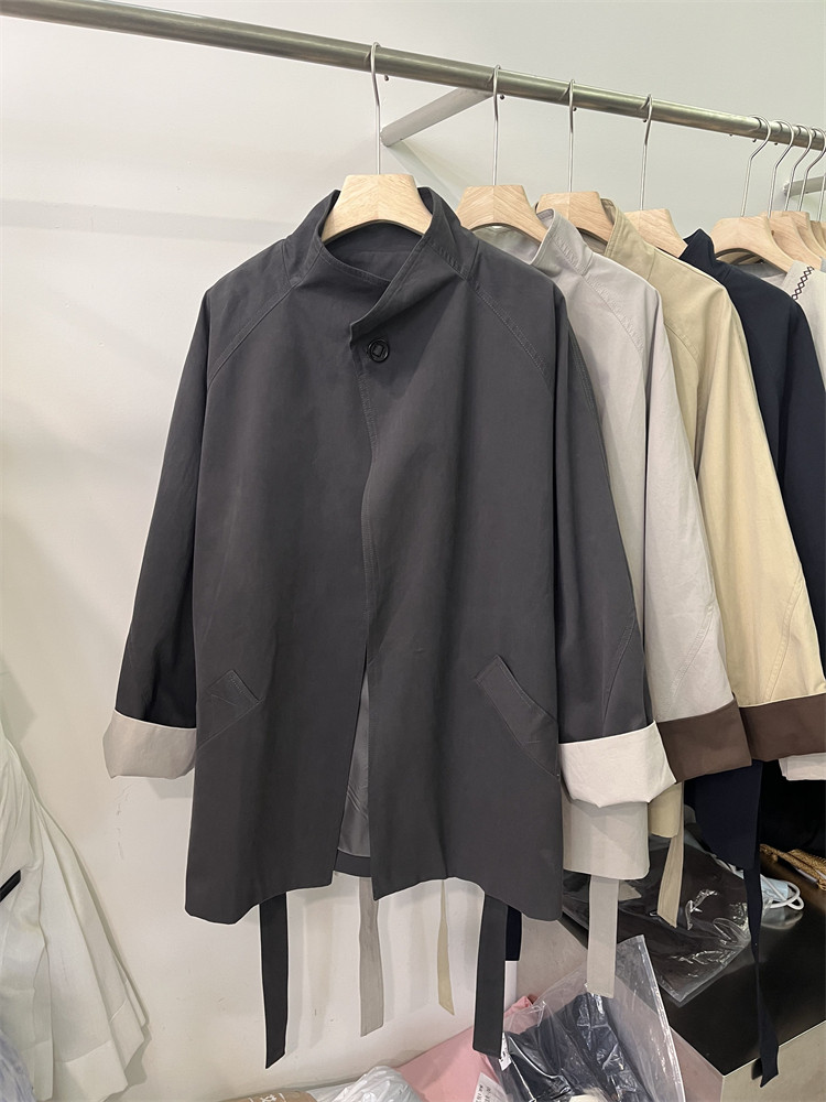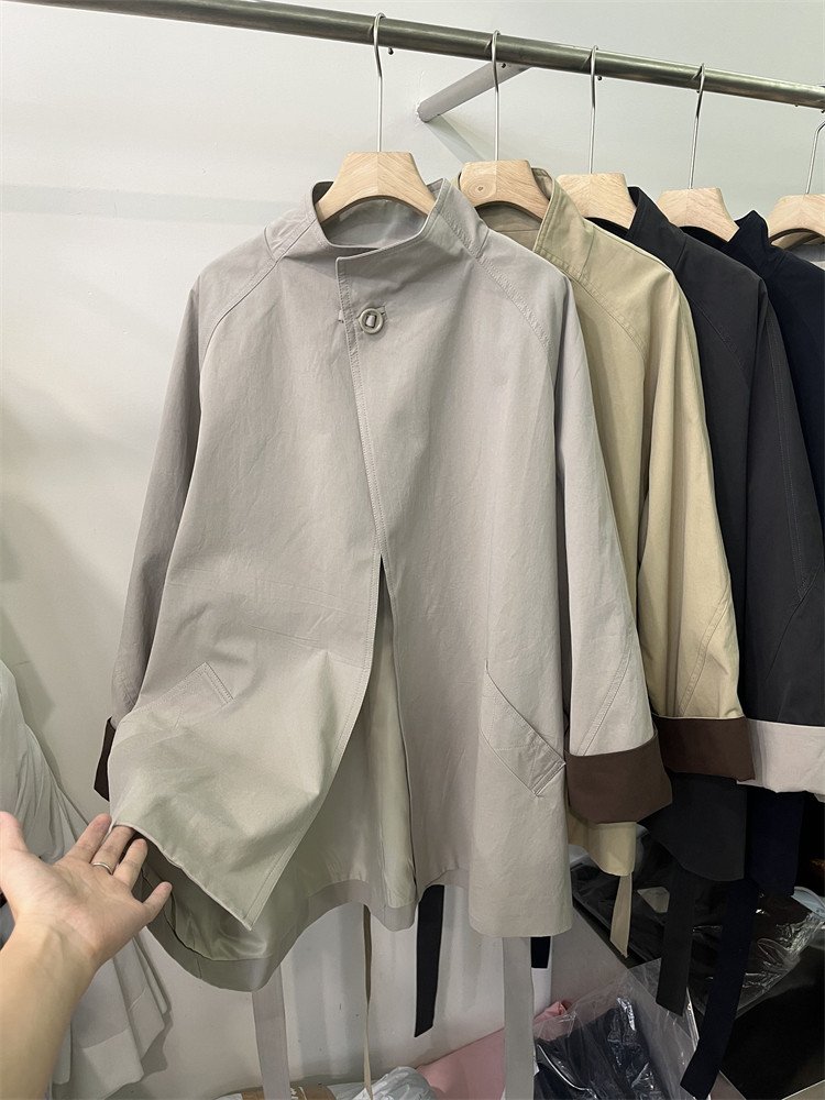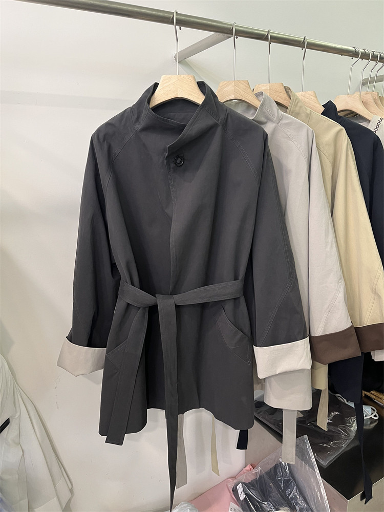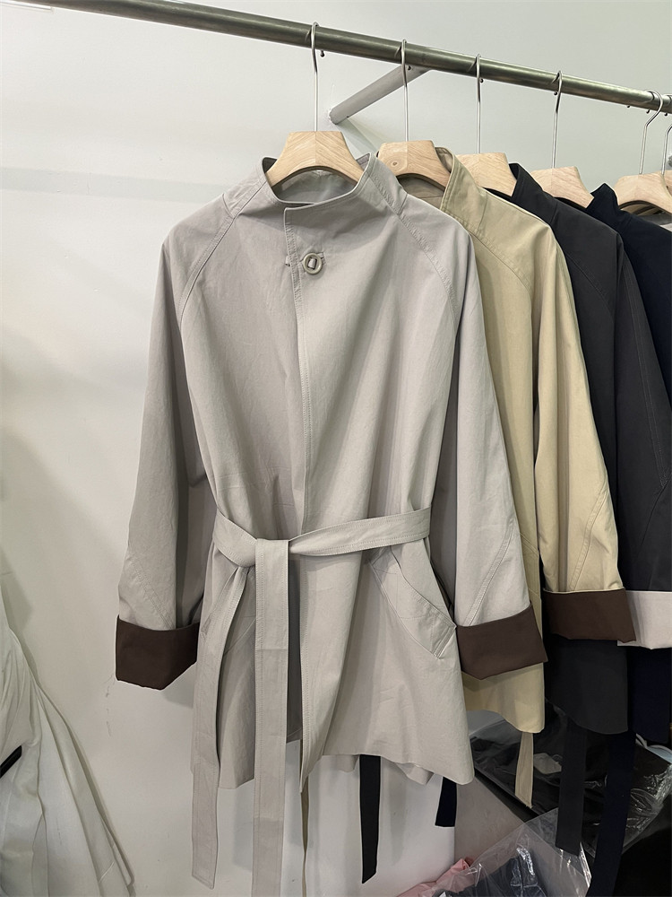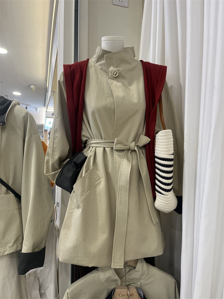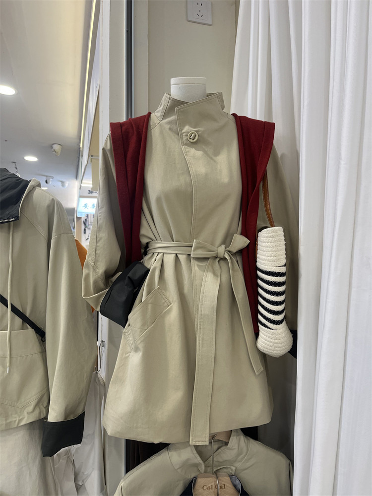 Koreya üslubunda, qadın üçün boş, kəmərli, orta uzunluqlu trençkot, yeni 2025 payız modası, kiçik ölçülü, xaki rəngli palto.