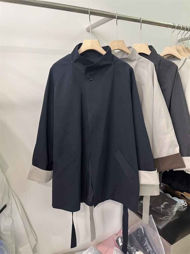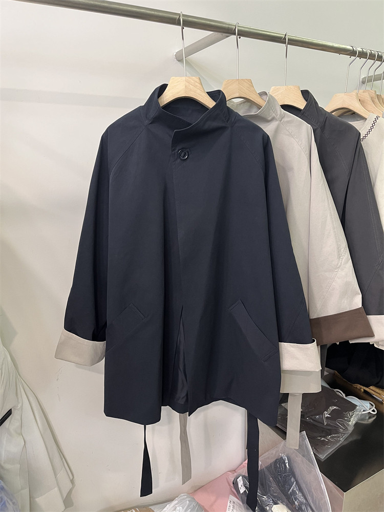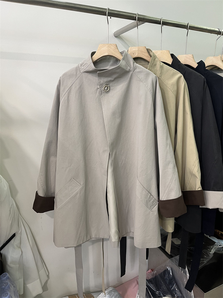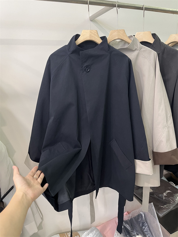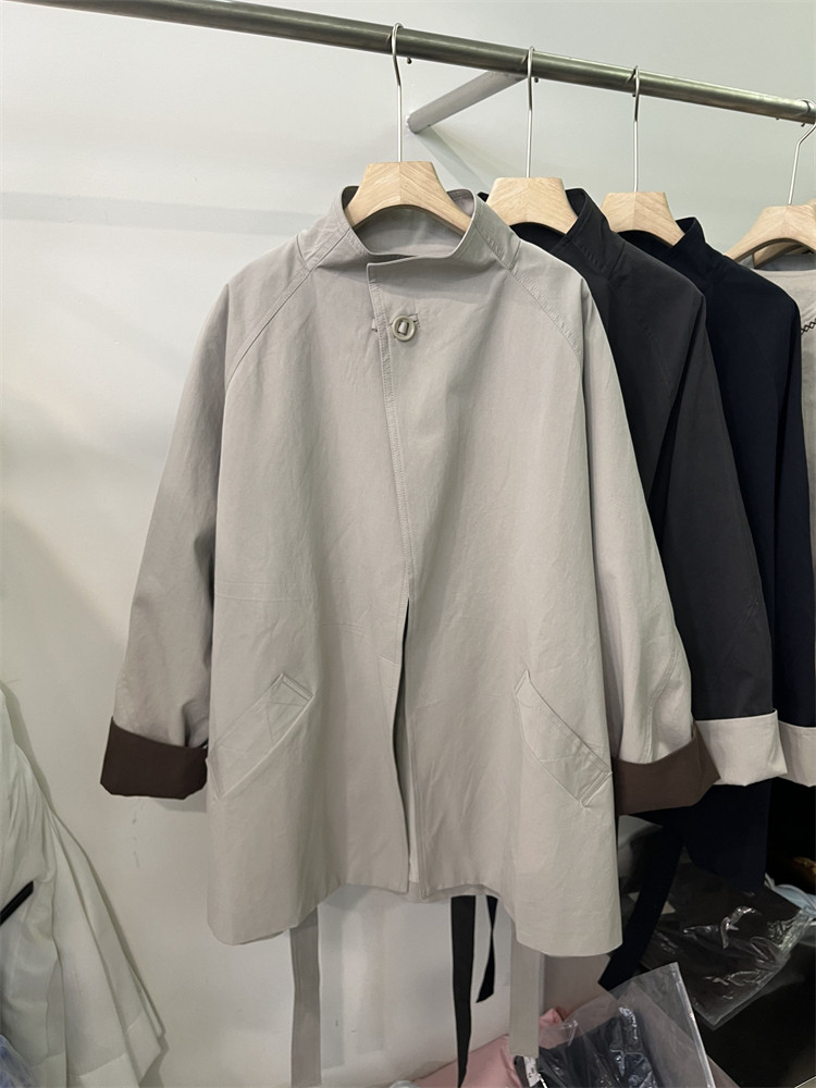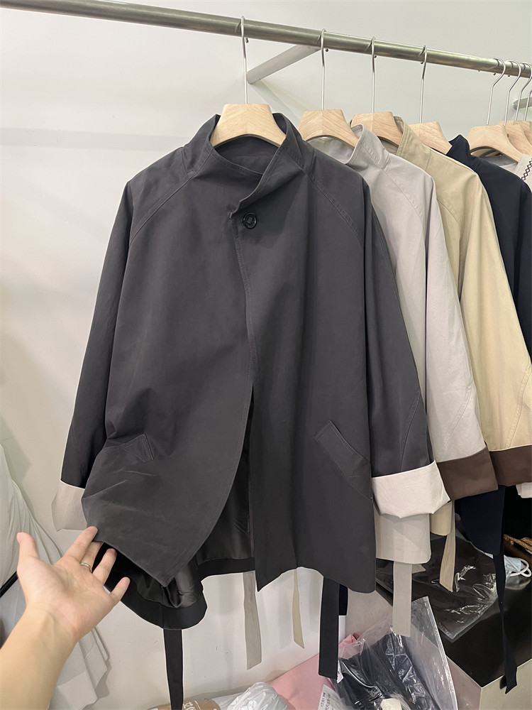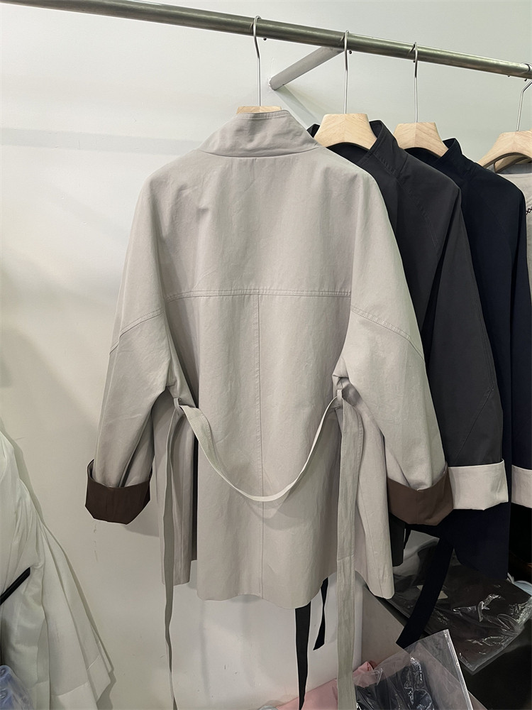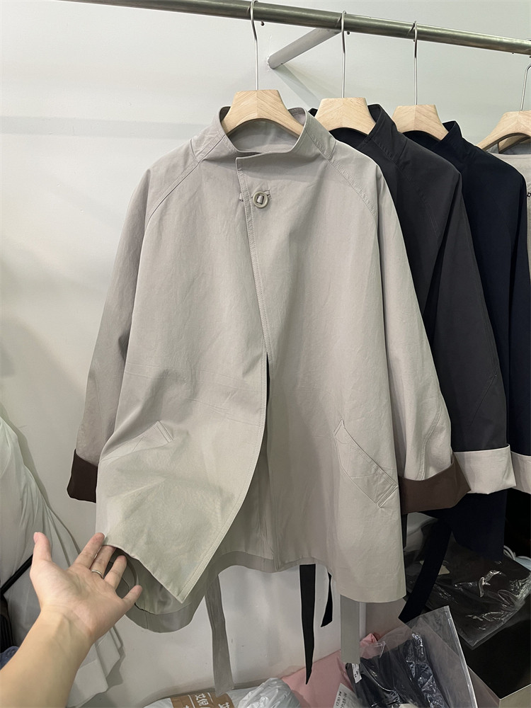 Koreya üslubunda, qadın üçün boş, kəmərli, orta uzunluqlu trençkot, yeni 2025 payız modası, kiçik ölçülü, xaki rəngli palto.