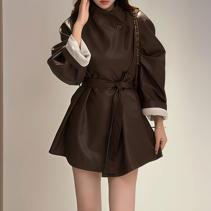 Koreya üslubunda qadınlar üçün böyük ölçülü dayaqlı, kəmərli bel dəri palto, yeni payız və qış üslubunda, böyük ölçülü qadınlar üçün orta uzunluqlu, arıqladıcı və çox yönlü trençkot.