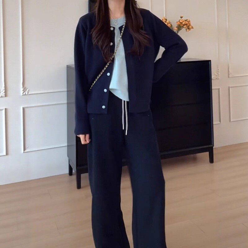 Korean style color-blocked faux two-piece knit women's cardigan, new fall style, oversized, button-up, slimming, loose sweater top.