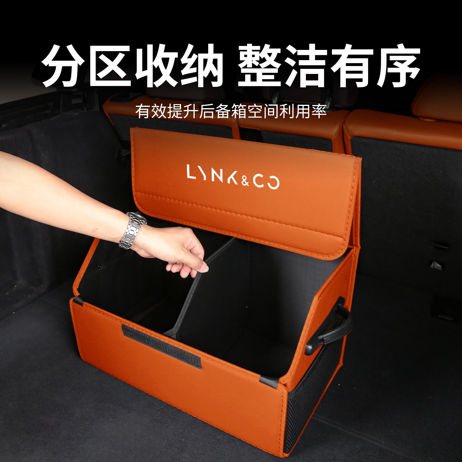 Lynk & Co 900/03/06/Z20/08/07 avtomobilləri ilə uyğun olan bu premium görünüşlü qatlanan baqaj saxlama qutusu avtomobilin baqaj hissəsi üçün nəzərdə tutulub.