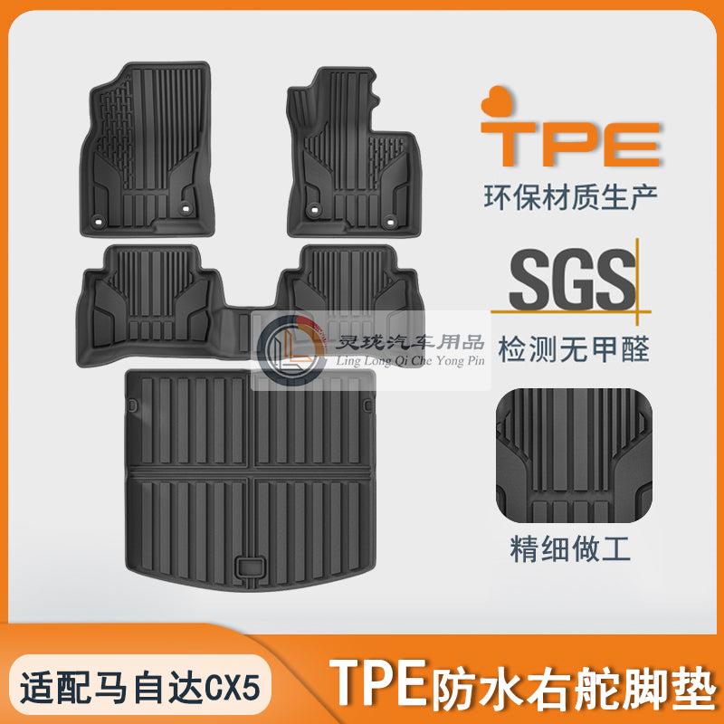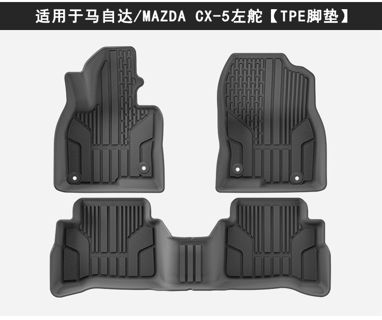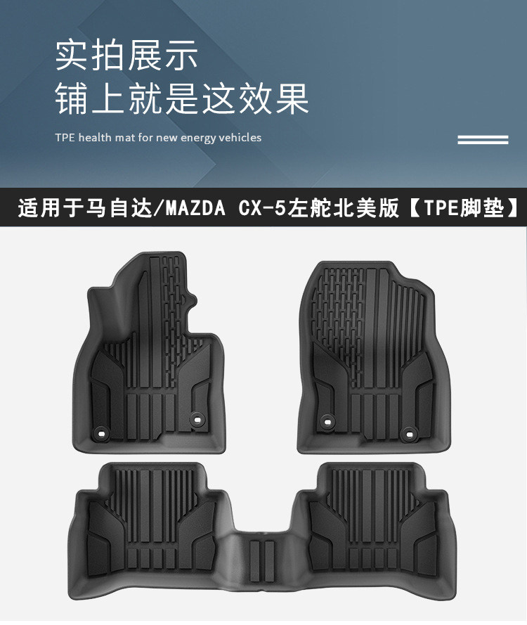 Mazda CX5 sağ ötürücülü avtomobillərin döşəmələri, TPE oturacaq arxalığı ayaqaltıları, baqaj ayaqaltıları və suya davamlı rezin xalçalar üçün uyğundur.