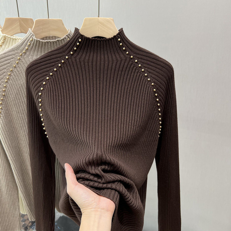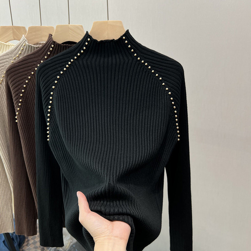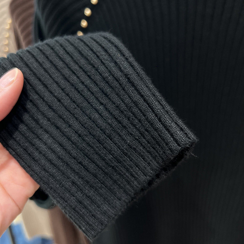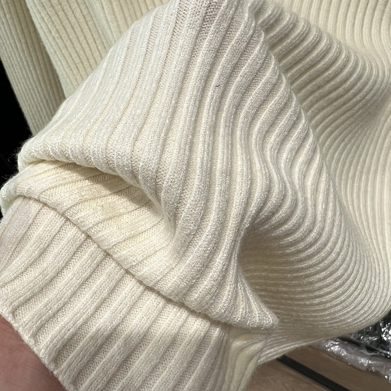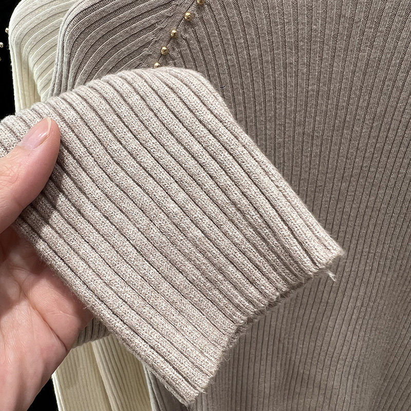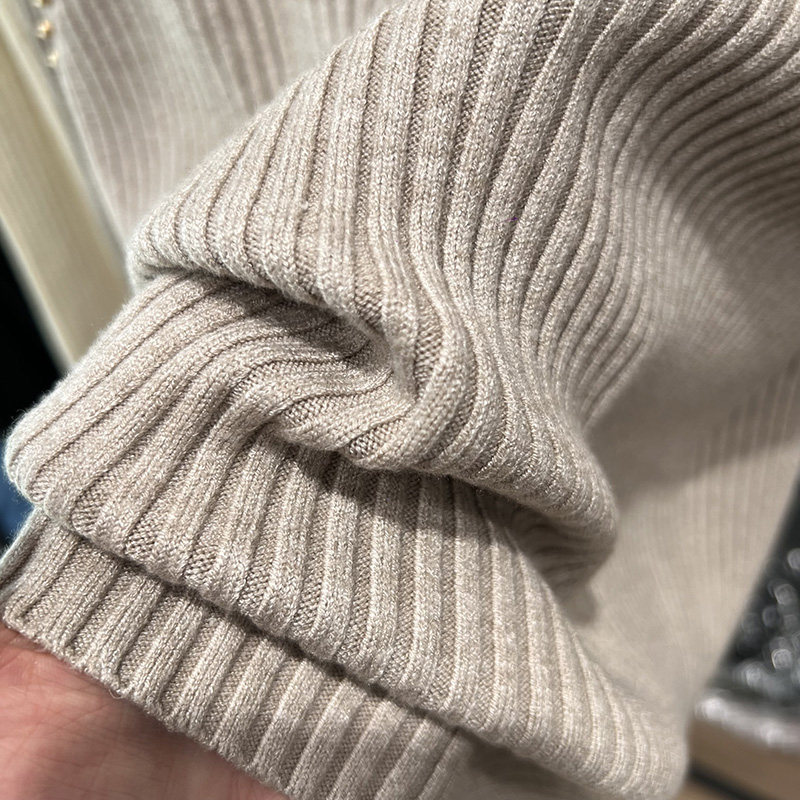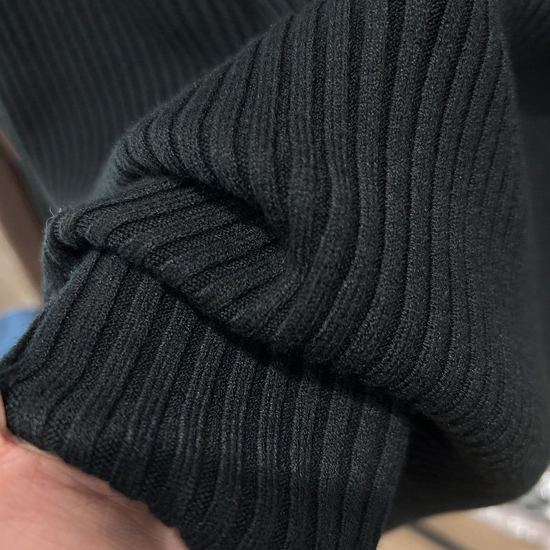 A must-have! This stylish, high-neck, long-sleeved knit shirt is a new, stylish design with a ribbed texture and is perfect for layering.