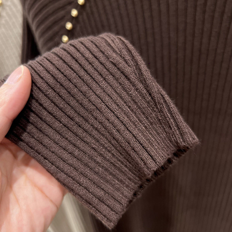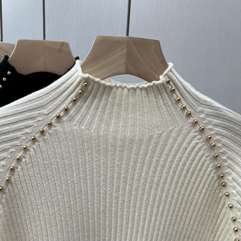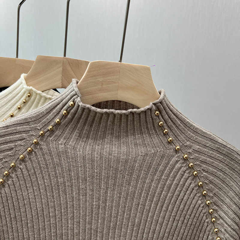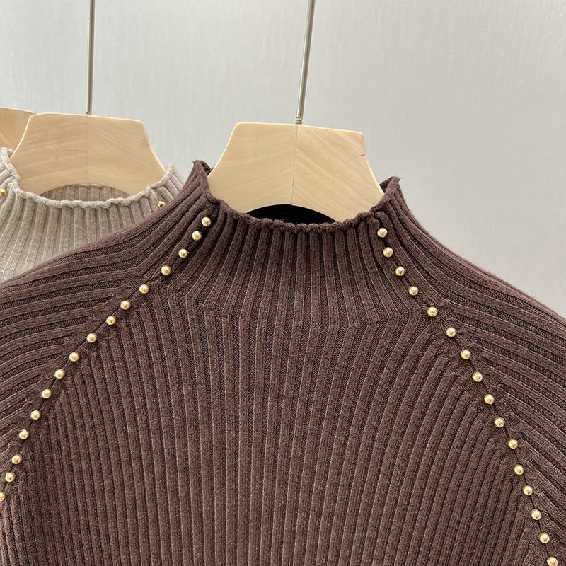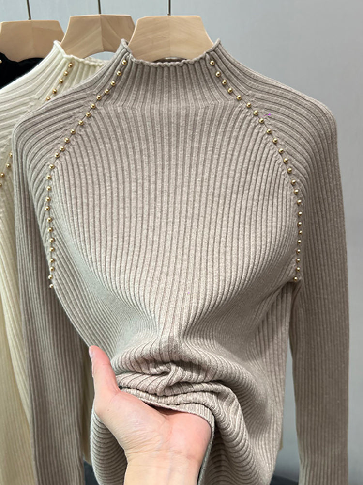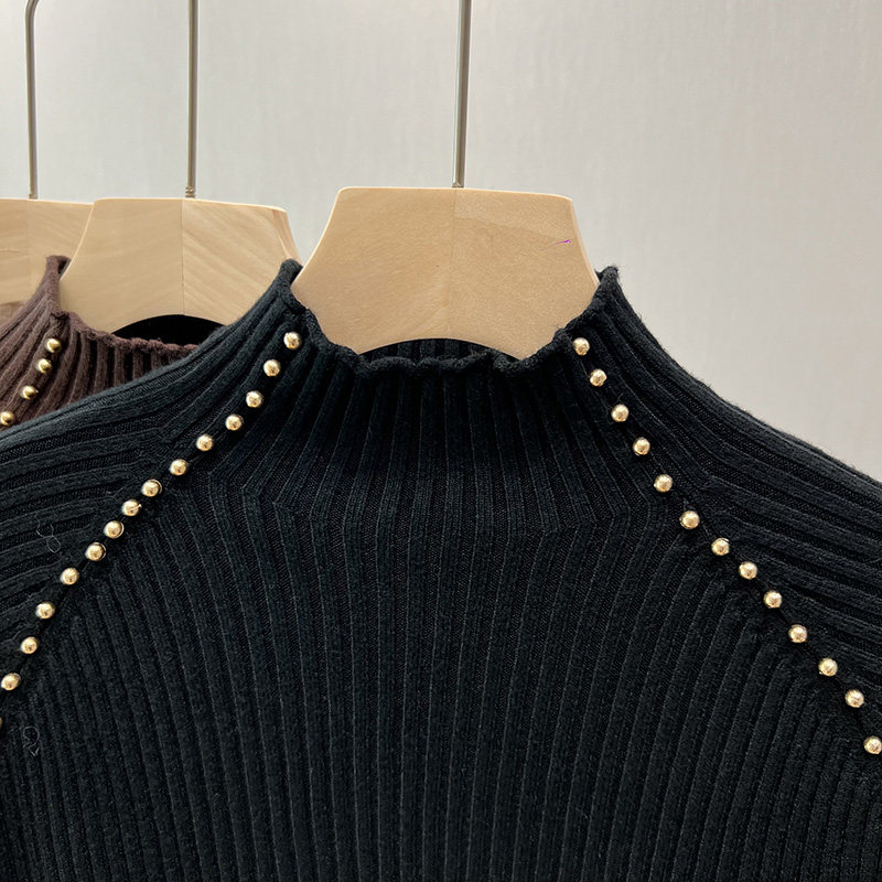 A must-have! This stylish, high-neck, long-sleeved knit shirt is a new, stylish design with a ribbed texture and is perfect for layering.