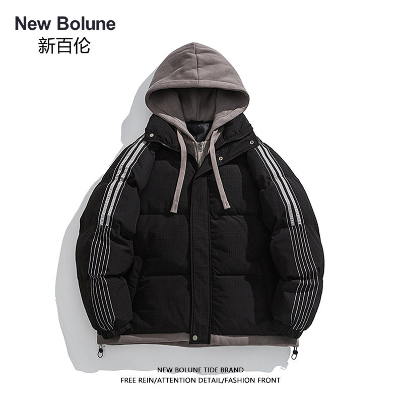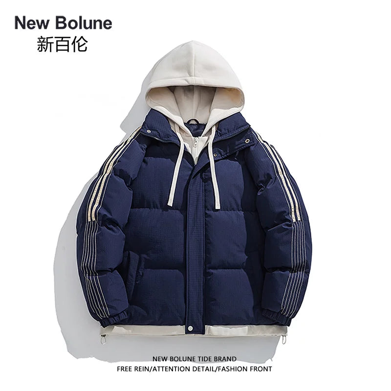 NEW BOLUNE/New Balance Qış Başlıqlı Pambıq Yastıqlı Gödəkçə, Kişilər üçün Yüksək Keyfiyyətli Amerika Retro Qalın Pambıq Yastıqlı Gödəkçə